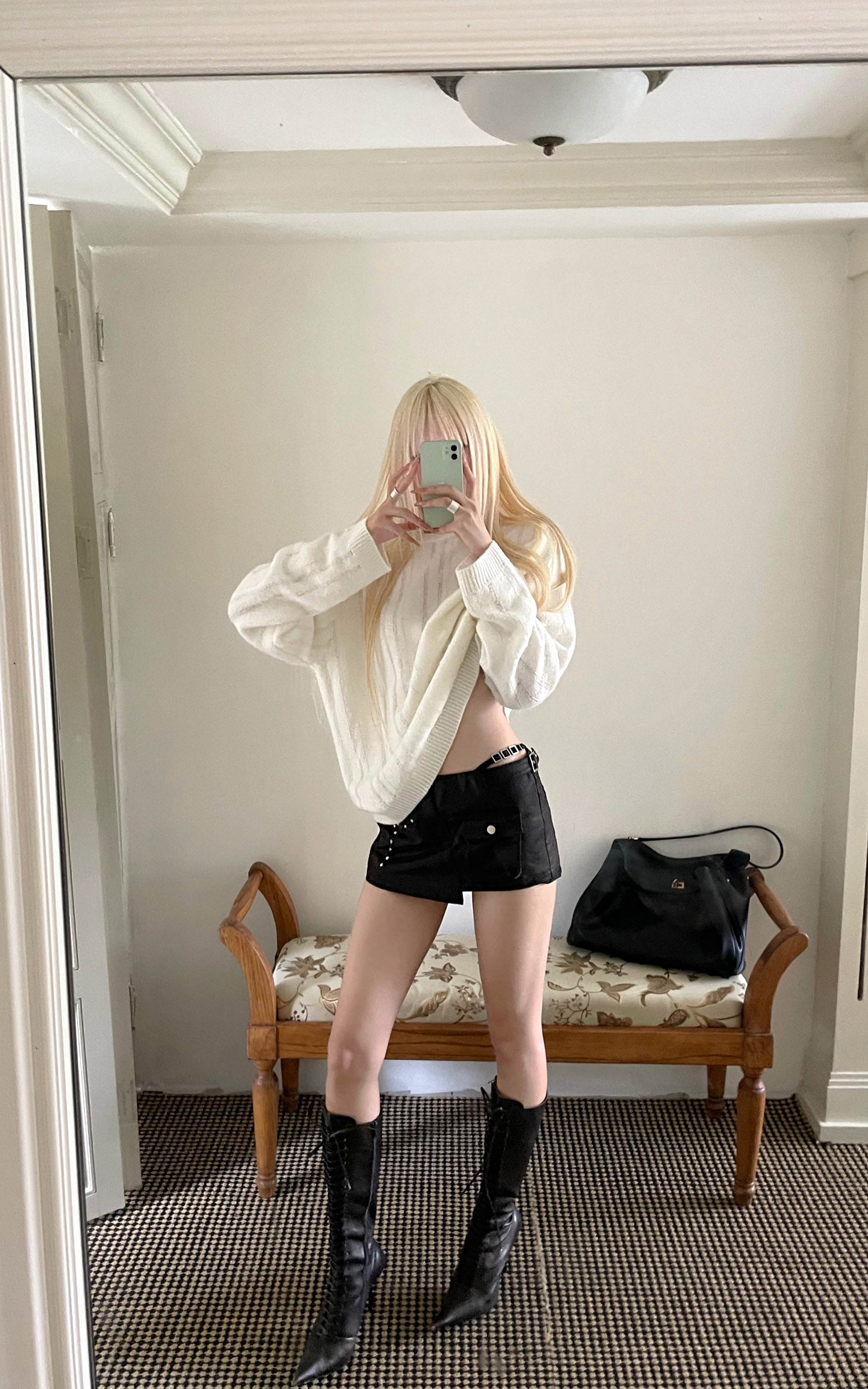 Rase le sol Off-Shoulder Knit Cropped Sweater