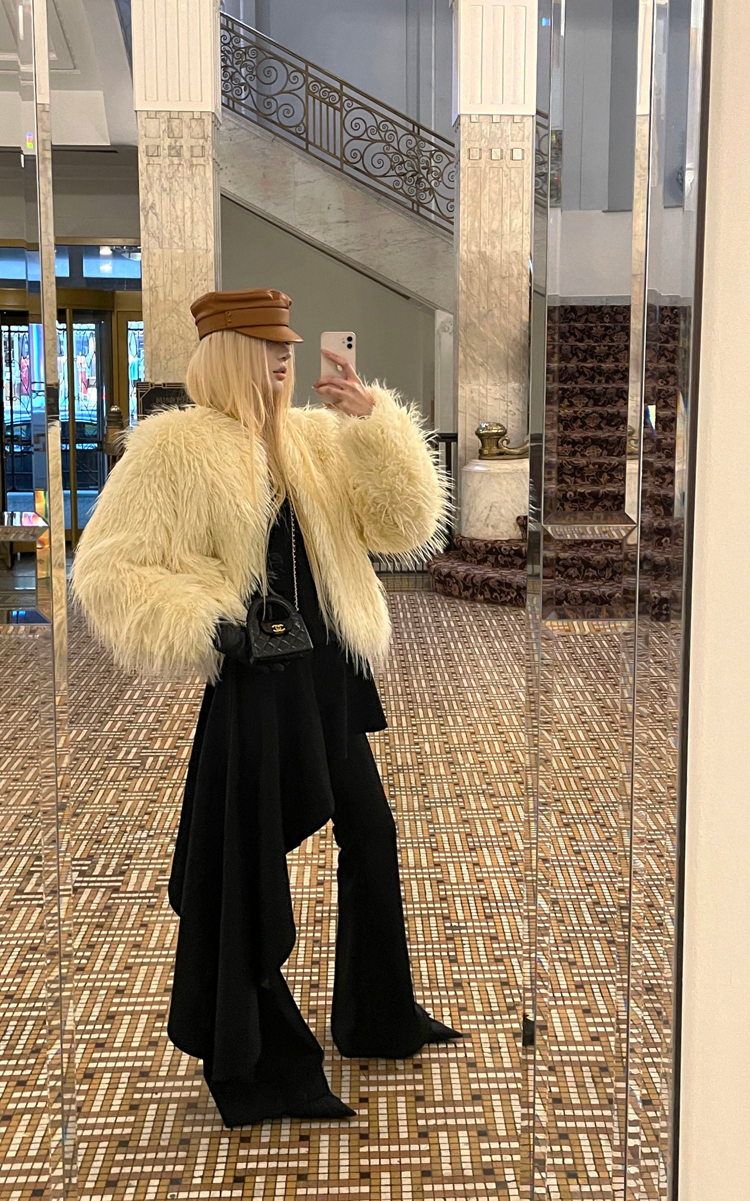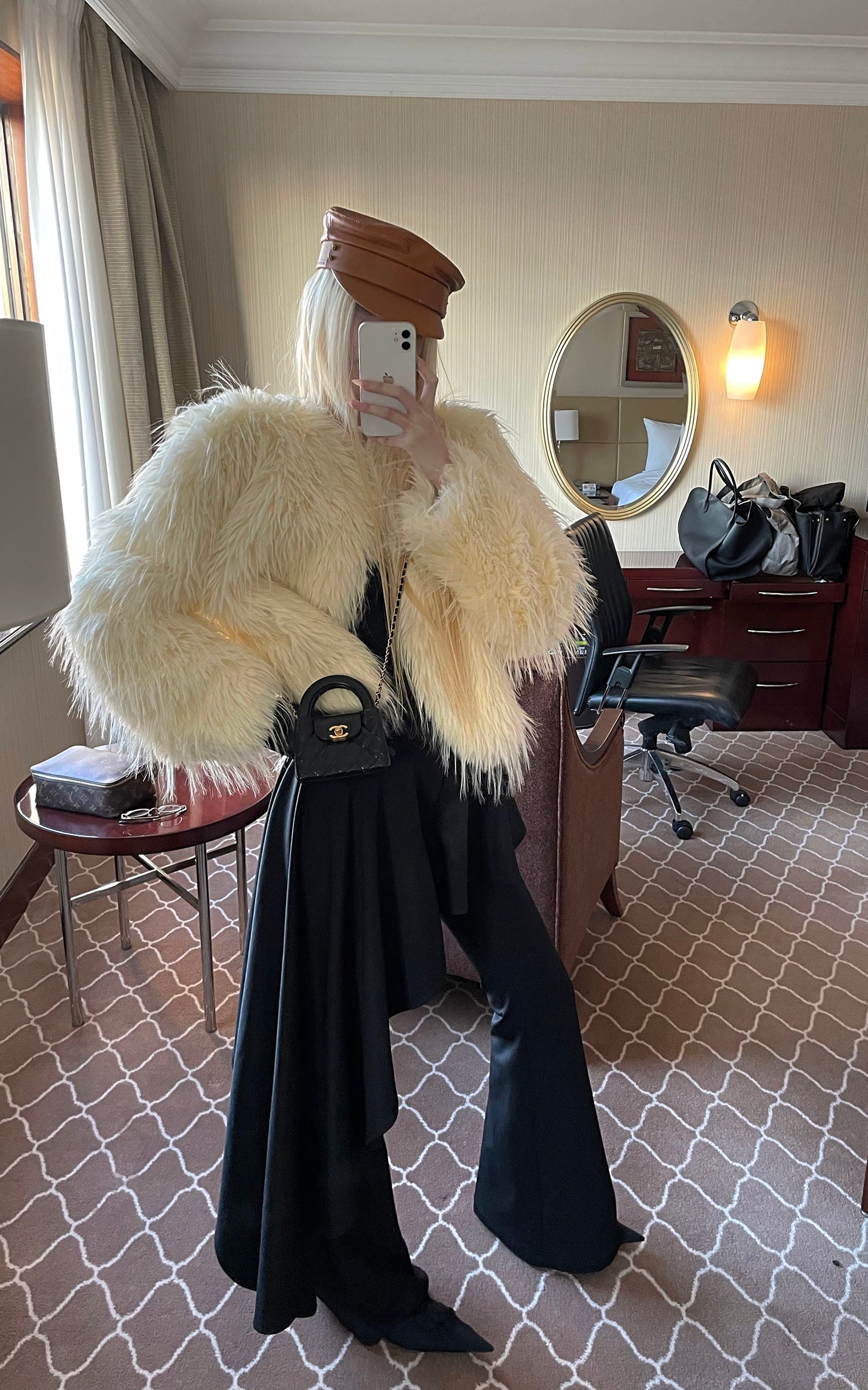 Rase le sol Faux Fur Relaxed Silhouette Mid-Length Coat