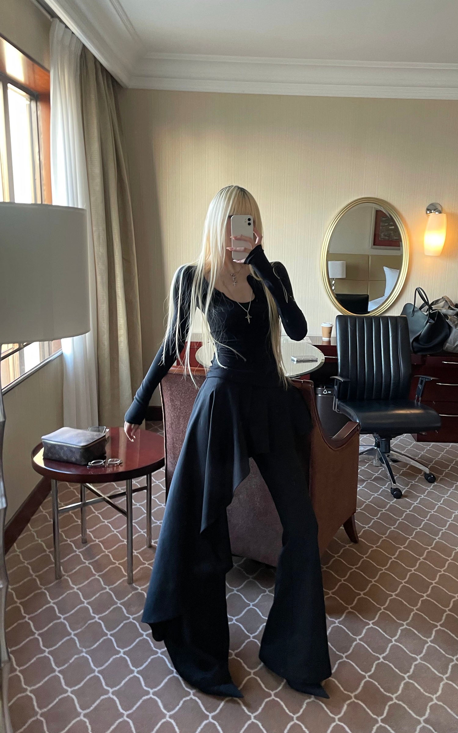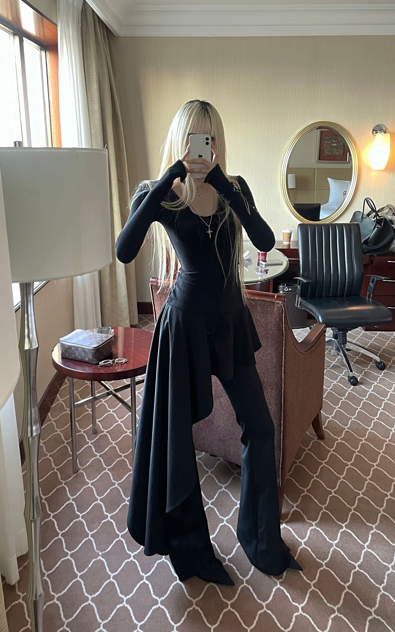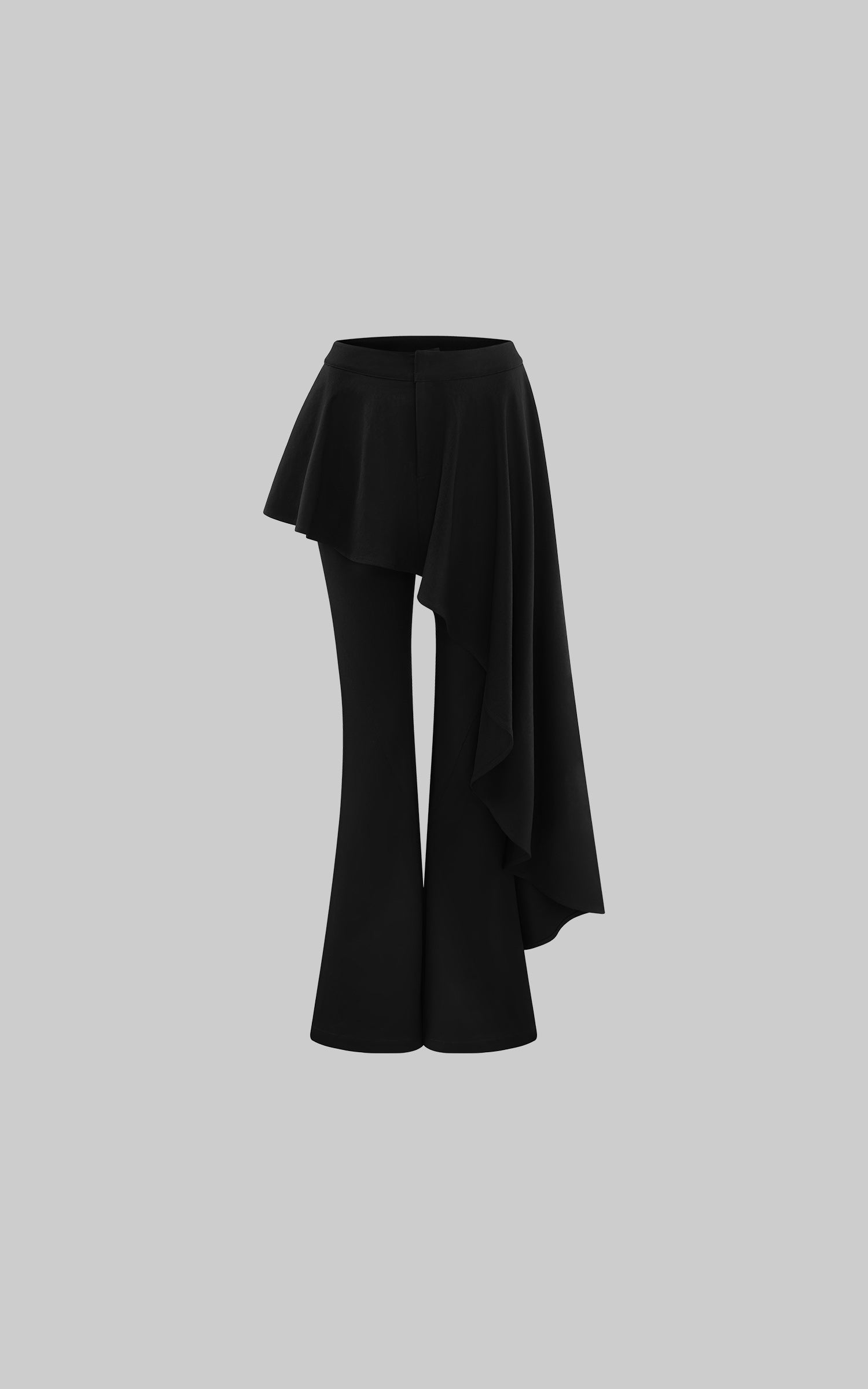 Rase le sol Asymmetric Skirted Pants with Flare Leg