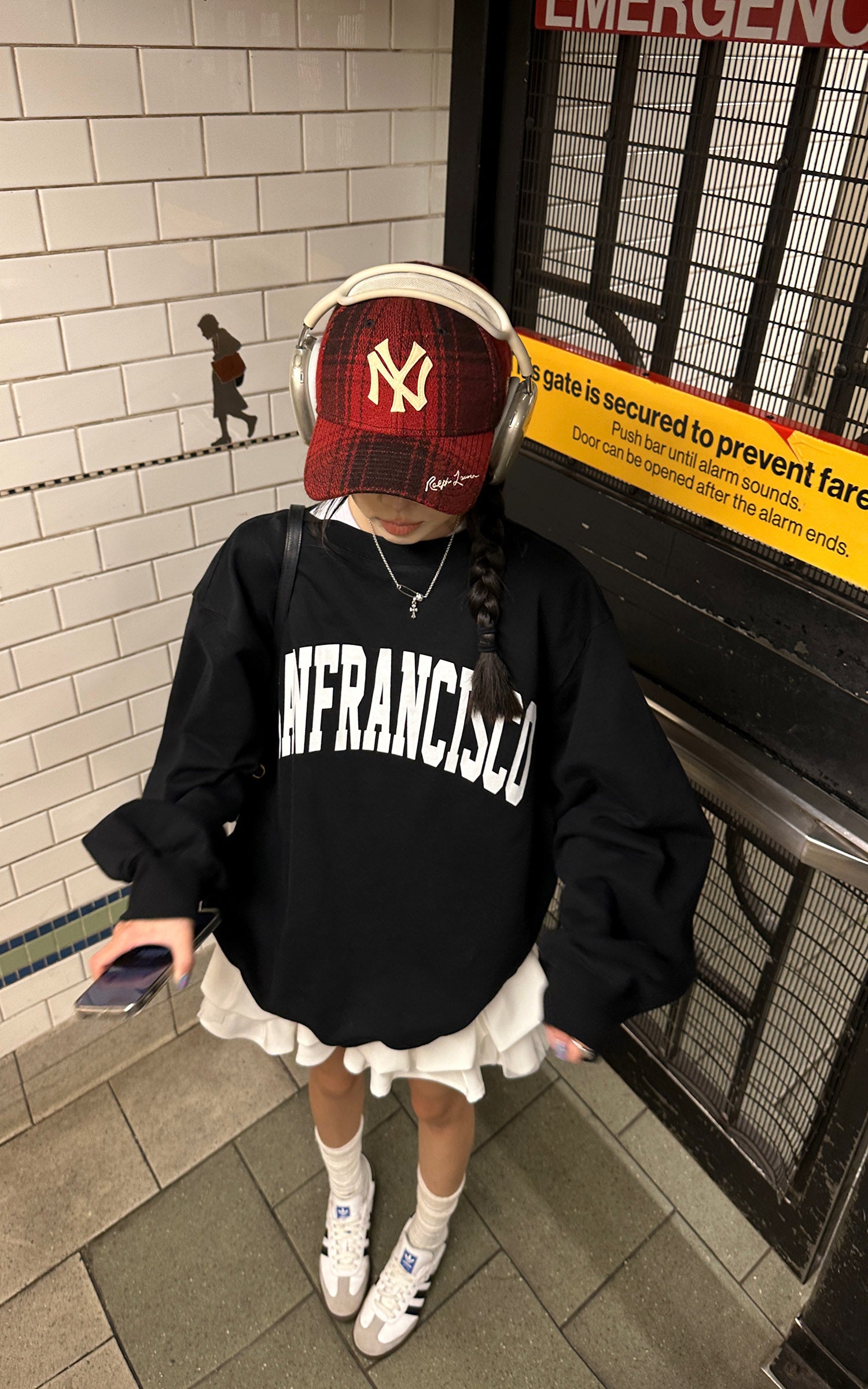 WARDEN EDGE Oversized Graphic Sweatshirt with Vintage Campbell Print and Strap Hem Detail