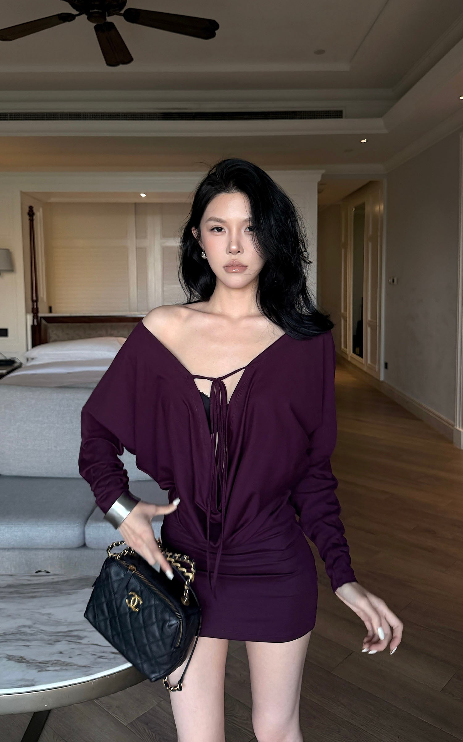 Hydrae Boléro drapé & Ensemble robe maxi moulante, tissu doux extensible, coupe ajustée, manches longues superposées, deux pièces