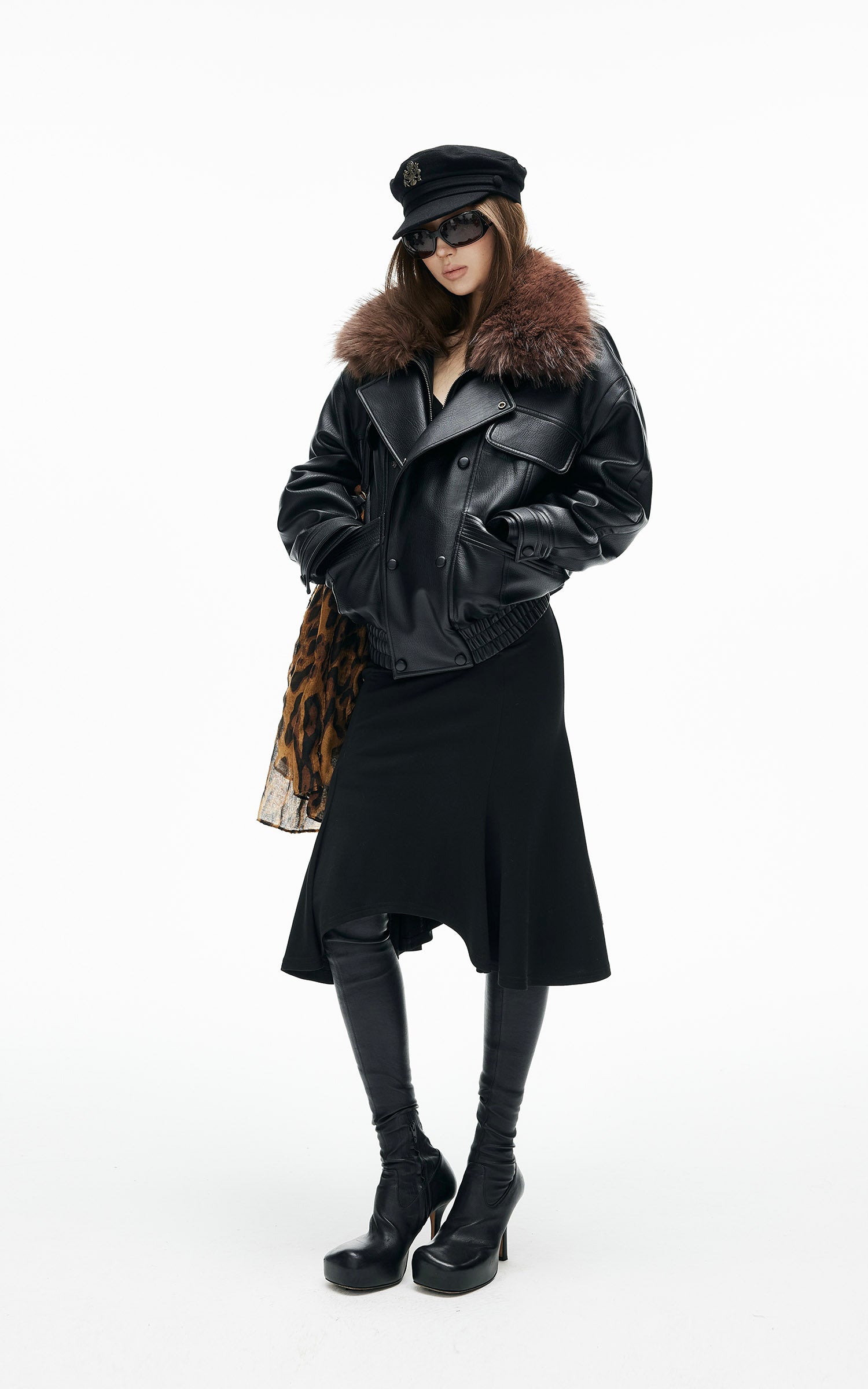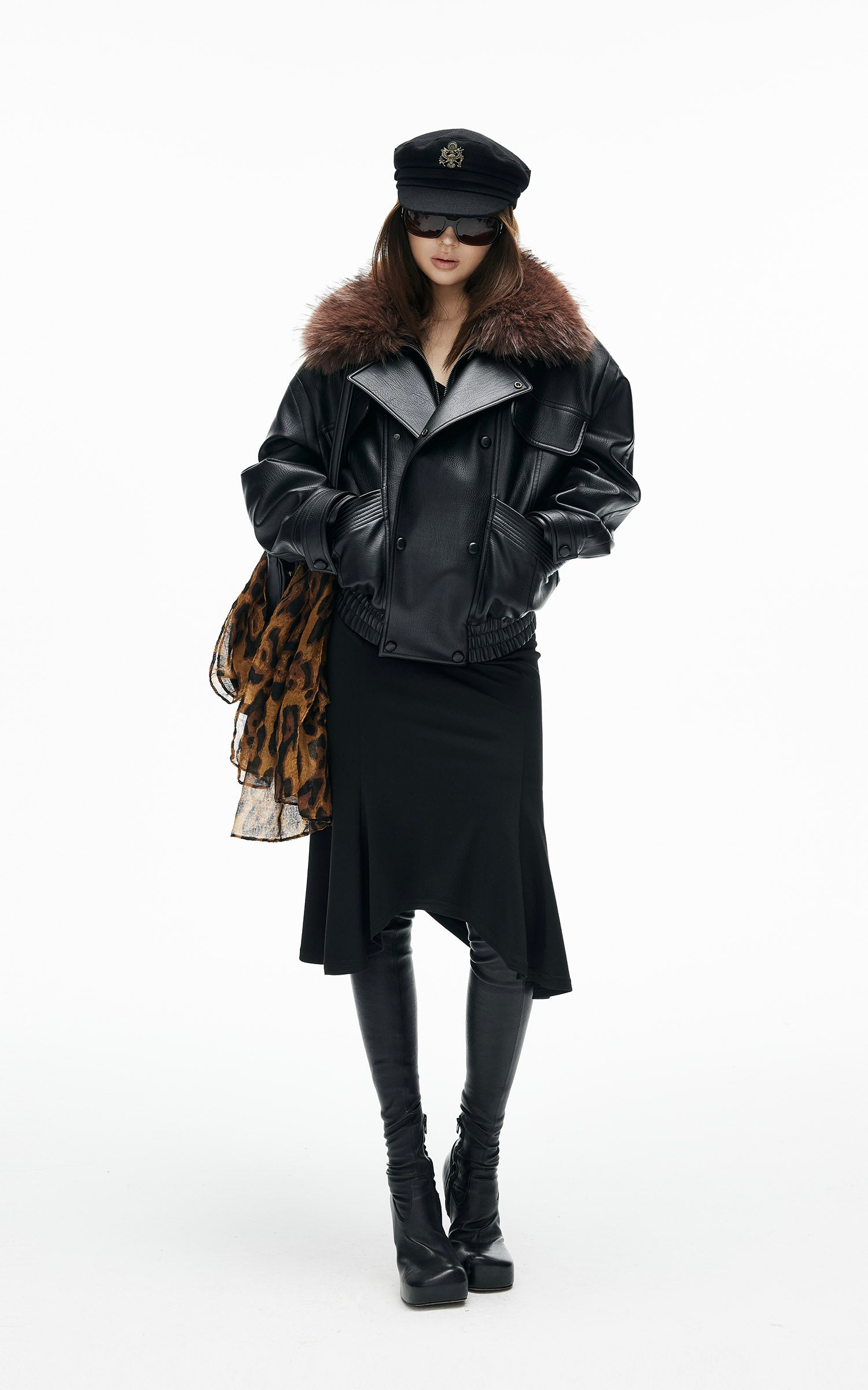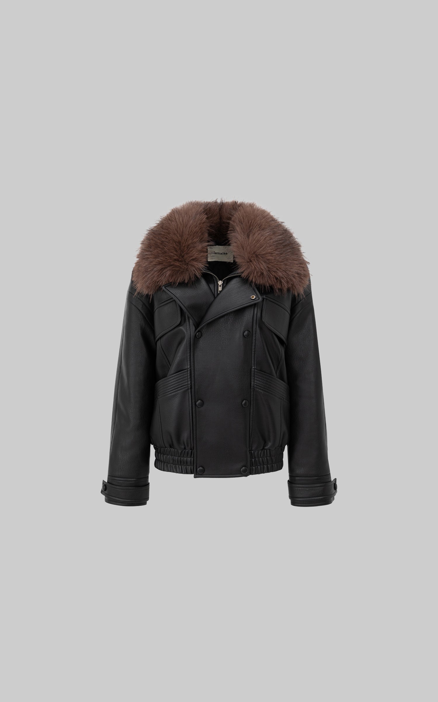 Veste en similicuir avec col en fausse fourrure contrastante