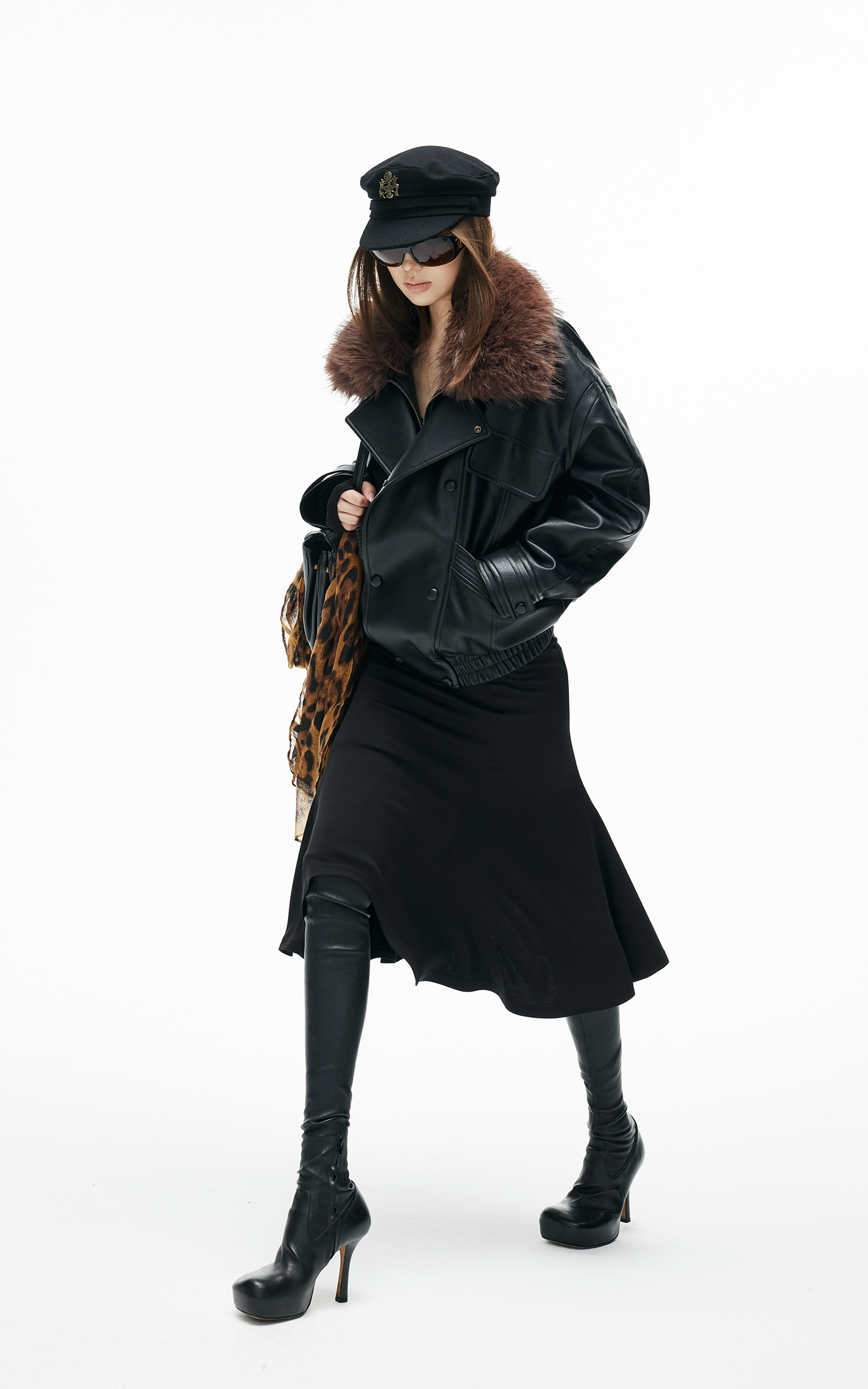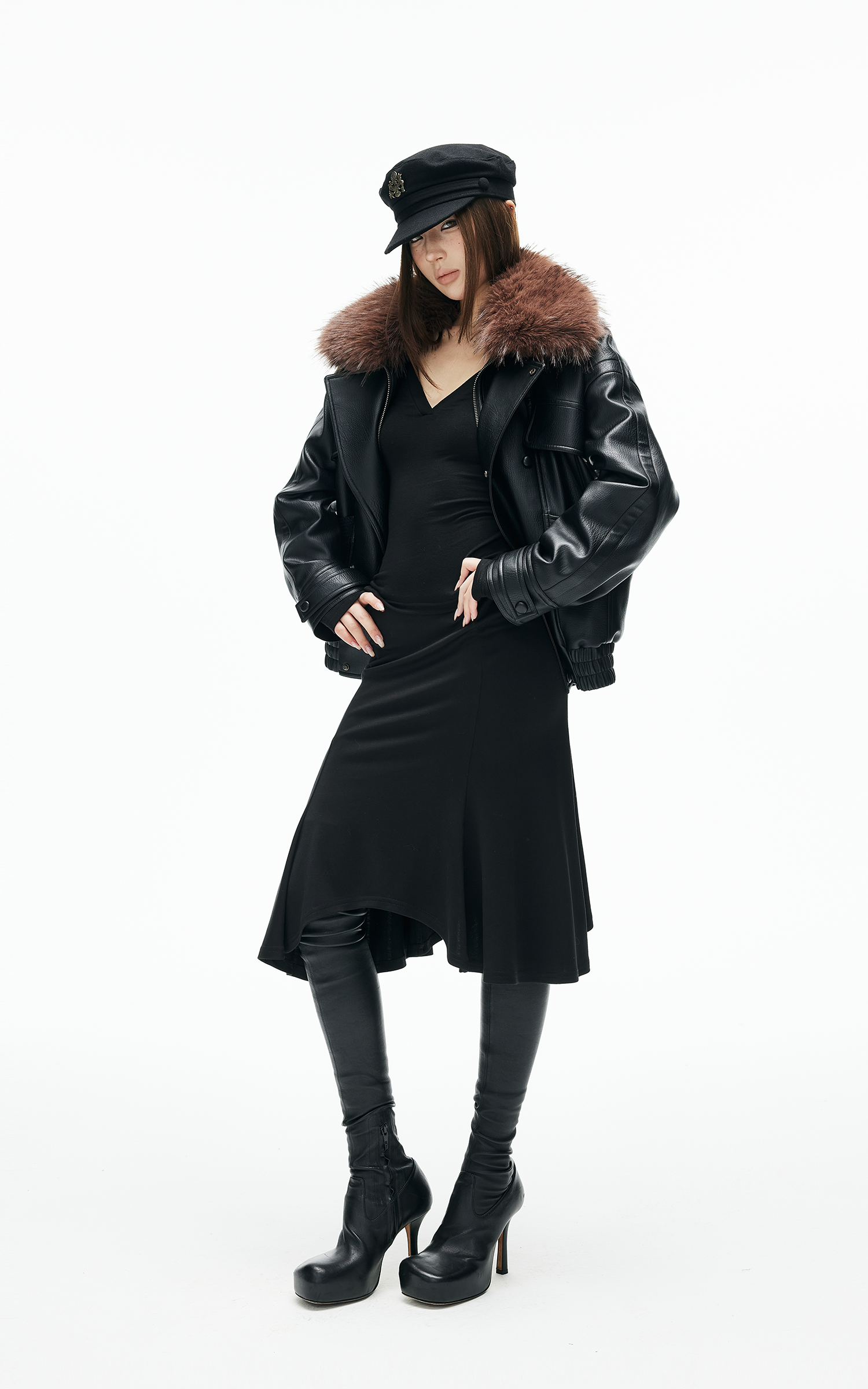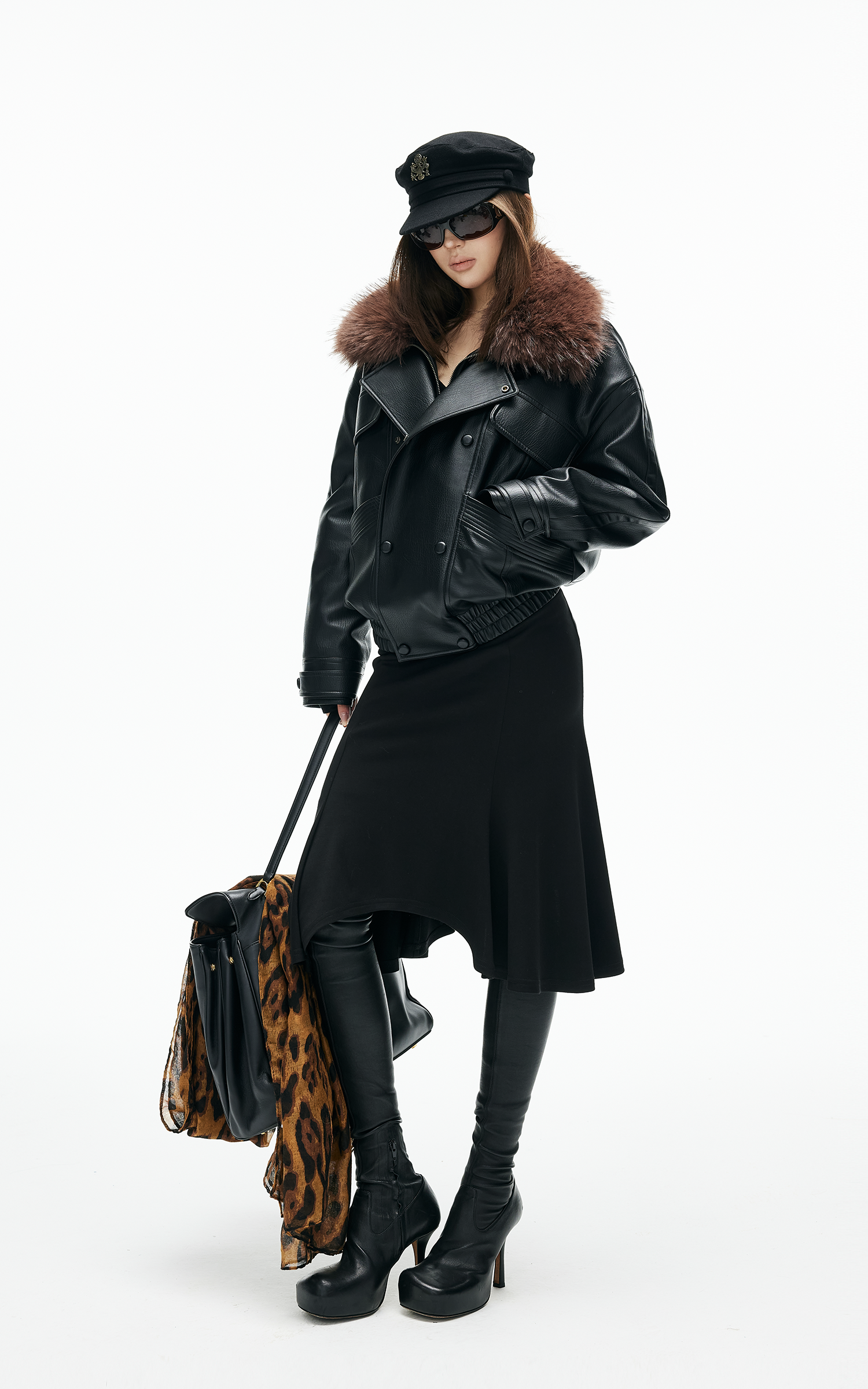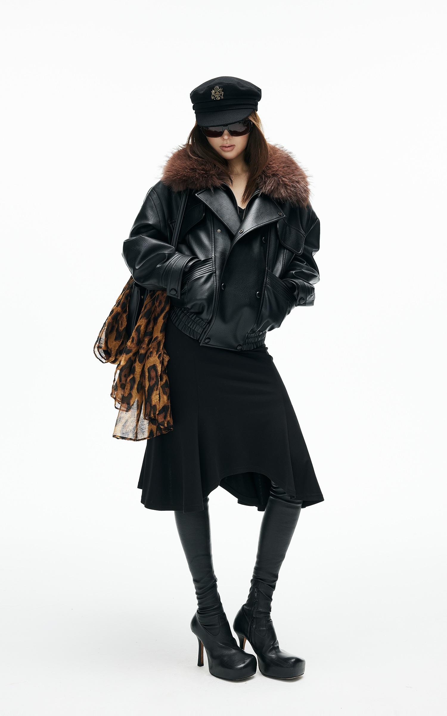 Veste en similicuir avec col en fausse fourrure contrastante