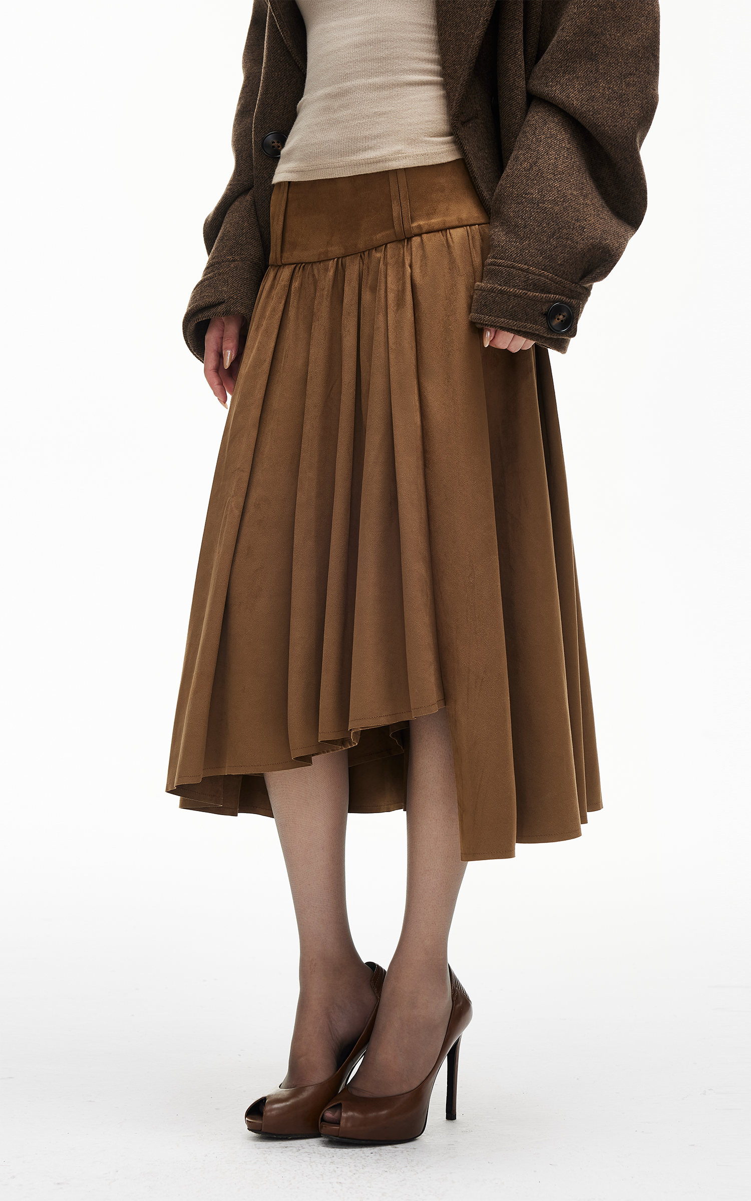IAMXIAA Jupe midi à ourlet asymétrique, coupe féminine ajustée, design évasé