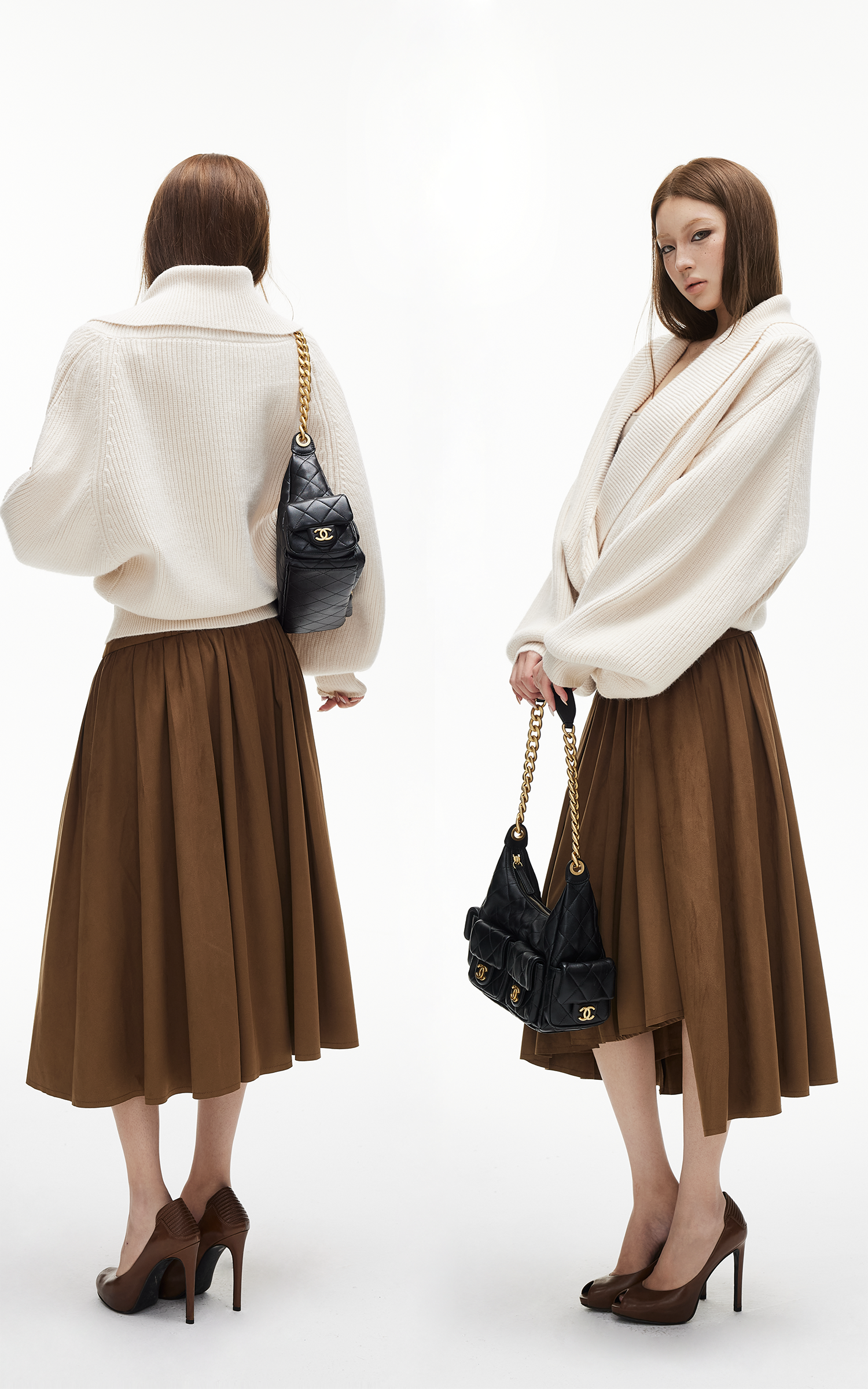 IAMXIAA Pull en maille torsadée & Ensemble deux pièces jupe côtelée