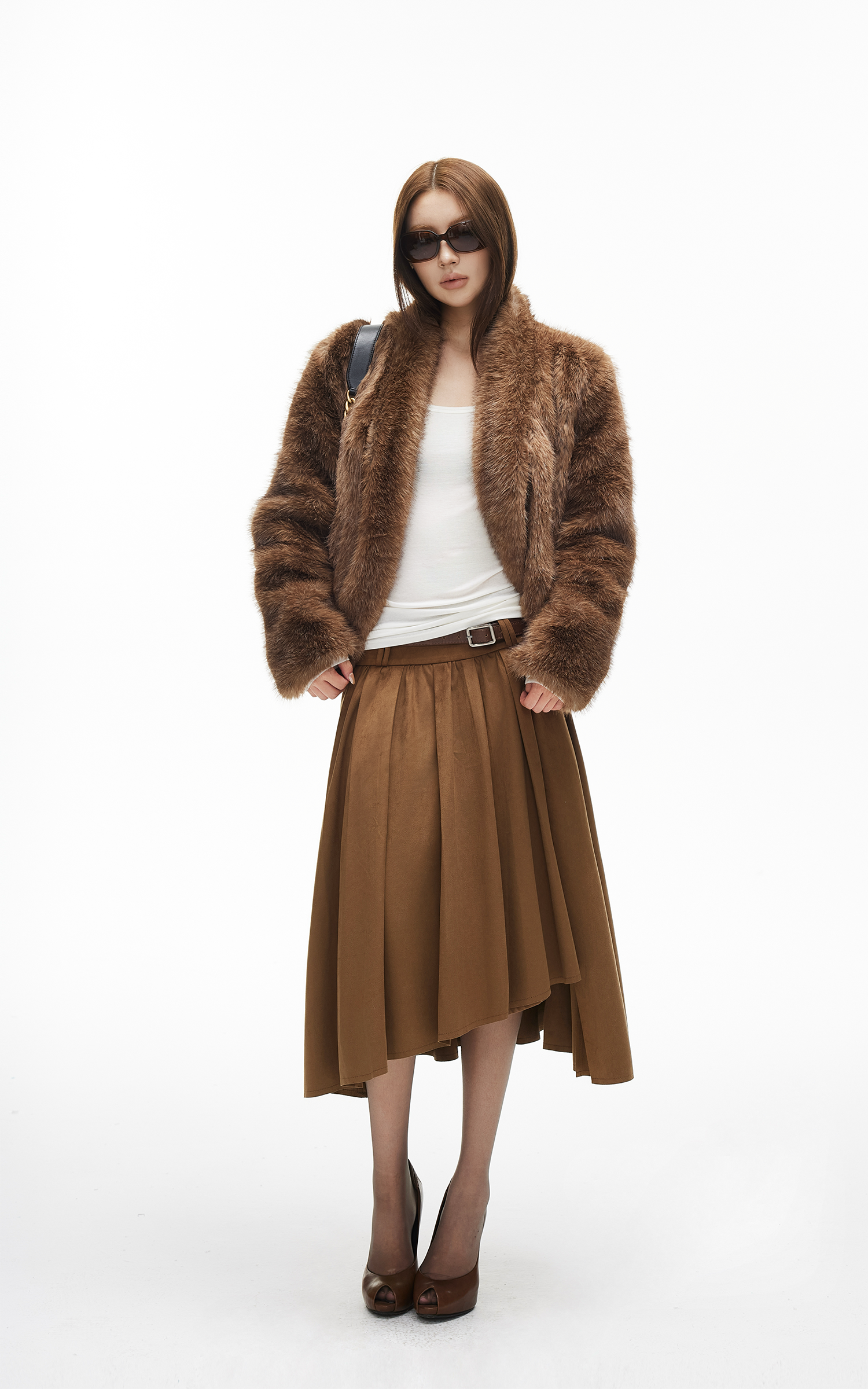 IAMXIAA Jupe midi sirène taille haute effet laine avec ourlet brut