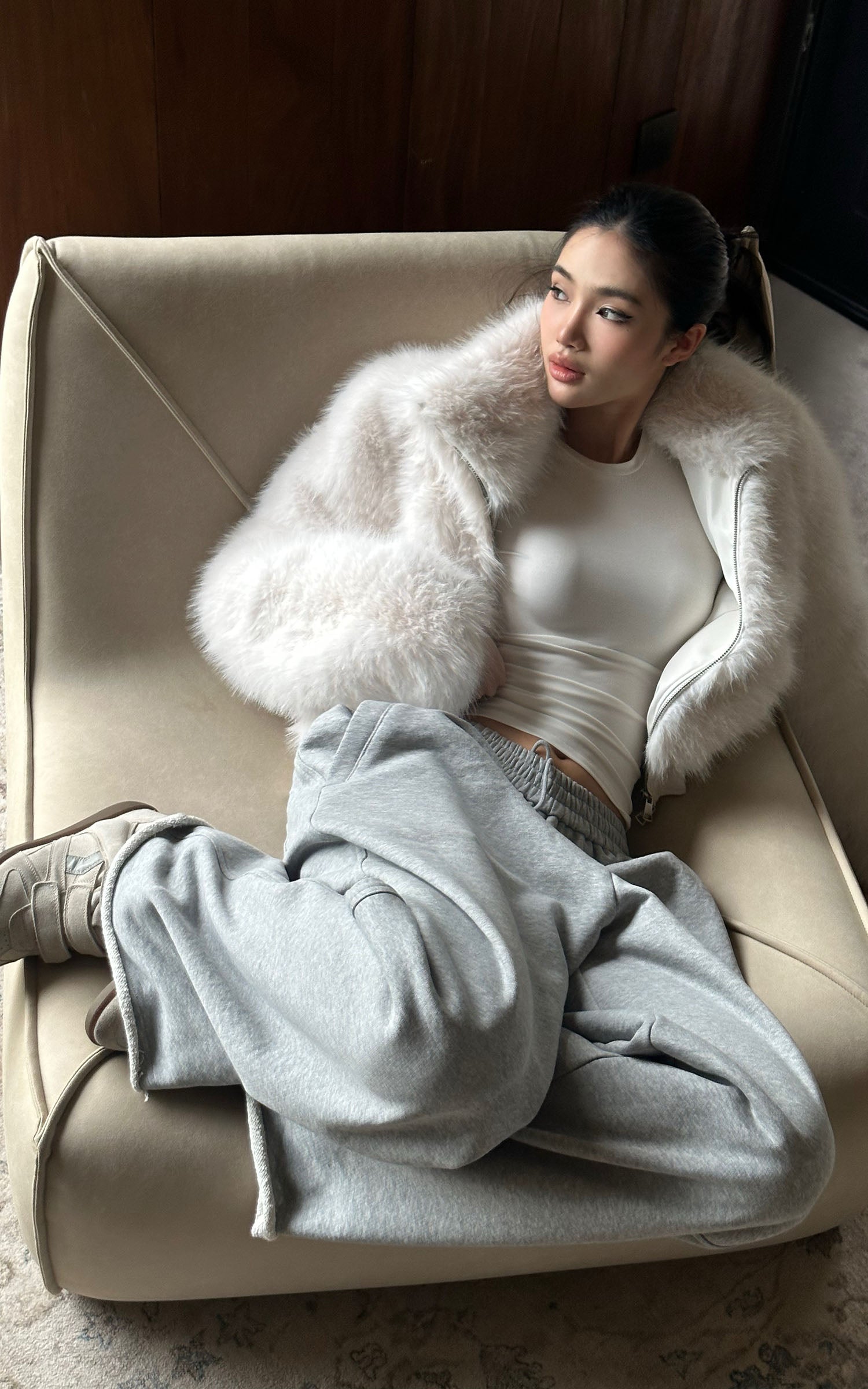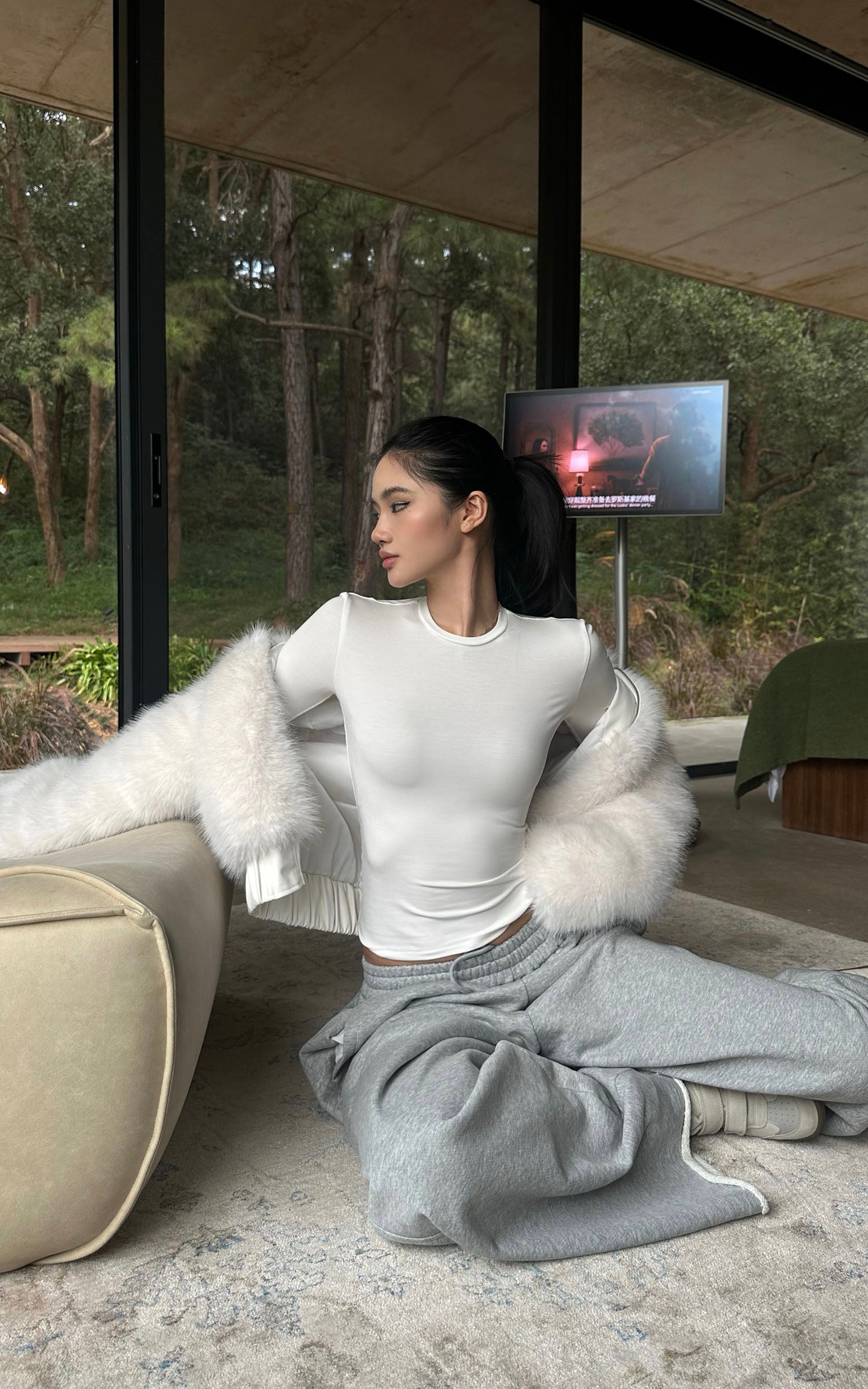 ROVENTE Haut à manches longues épaules dénudées en fausse fourrure