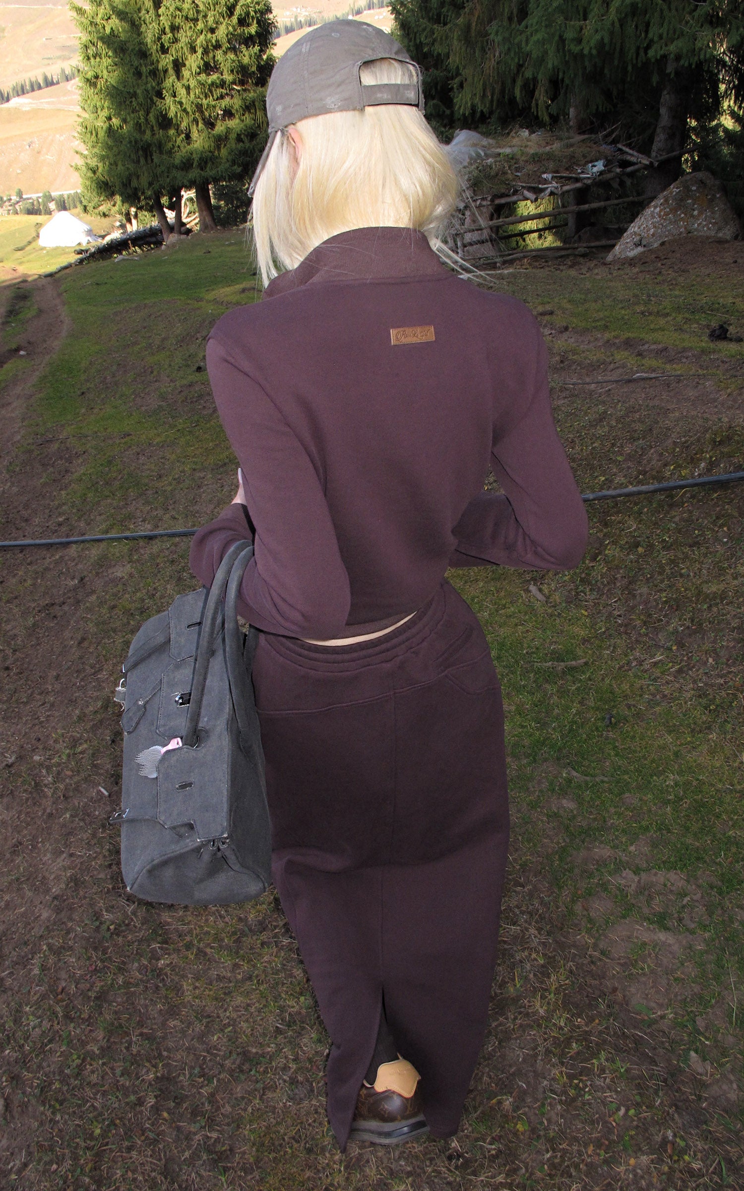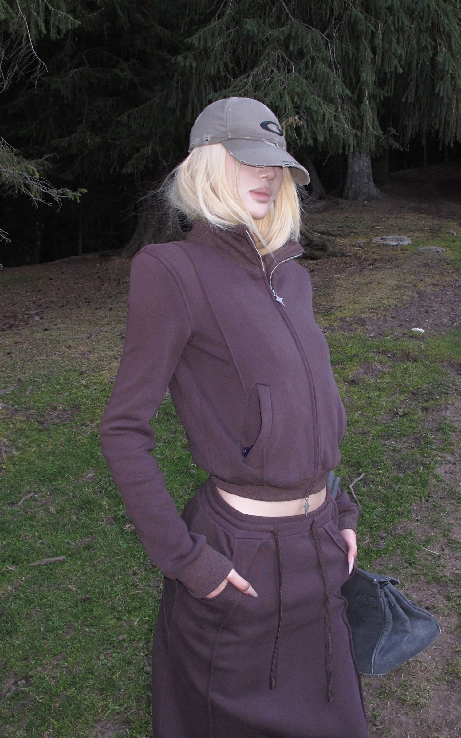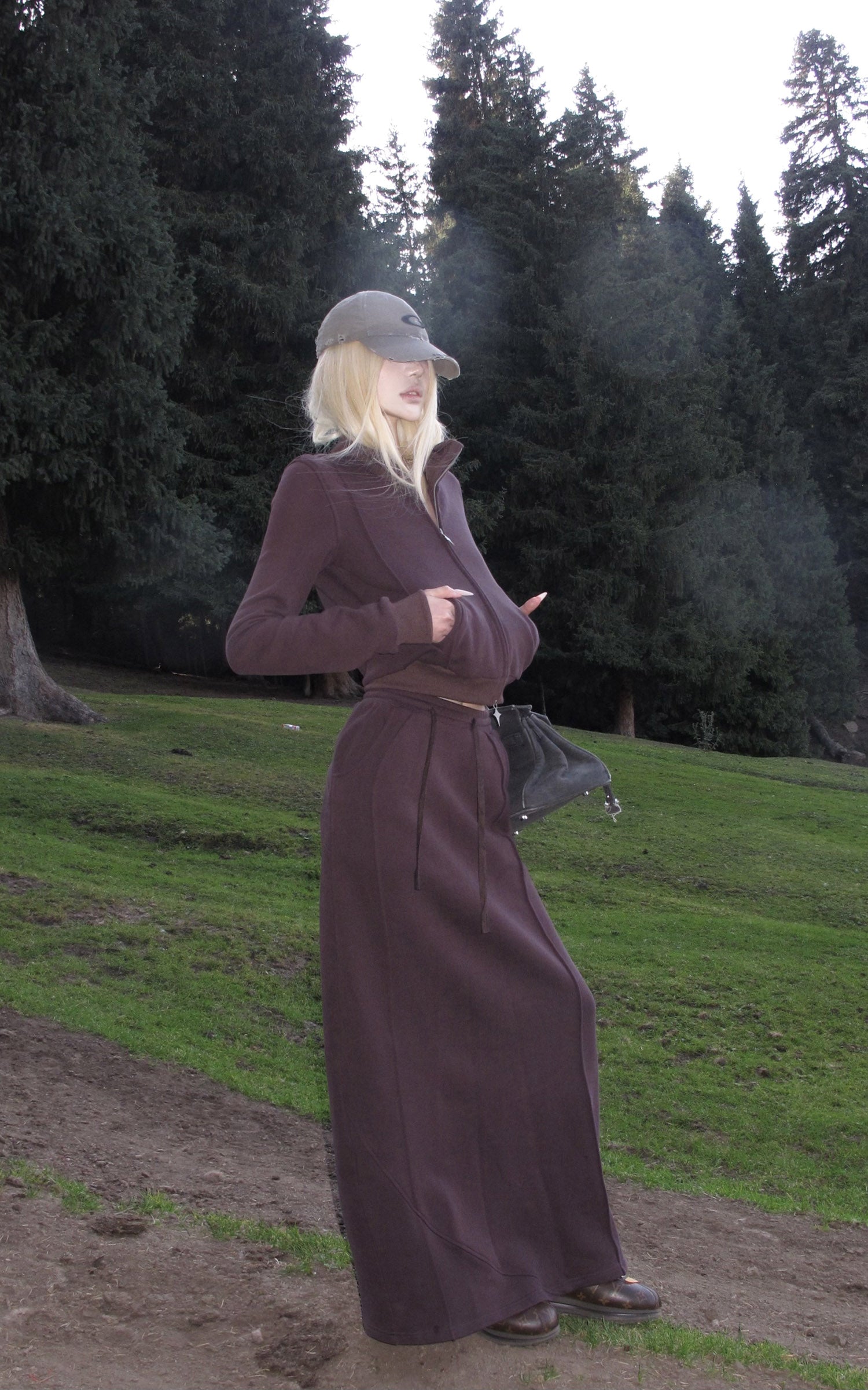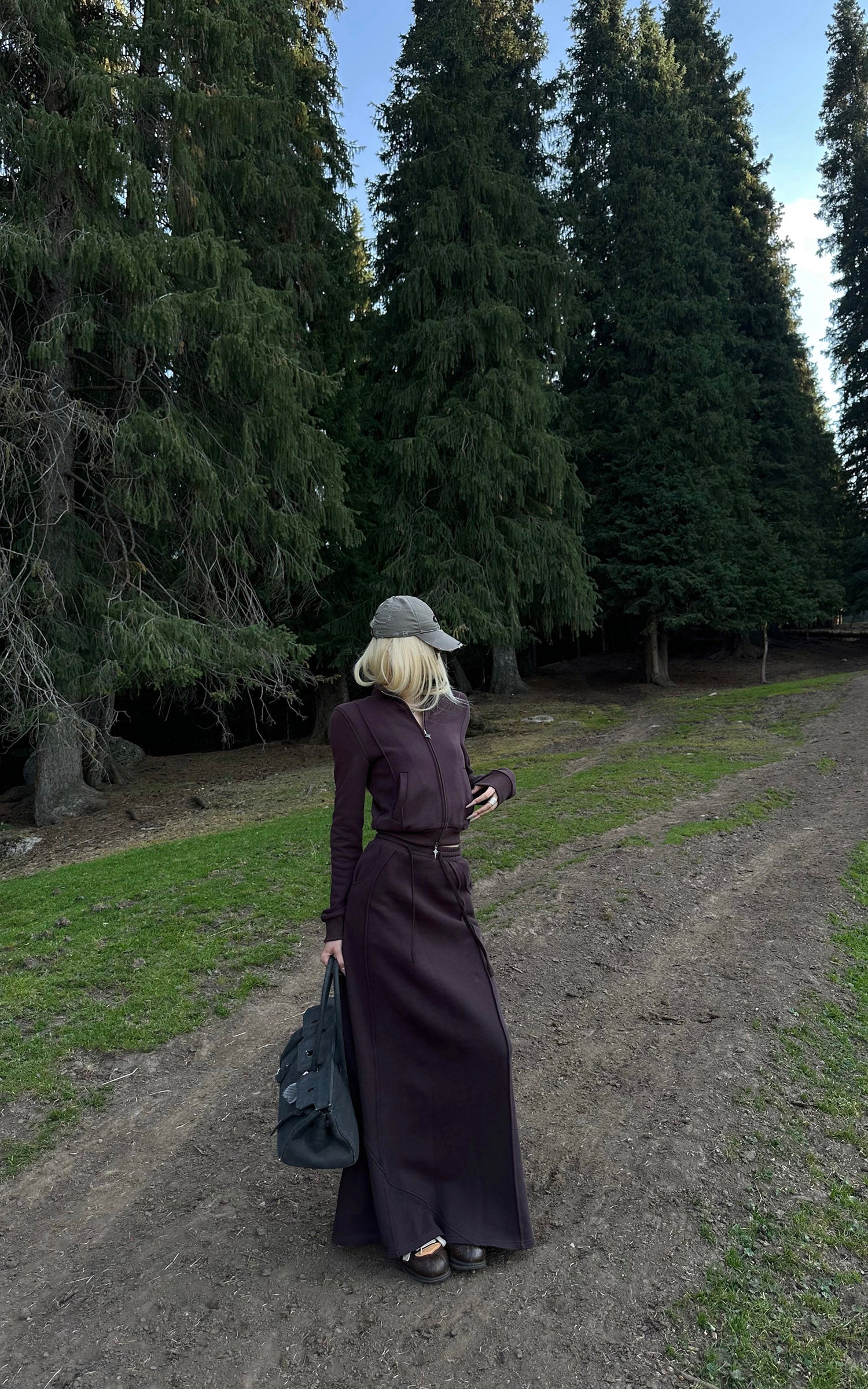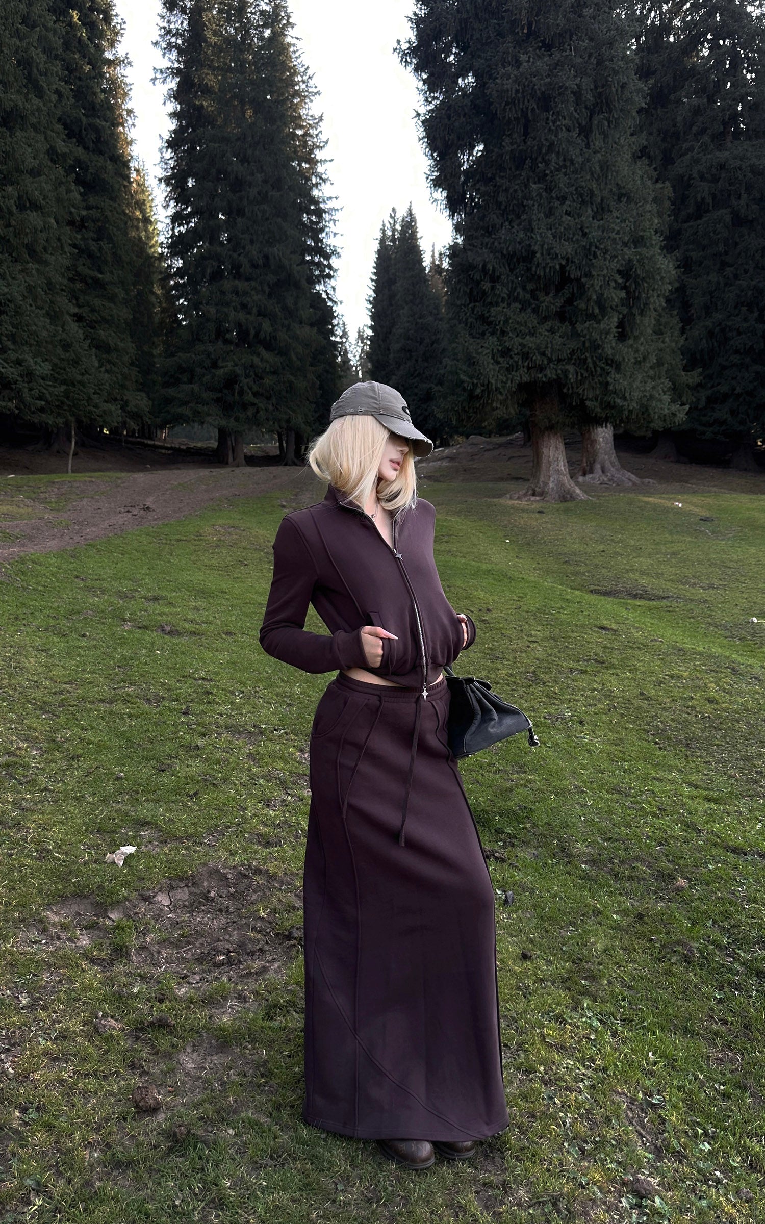 Rase le sol Zip Collar Sweat Jacket and Paneled Maxi Skirt Set