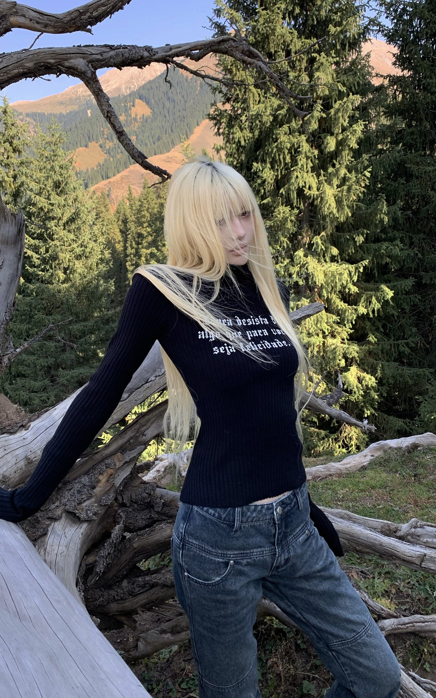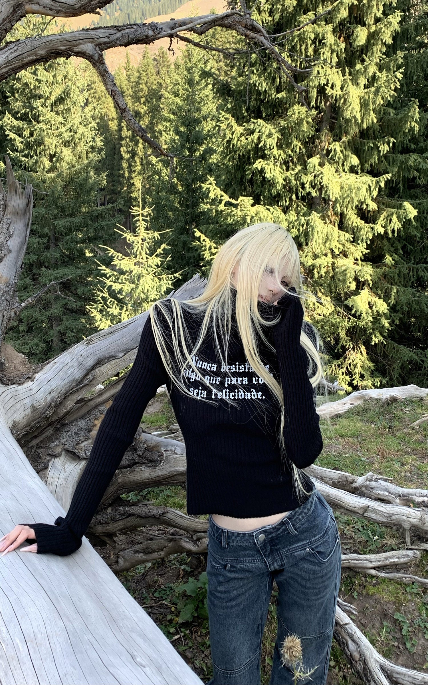 Rase le sol Gothic Letter Ribbed Turtleneck Knit
