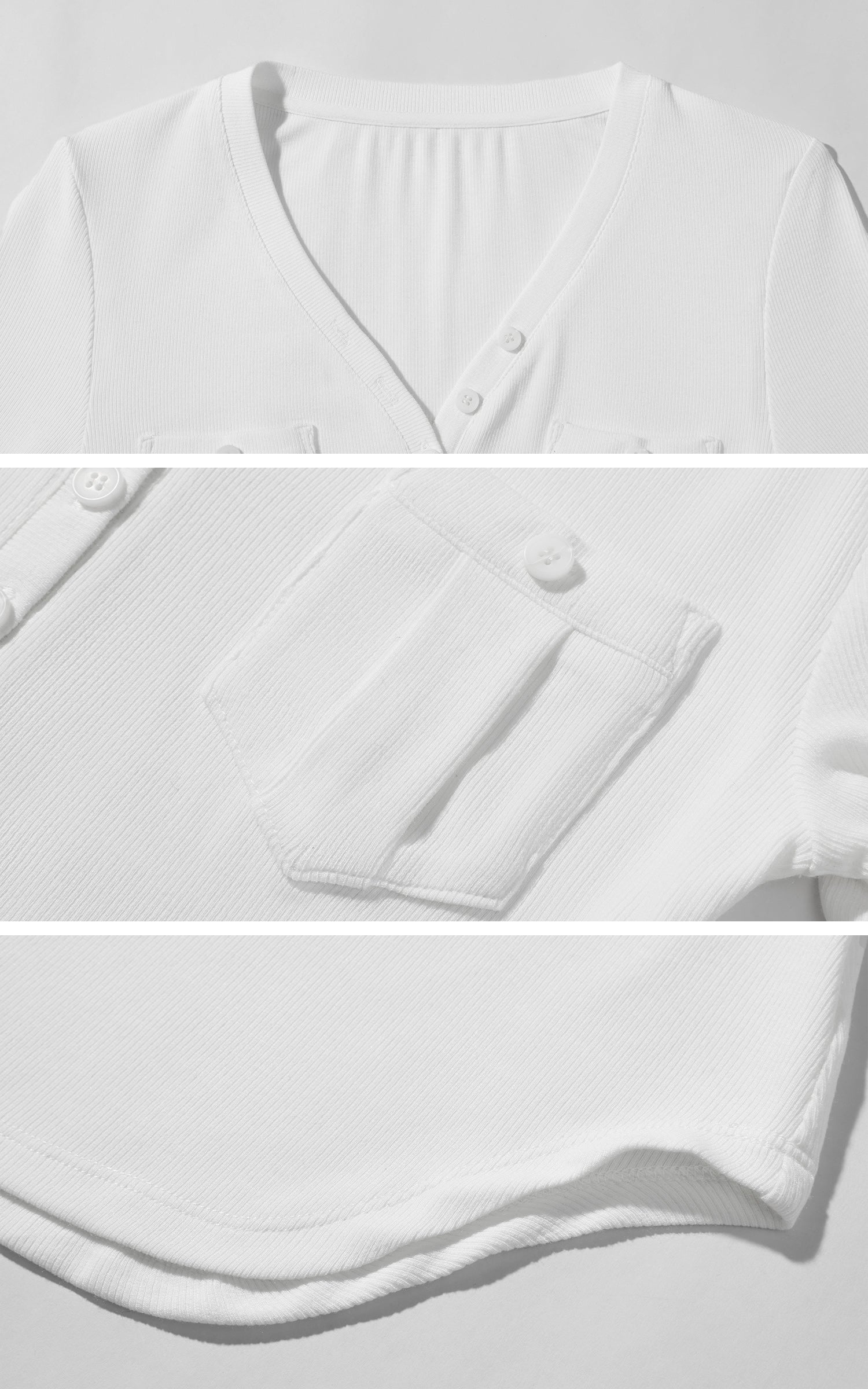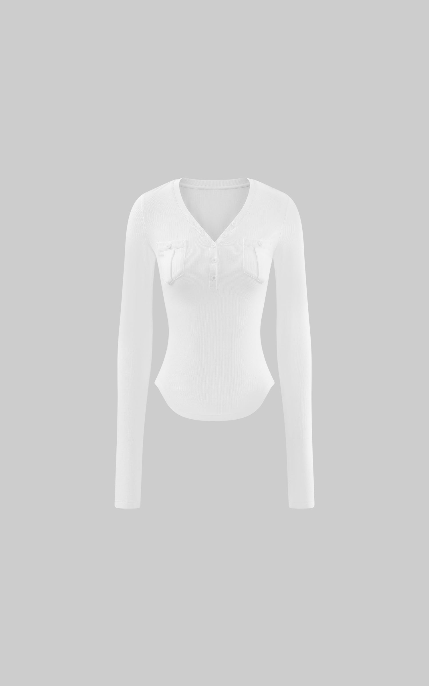 WARDEN EDGE Vネックとデュアルチェストポケット付きのフィットリブロングスリーブトップ