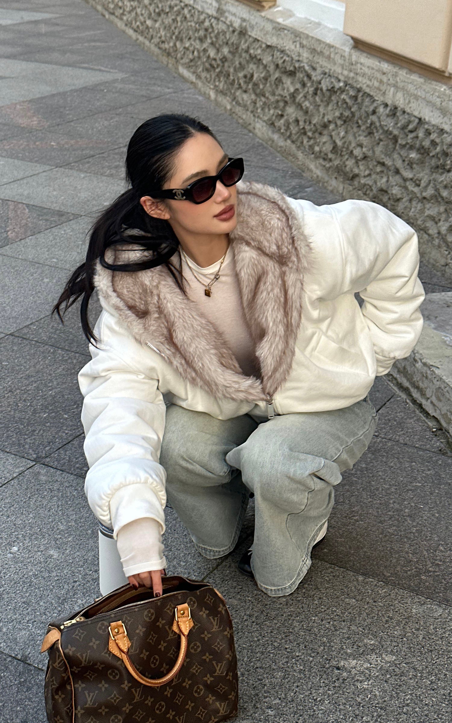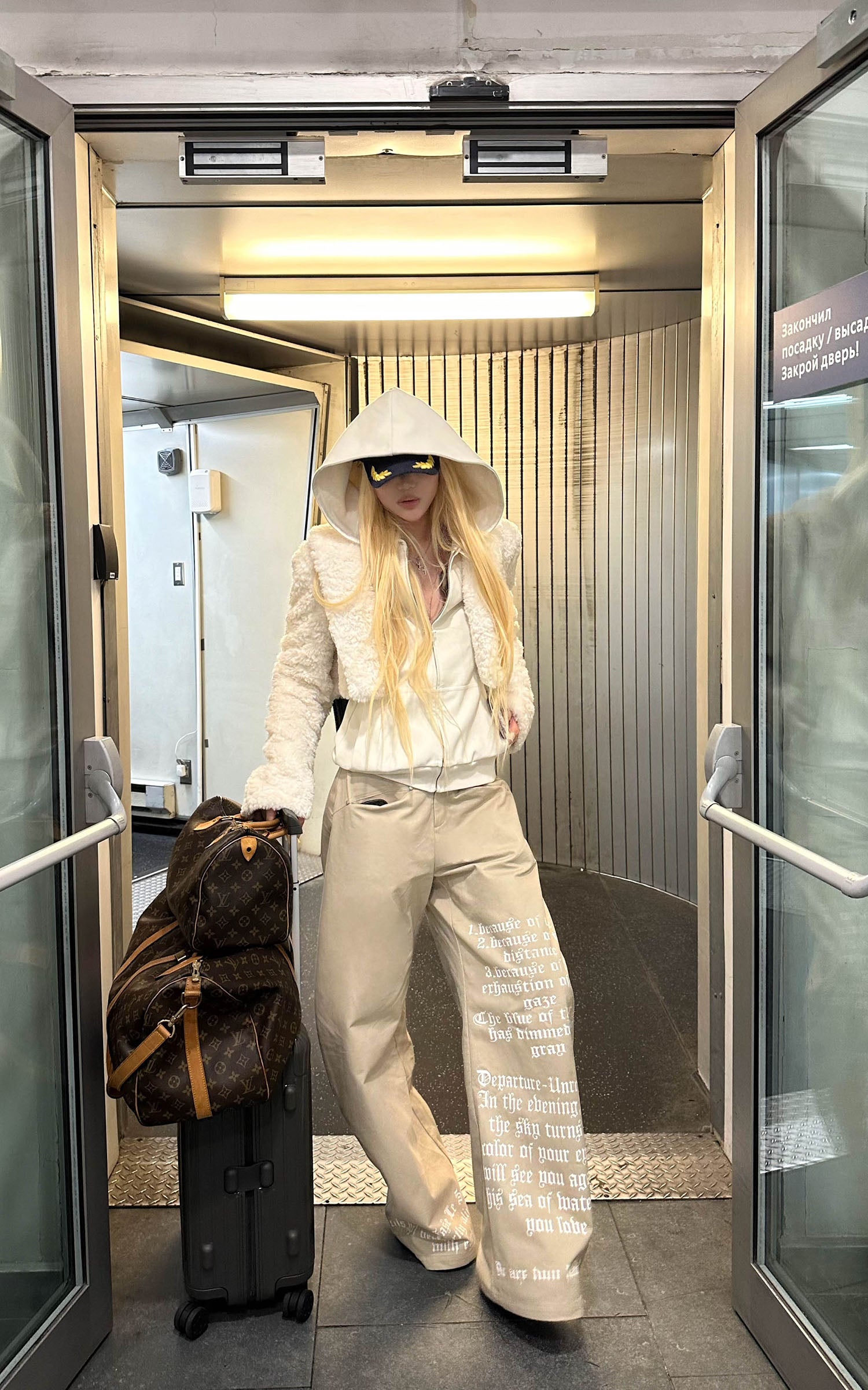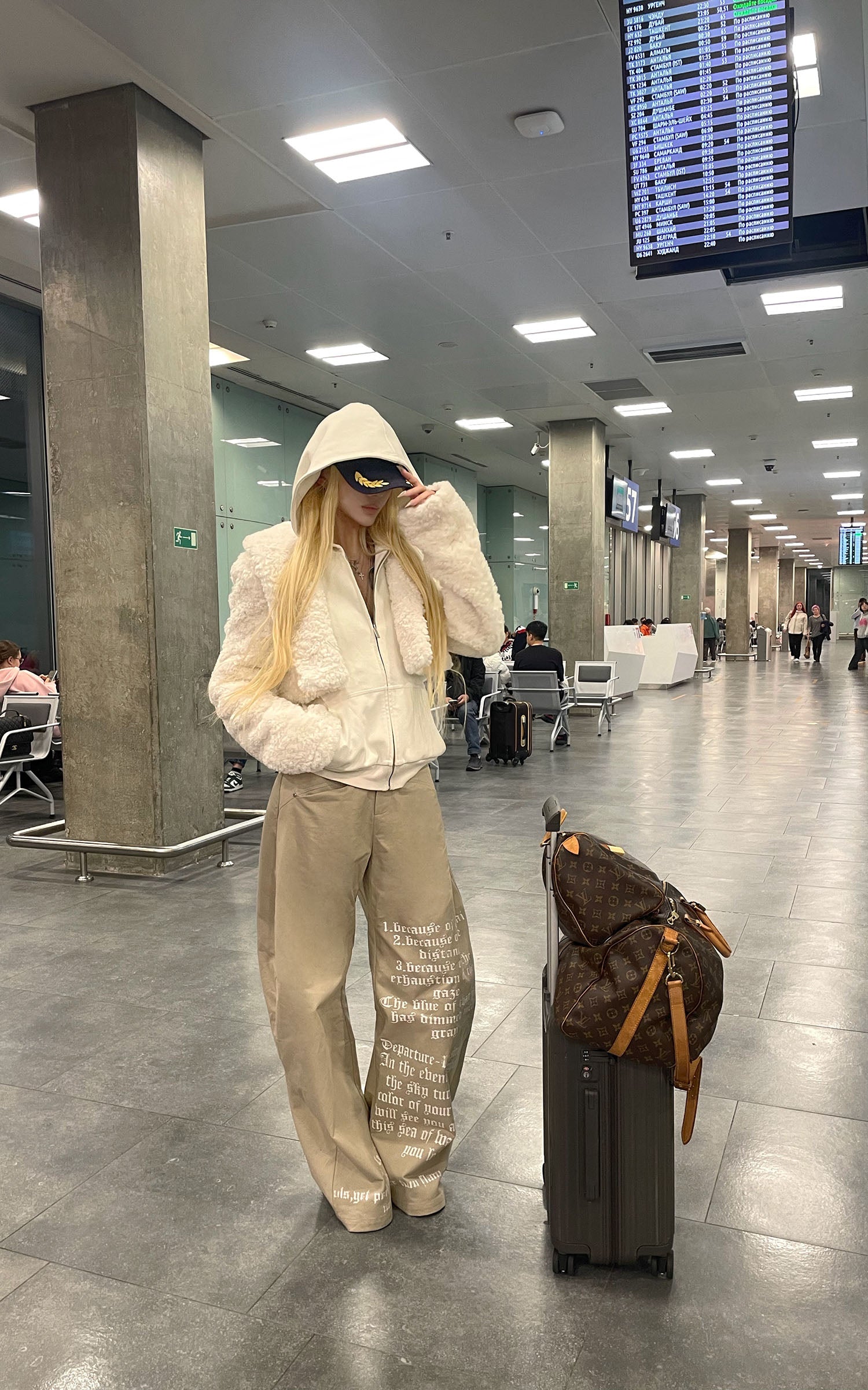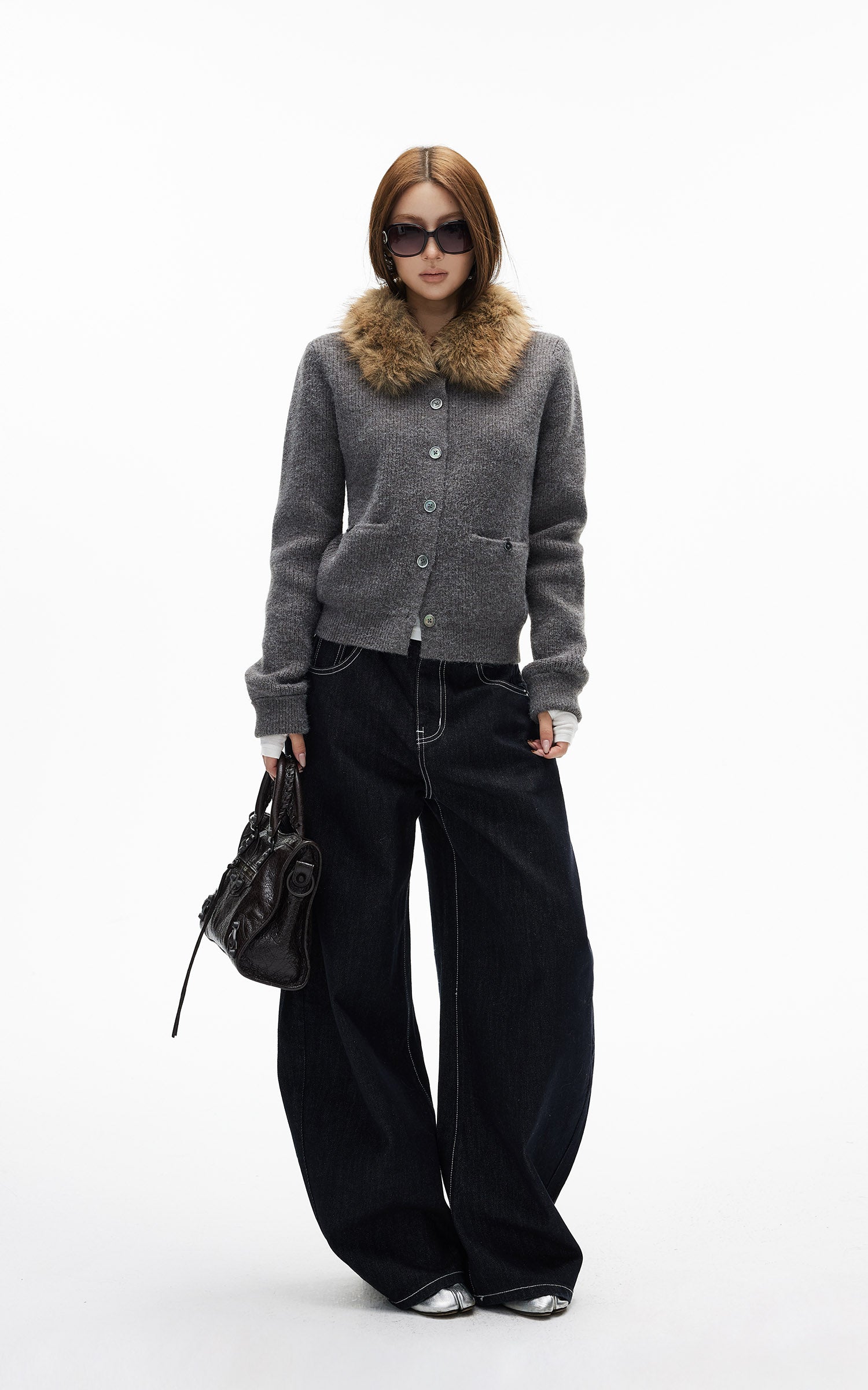 IAMXIAA フェイクファー付きフリースフーディーとワイドレッグスウェットパンツセット