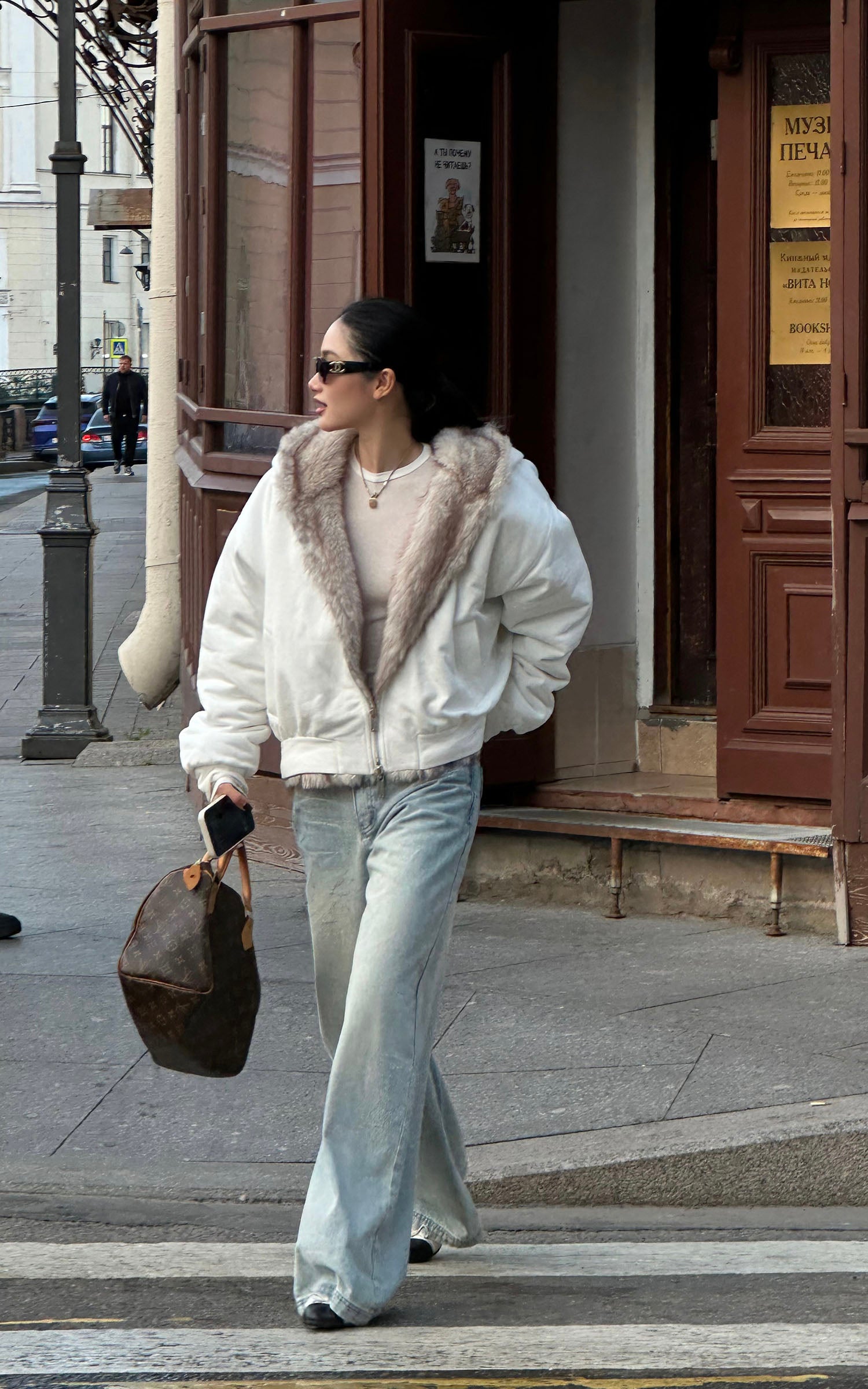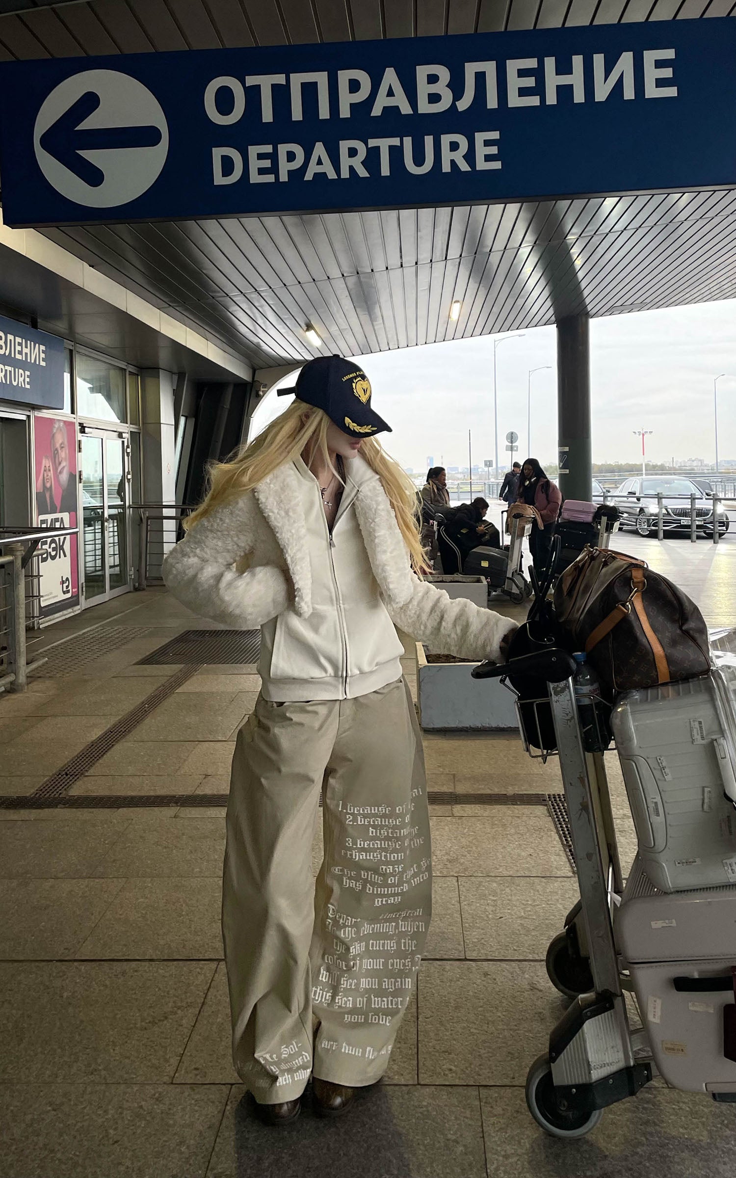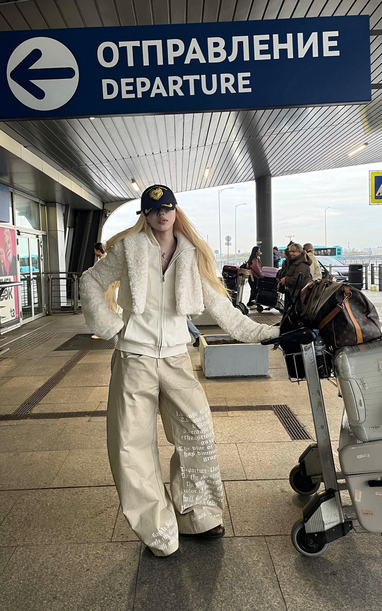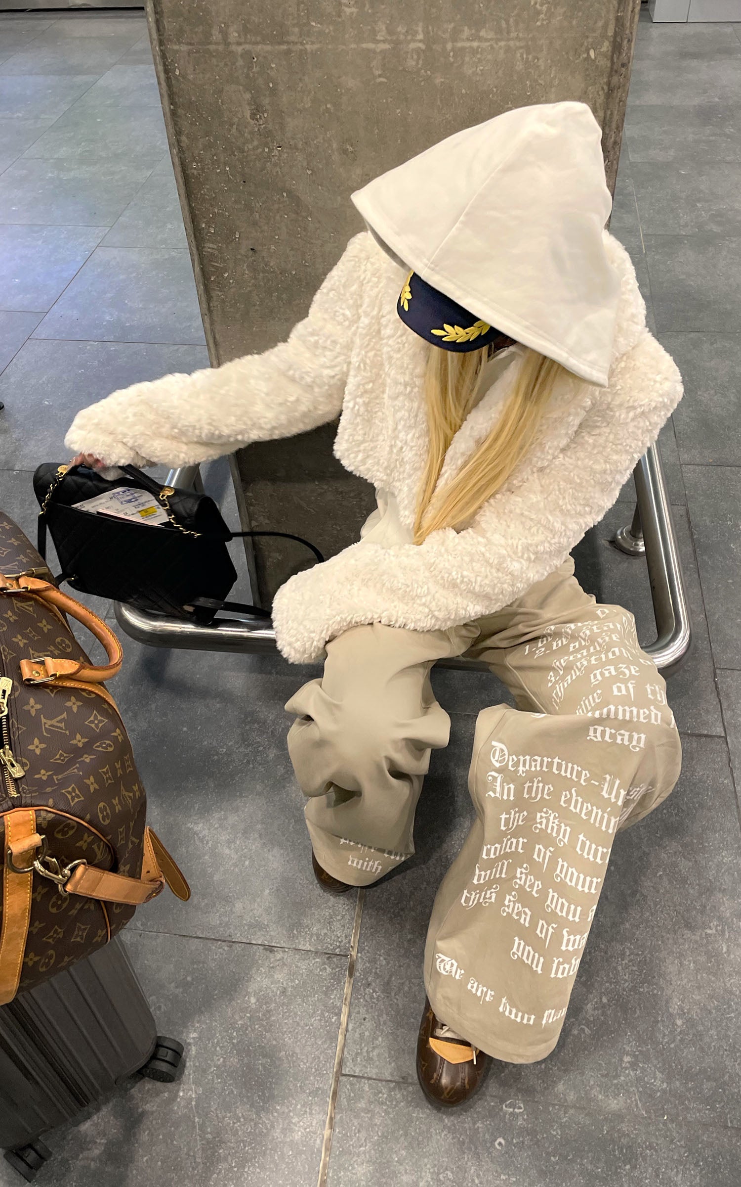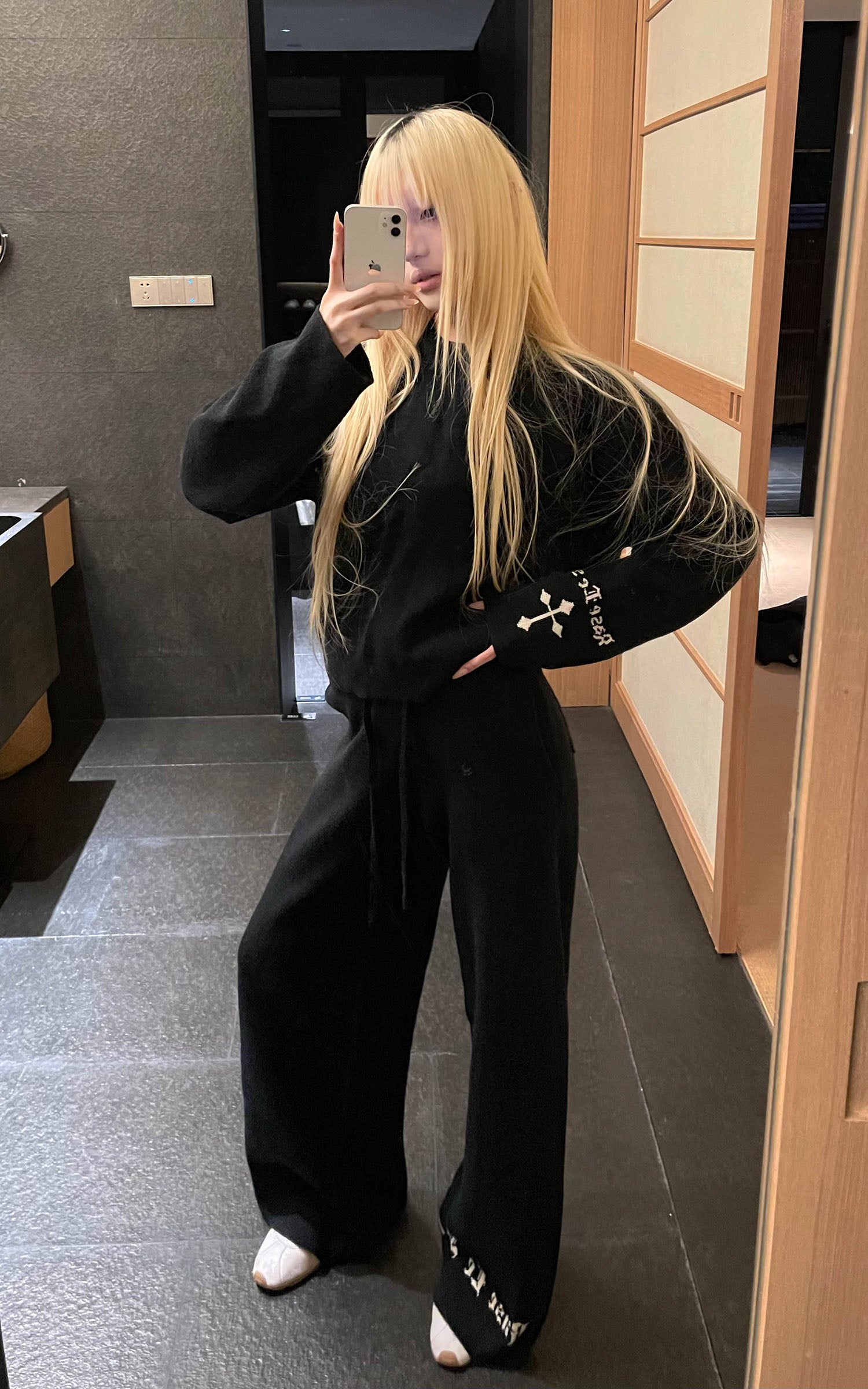 IAMXIAA フェイクファー付きフリースフーディーとワイドレッグスウェットパンツセット