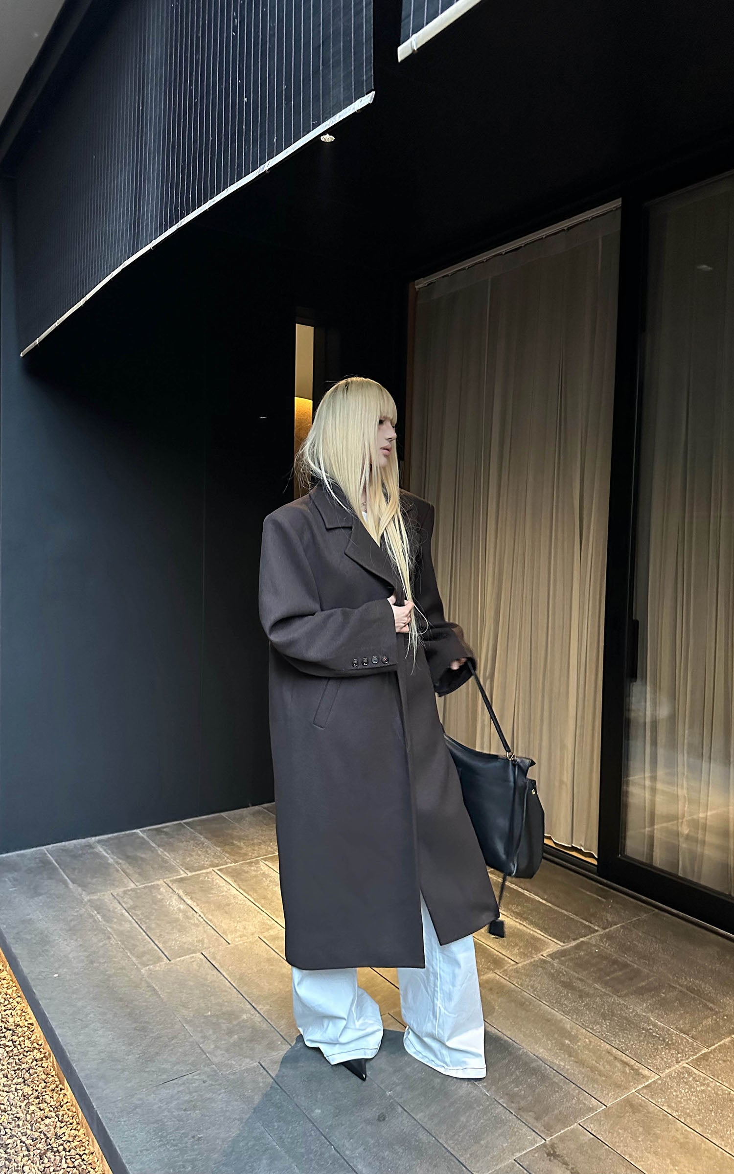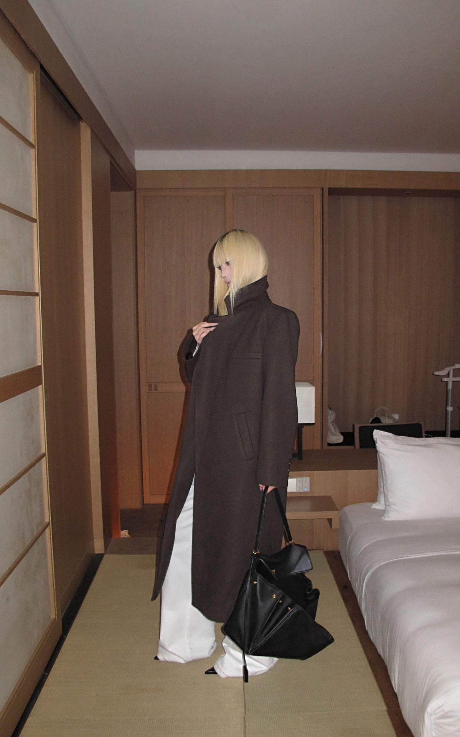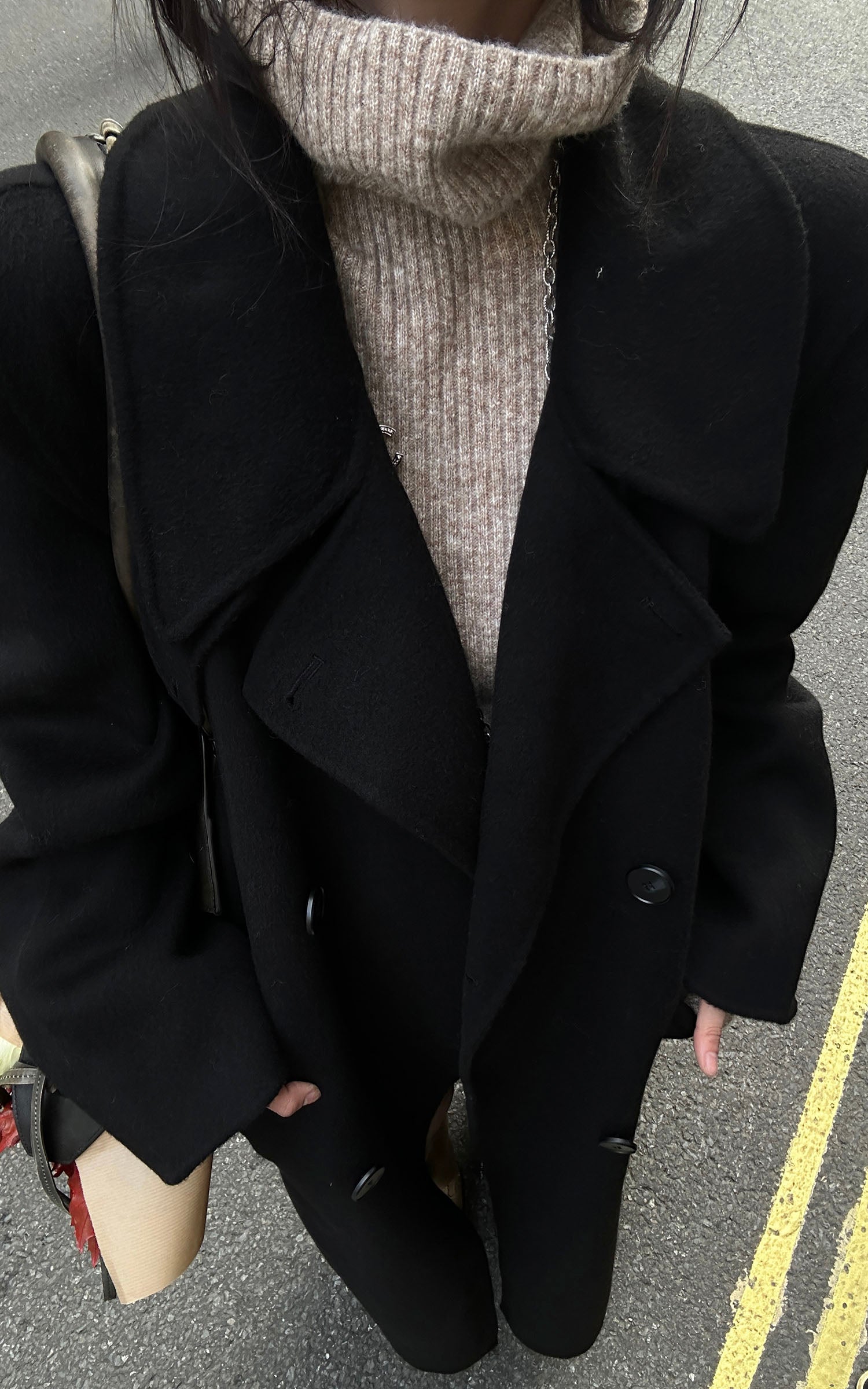 IAMXIAA ウール風ハイネックベルト付きダブルブレストジャケット