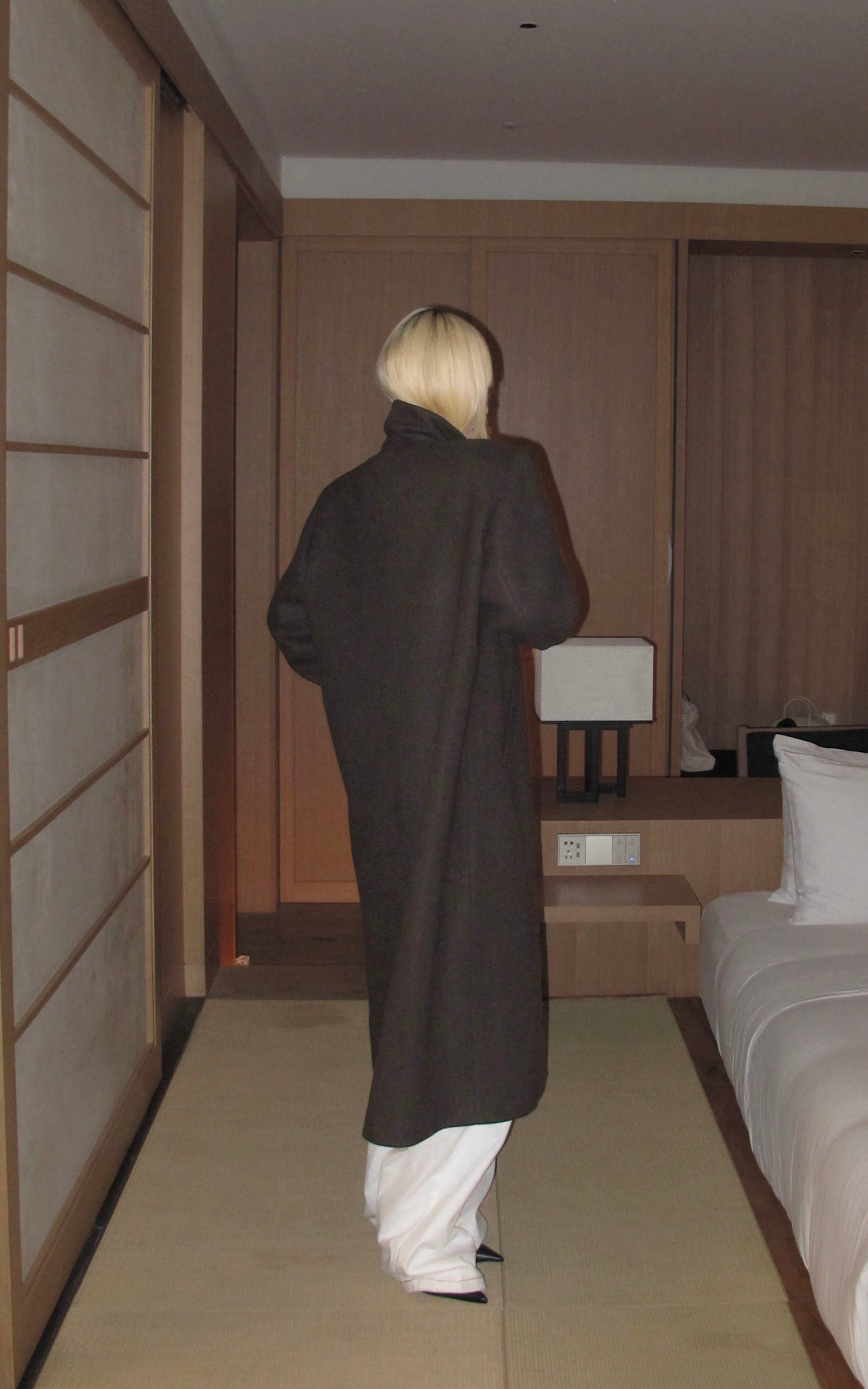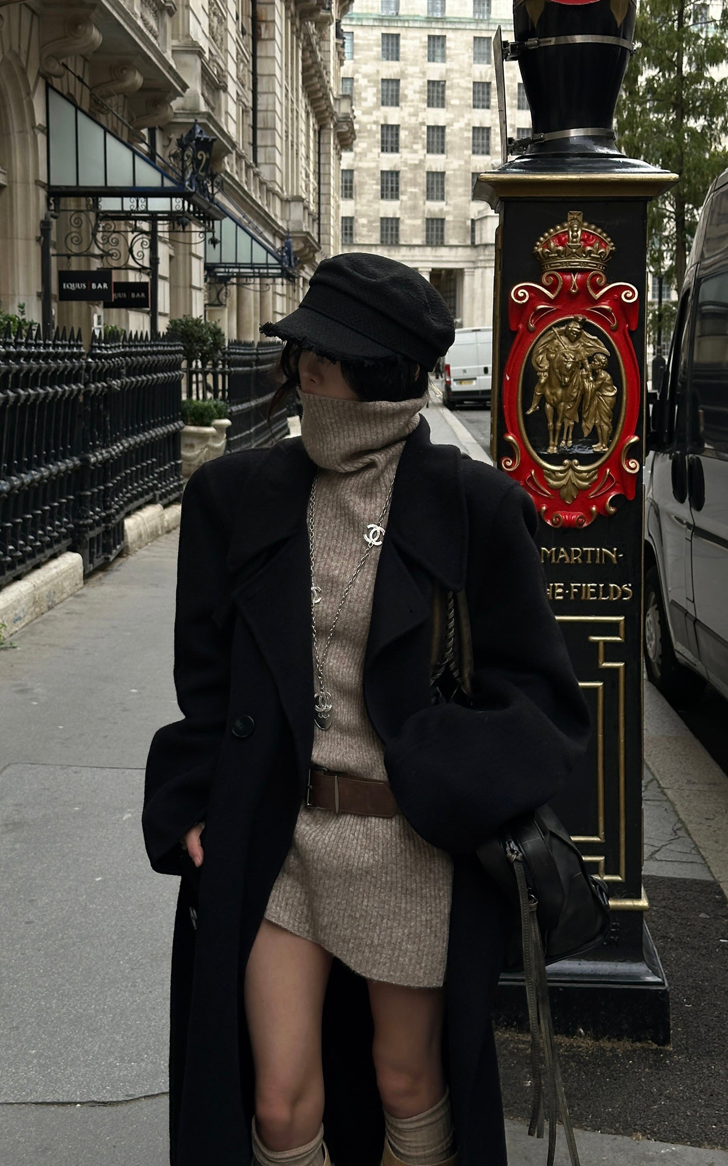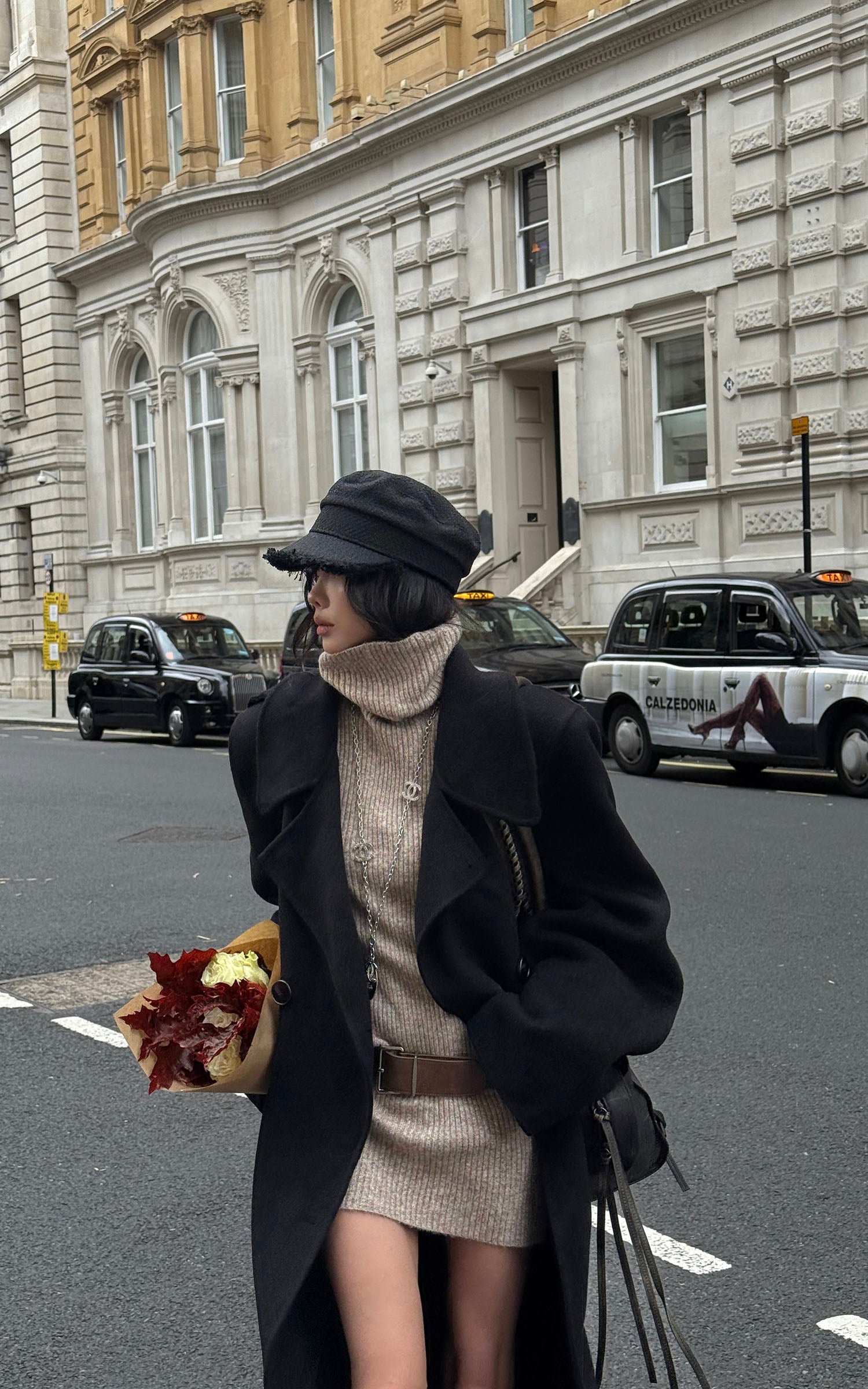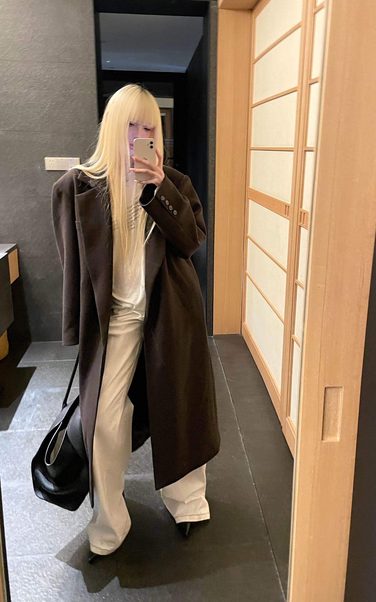 IAMXIAA ウール風ハイネックベルト付きダブルブレストジャケット
