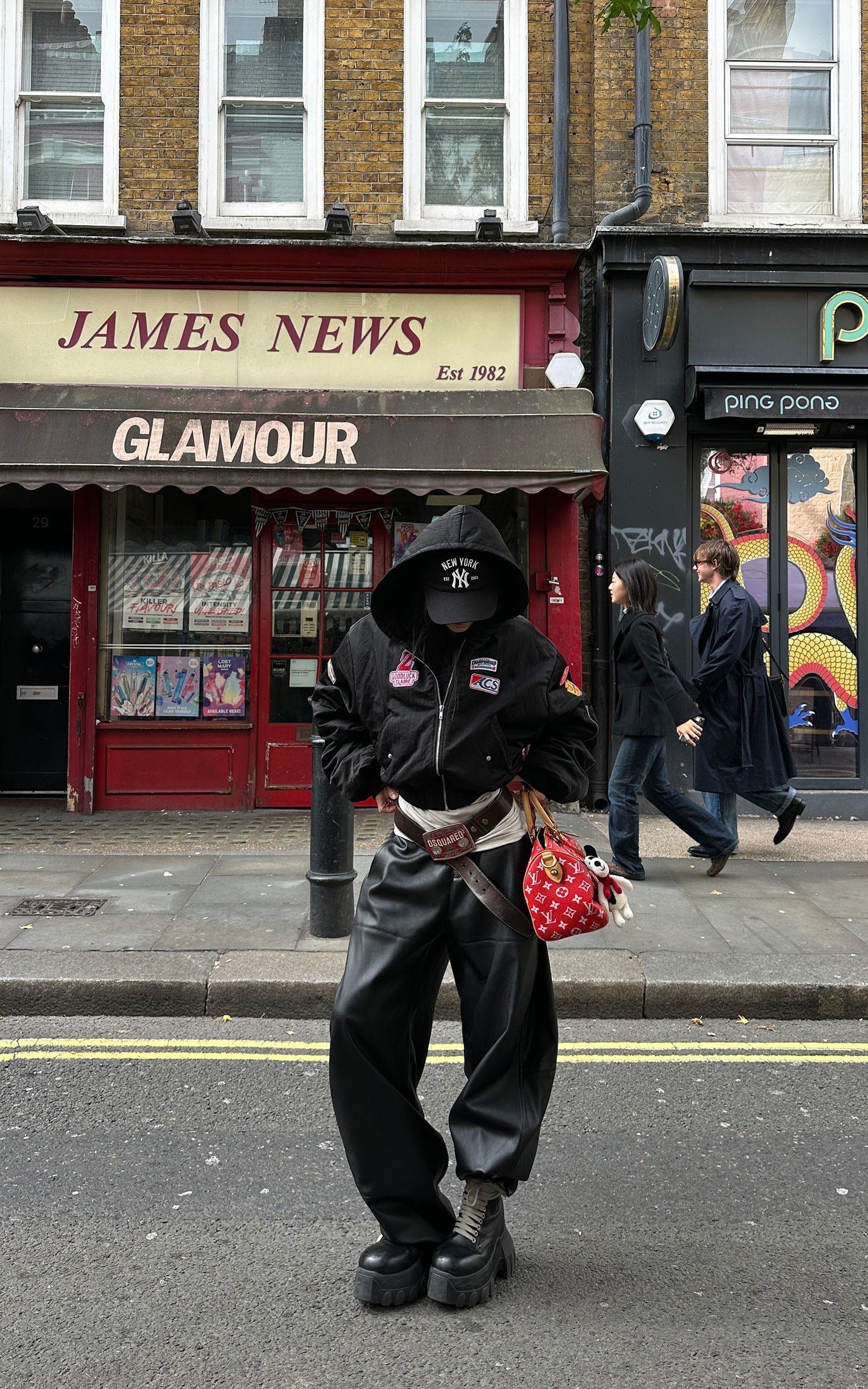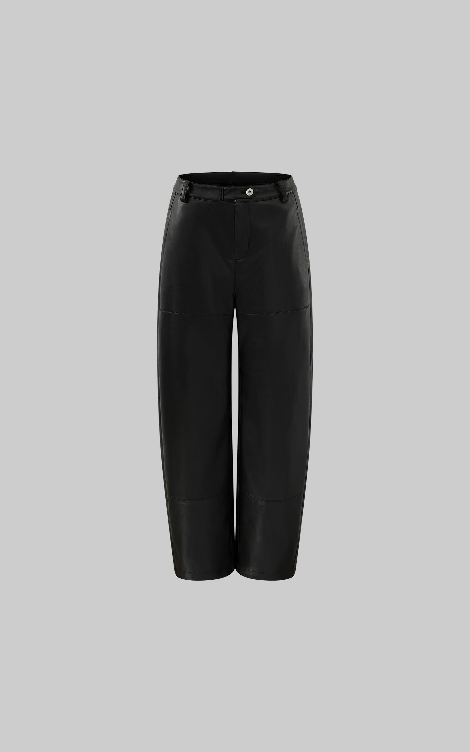 WARDEN EDGE ブラックフェイクレザー ワイドレッグパンツ
