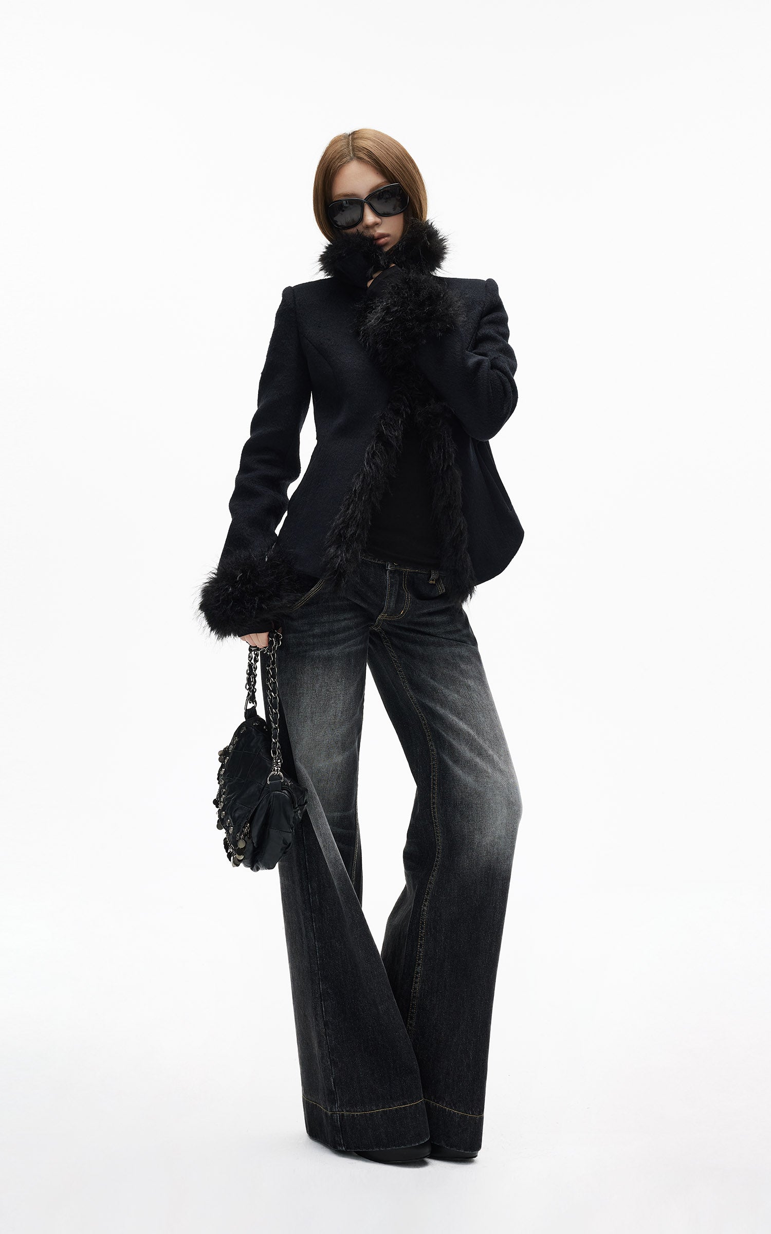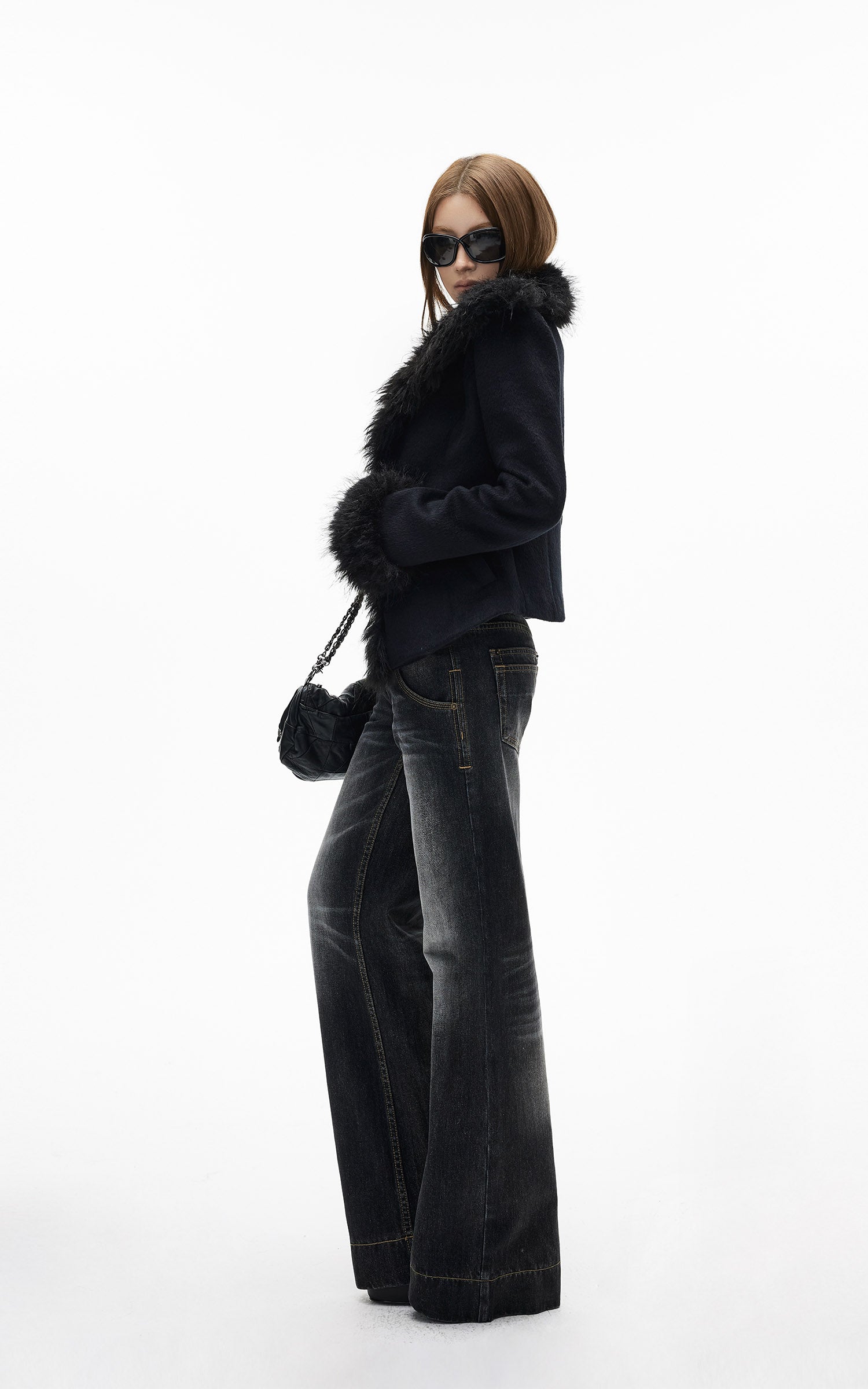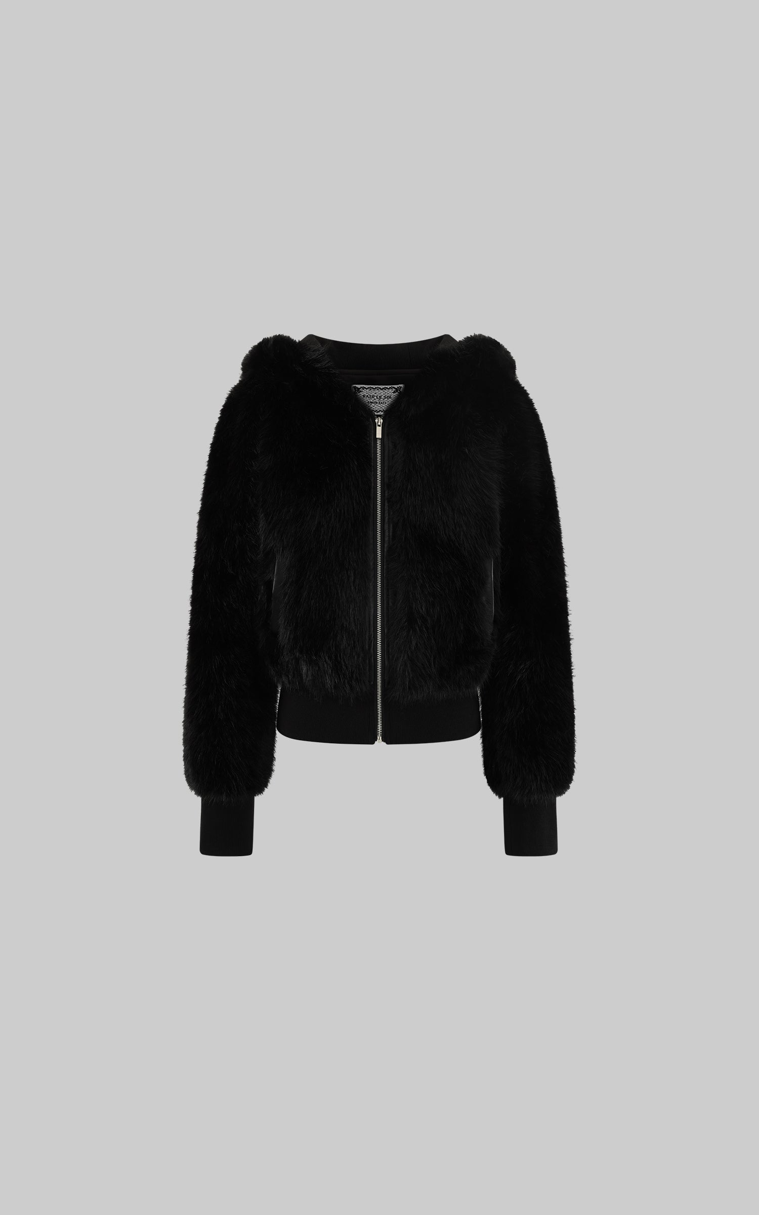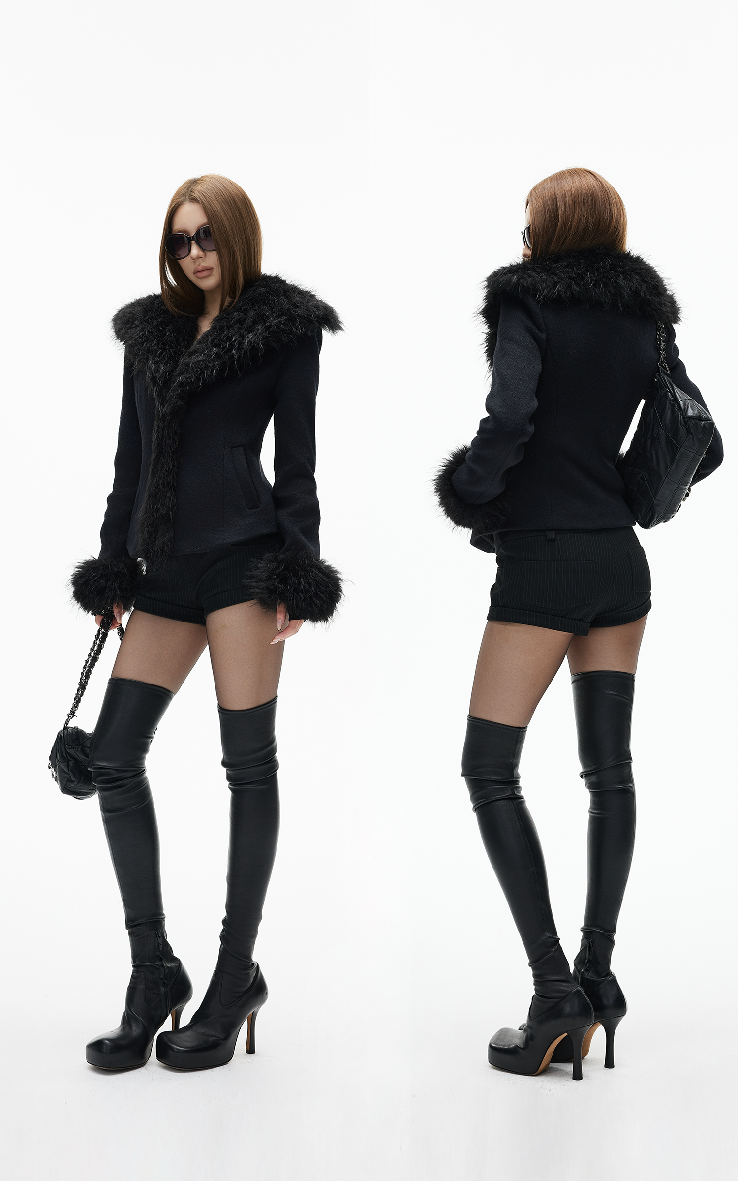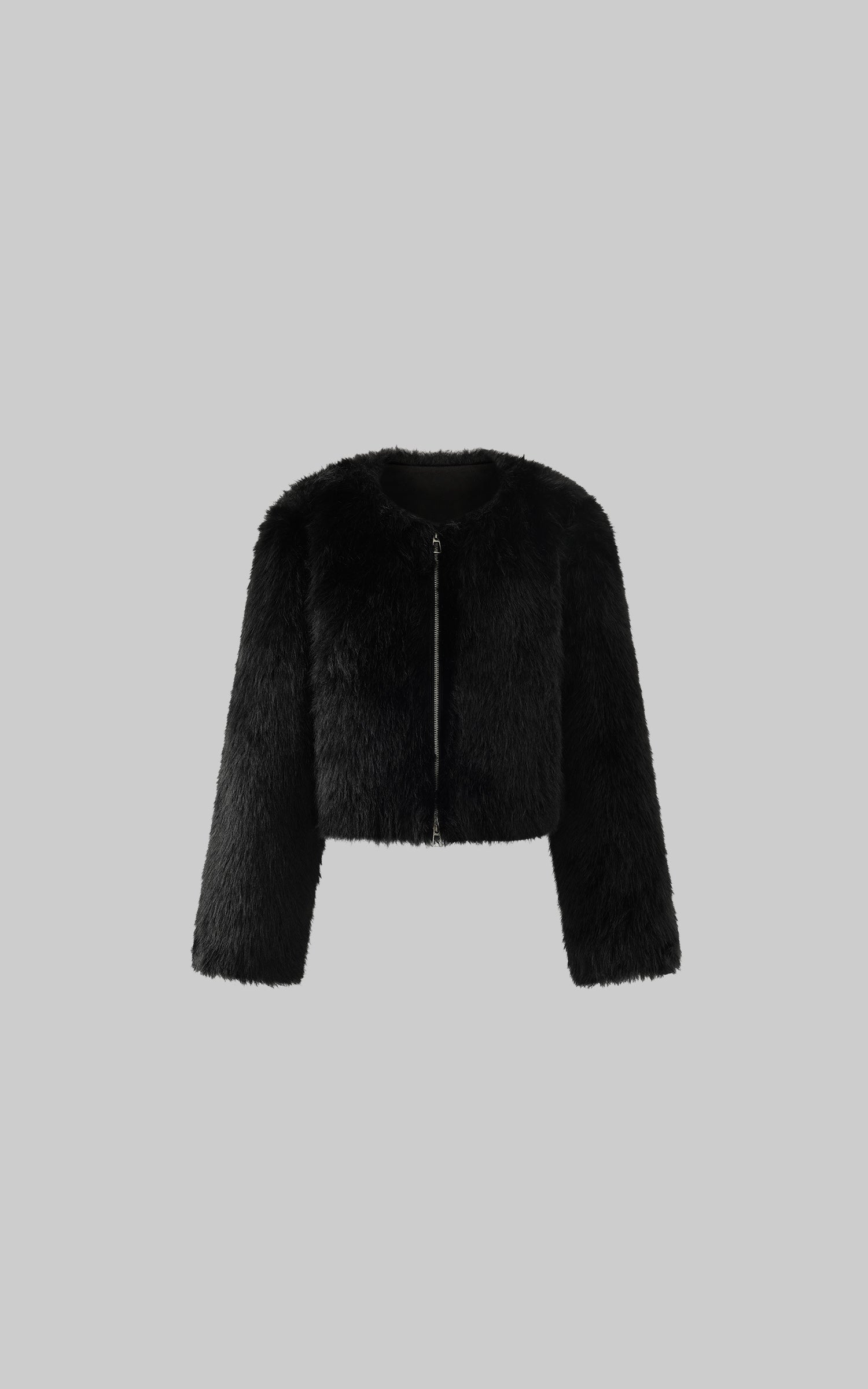 WARDEN EDGE ブラック クロップド フェイクファー ジップジャケット