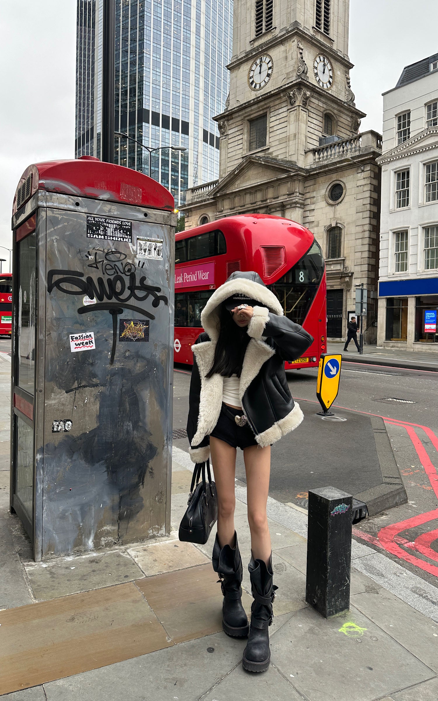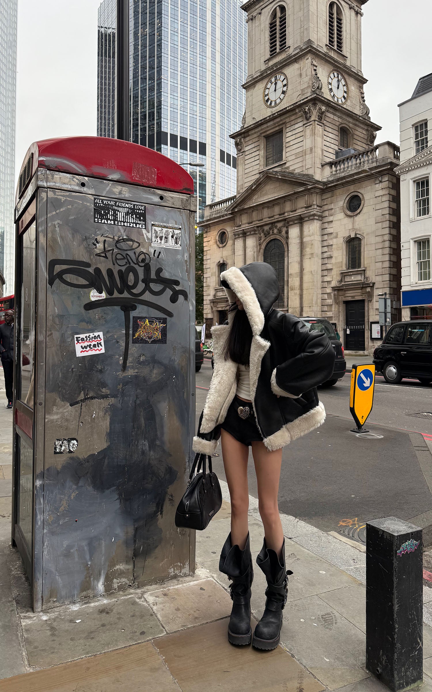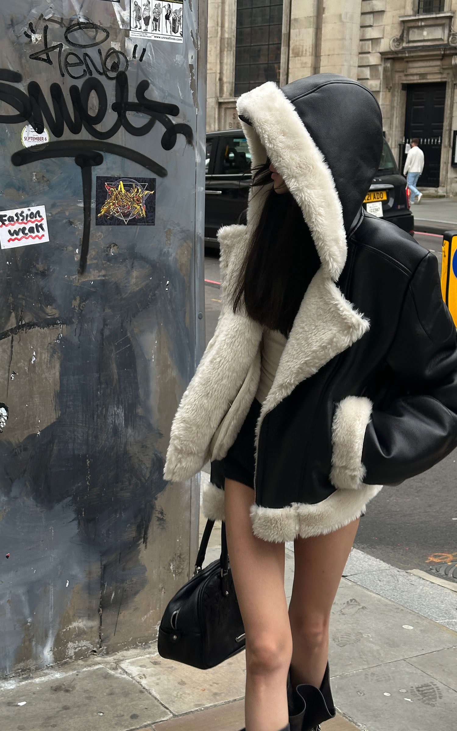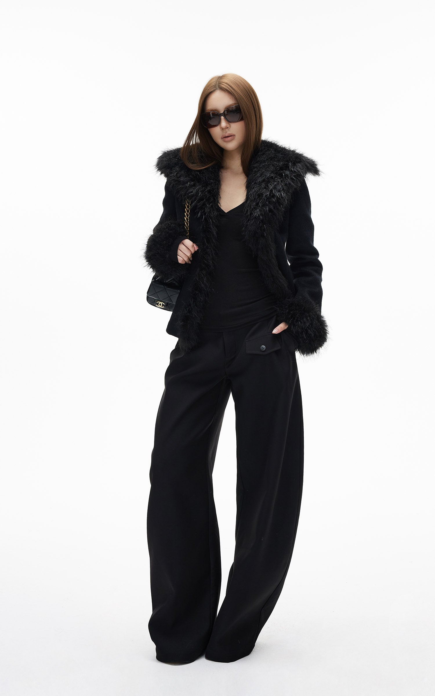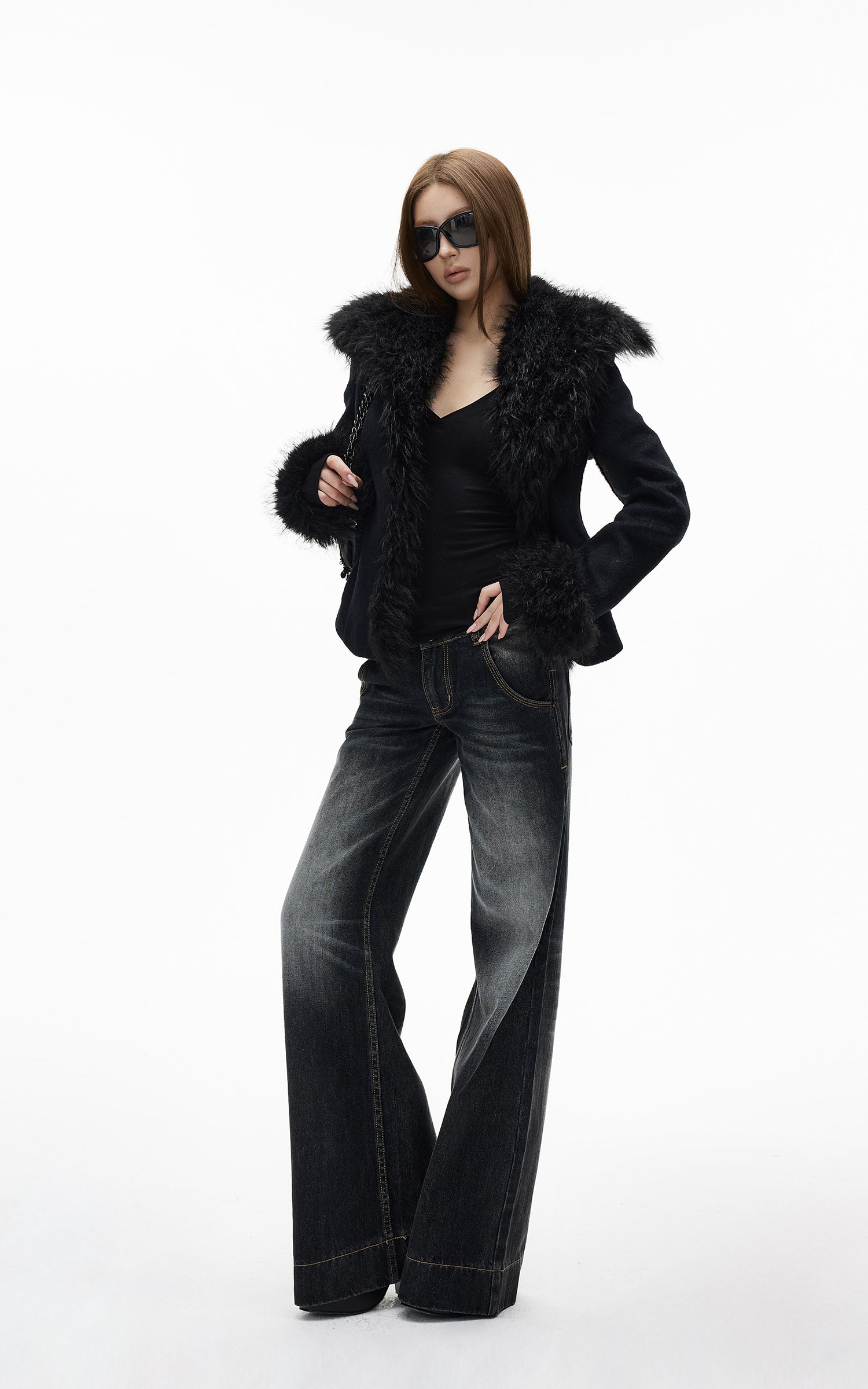 WARDEN EDGE ブラック クロップド フェイクファー ジップジャケット