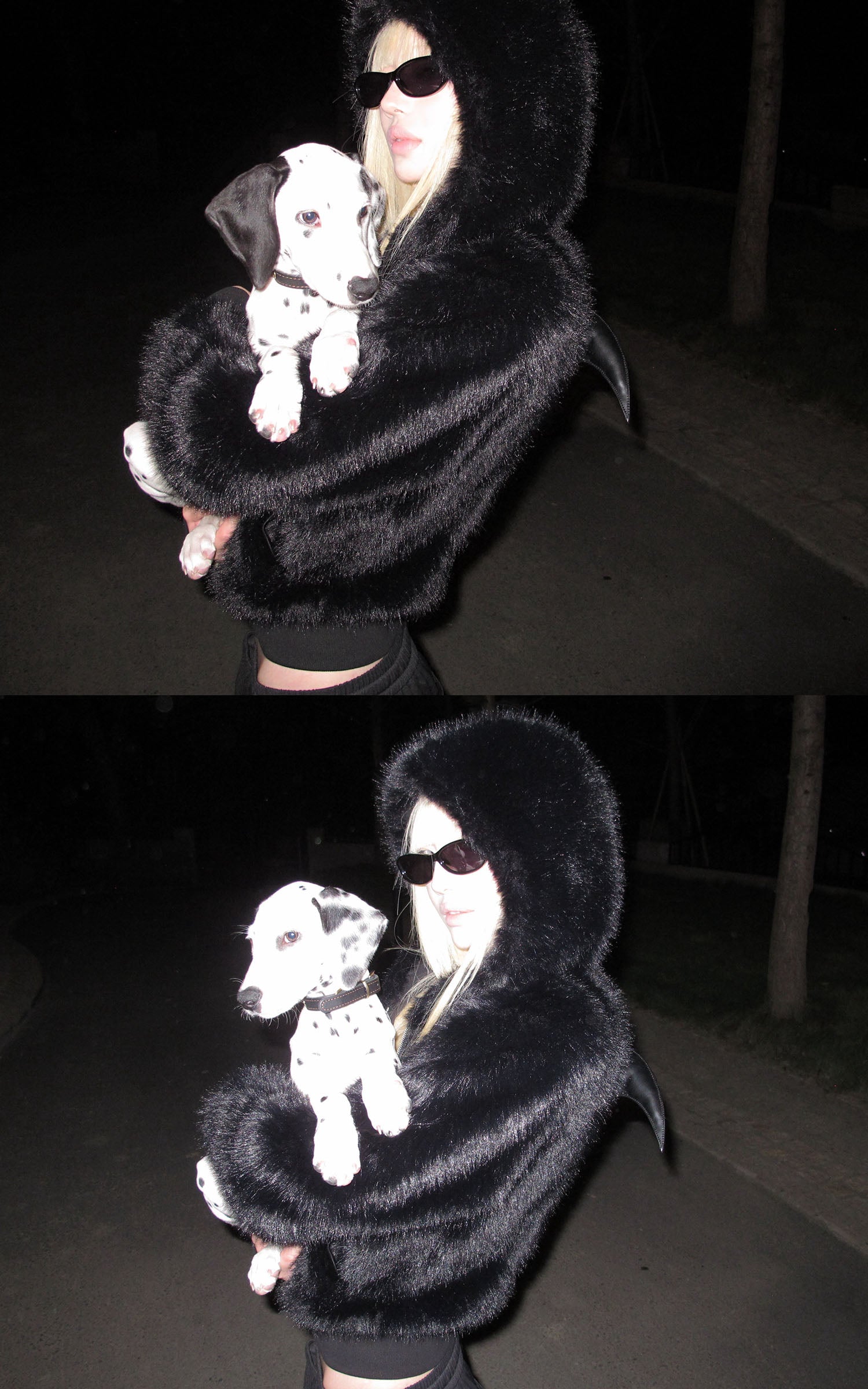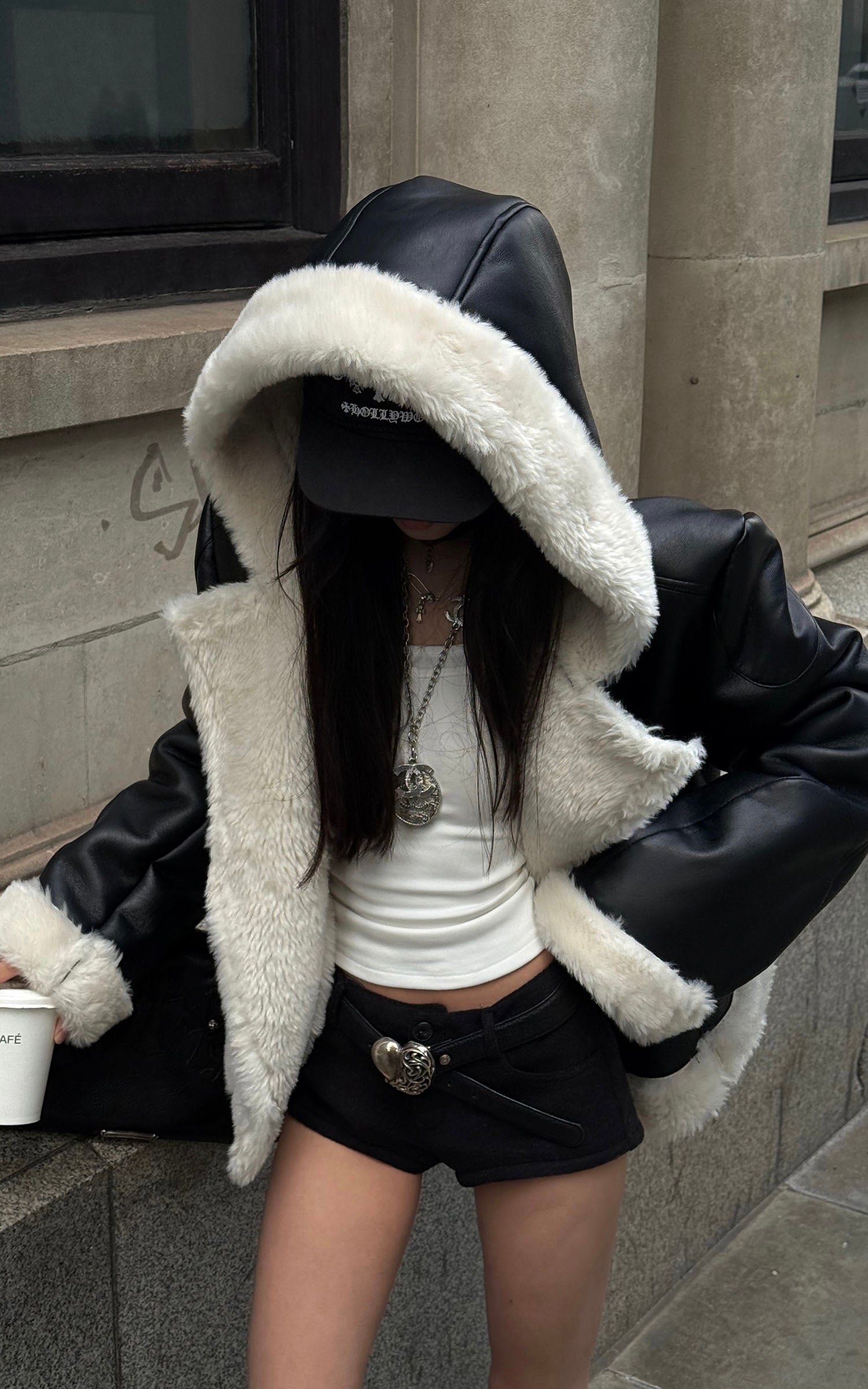 Rase le sol デビルウィング付きフェイクファーフーディ