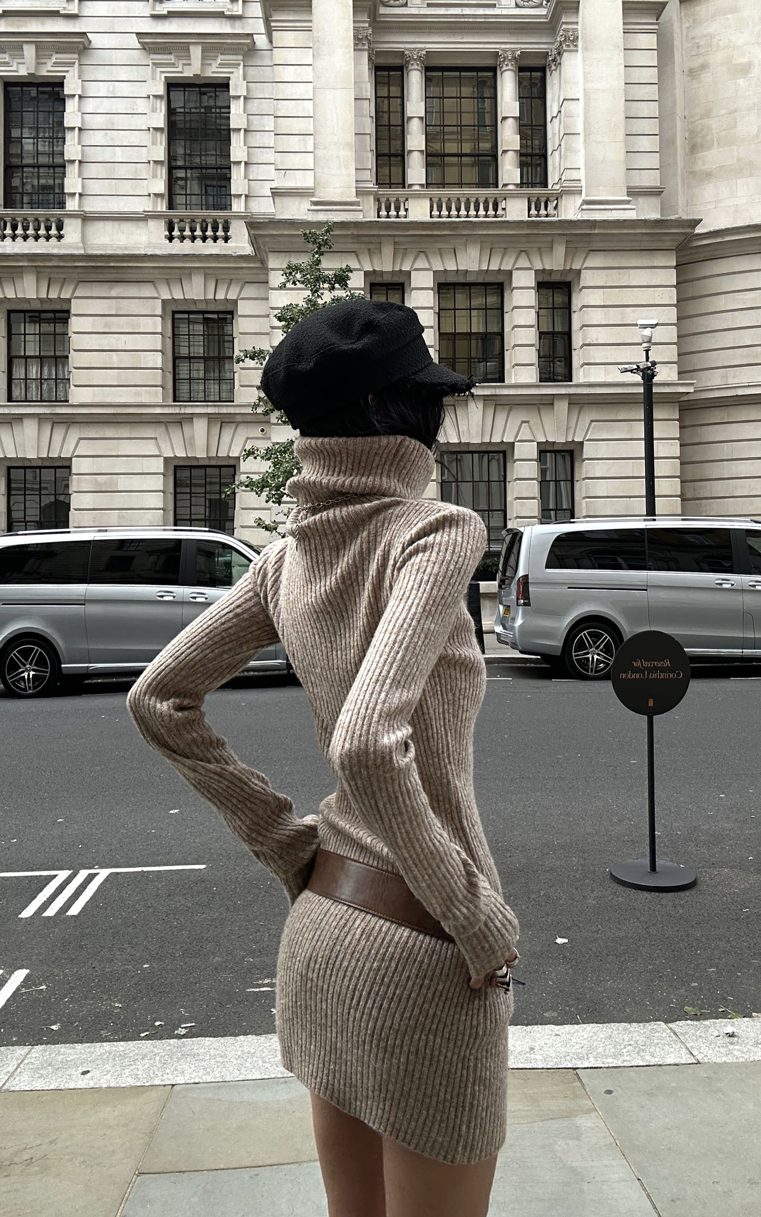 WARDEN EDGE リブ編みウールブレンドタートルネックニットドレス