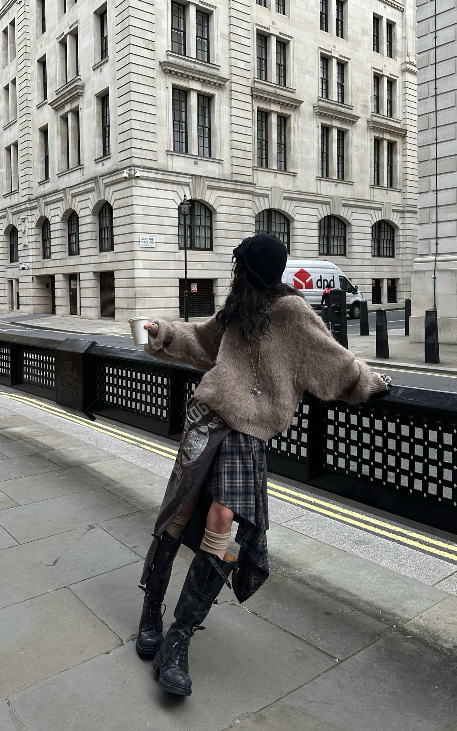 WARDEN EDGE チェック柄コントラストパネル付きレイヤードプリーツミニスカート