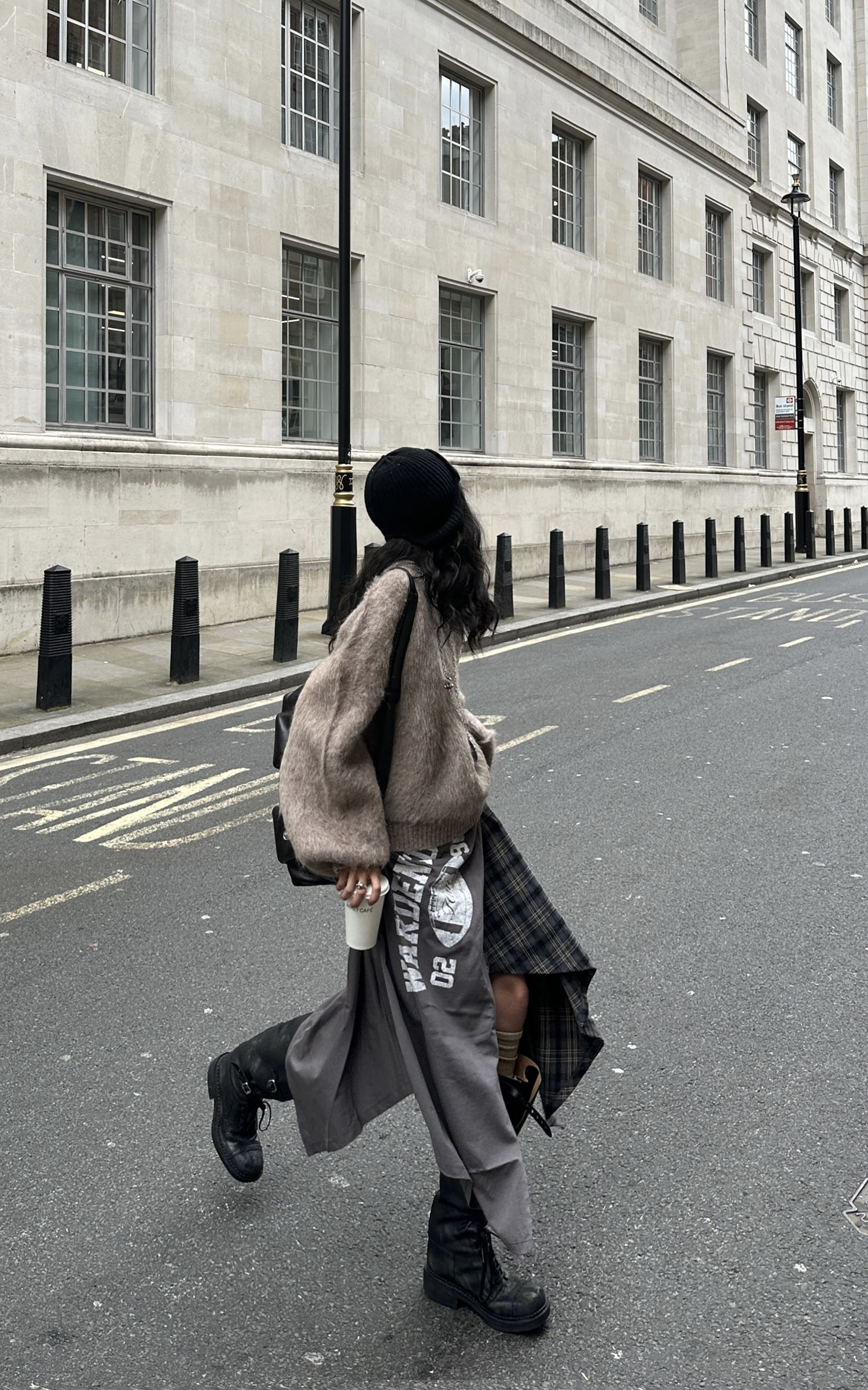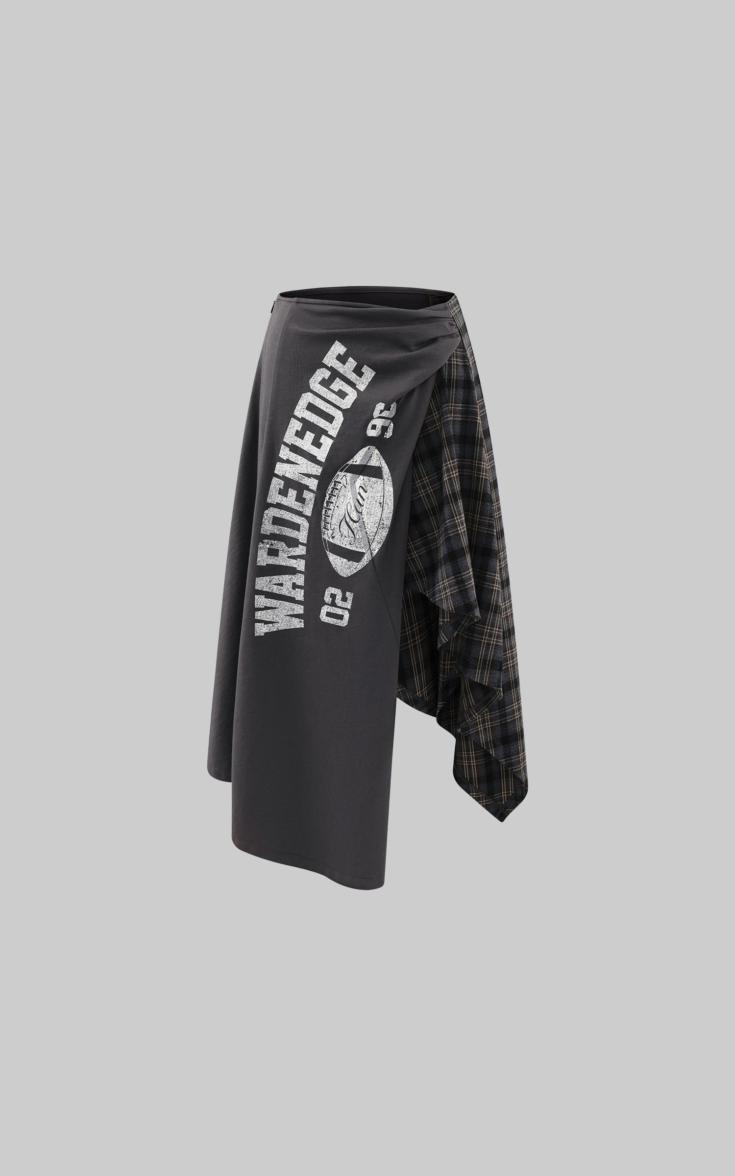 WARDEN EDGE グラフィックプリント付きアシンメトリックチェックパッチワークスカート