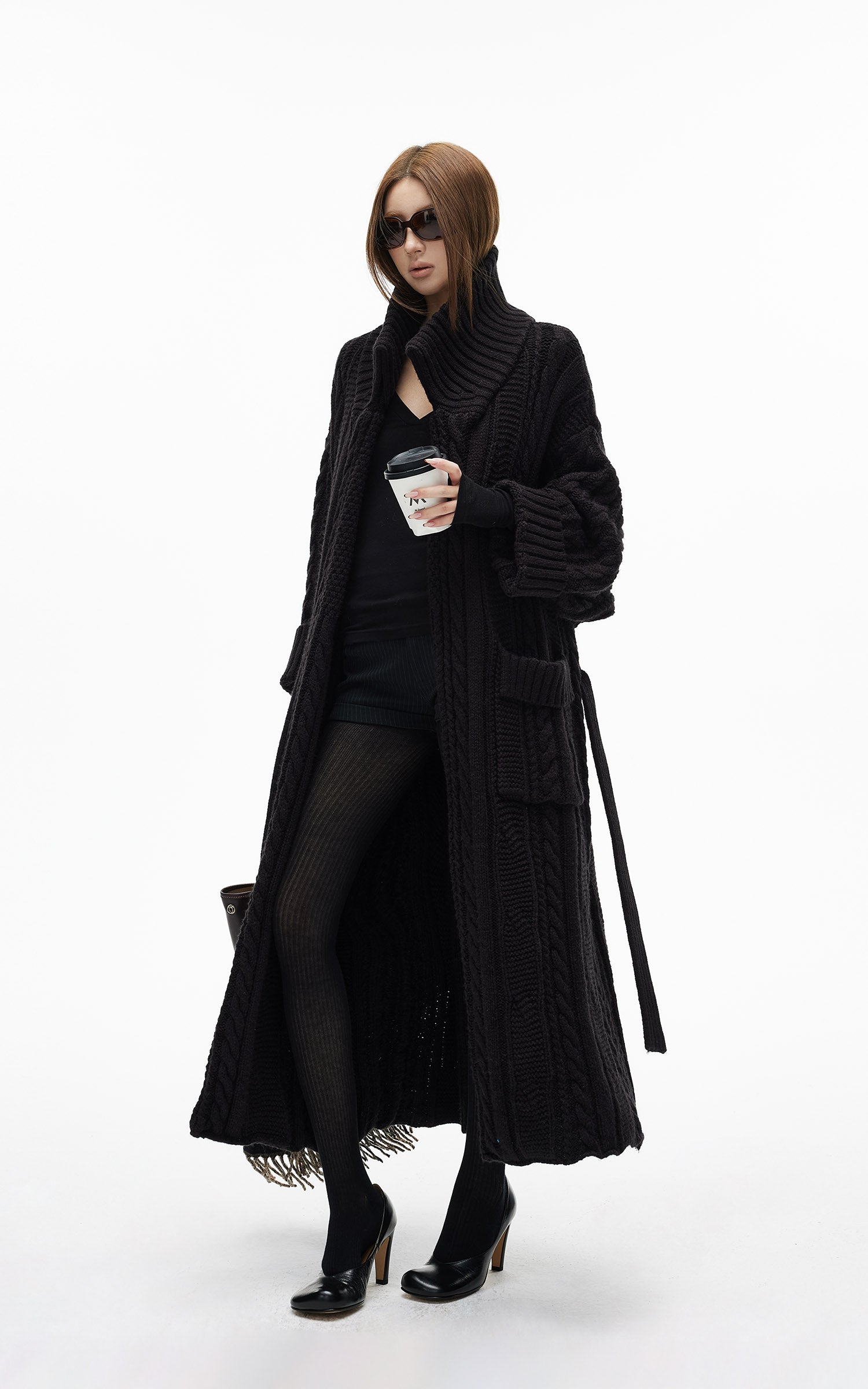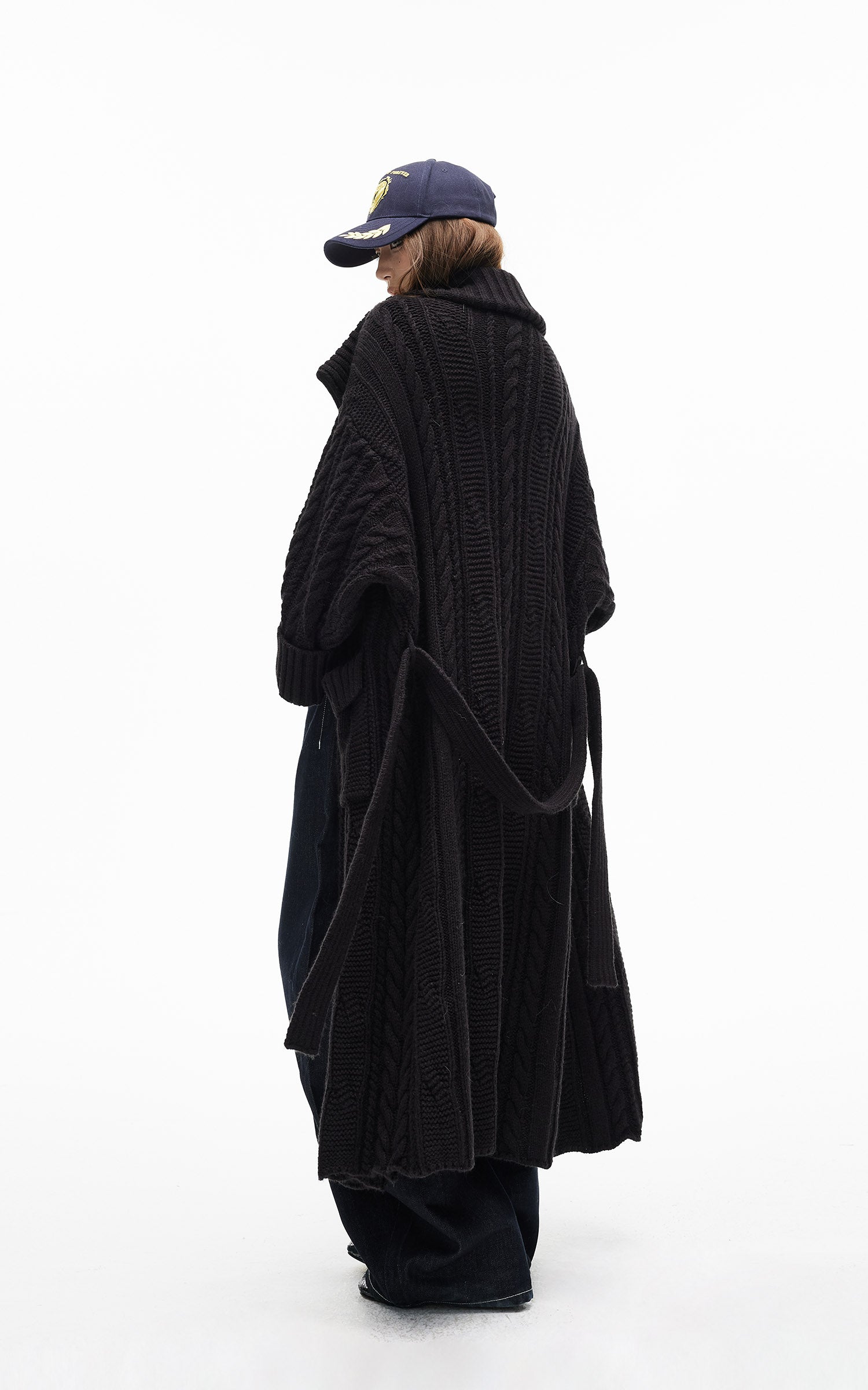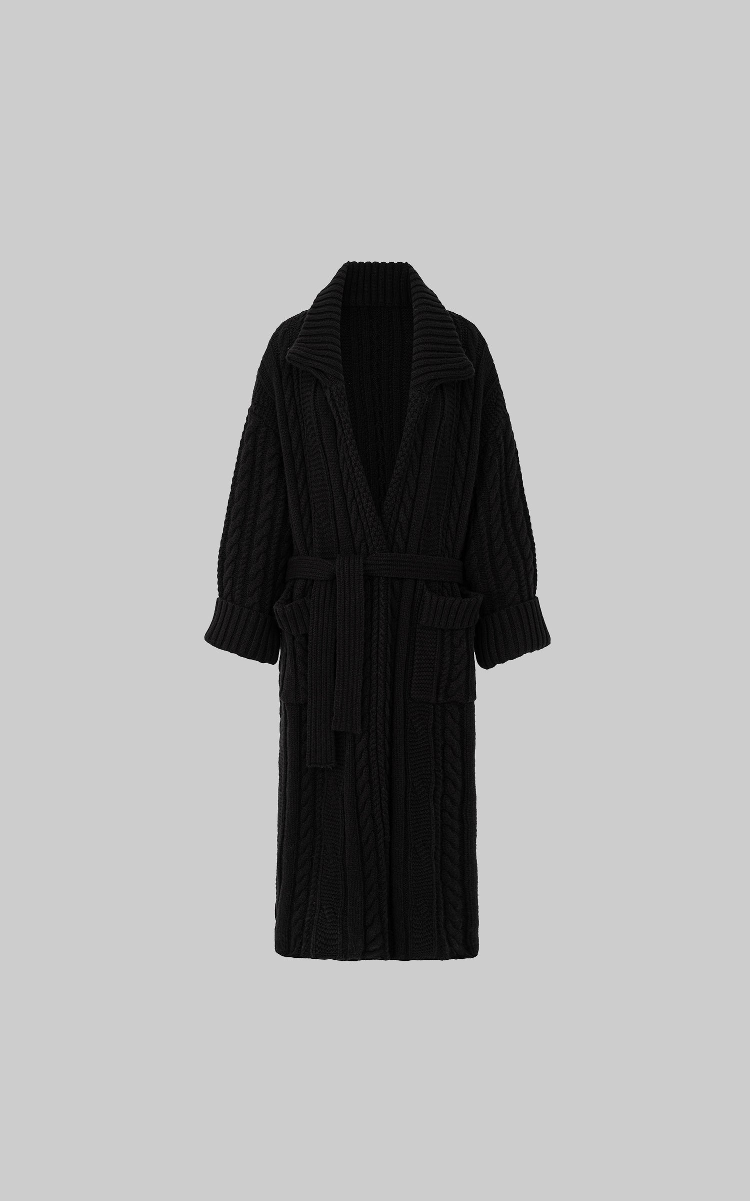 IAMXIAA ベルト付きのチャンキー ニット マキシ カーディガンとオーバーサイズ フィット