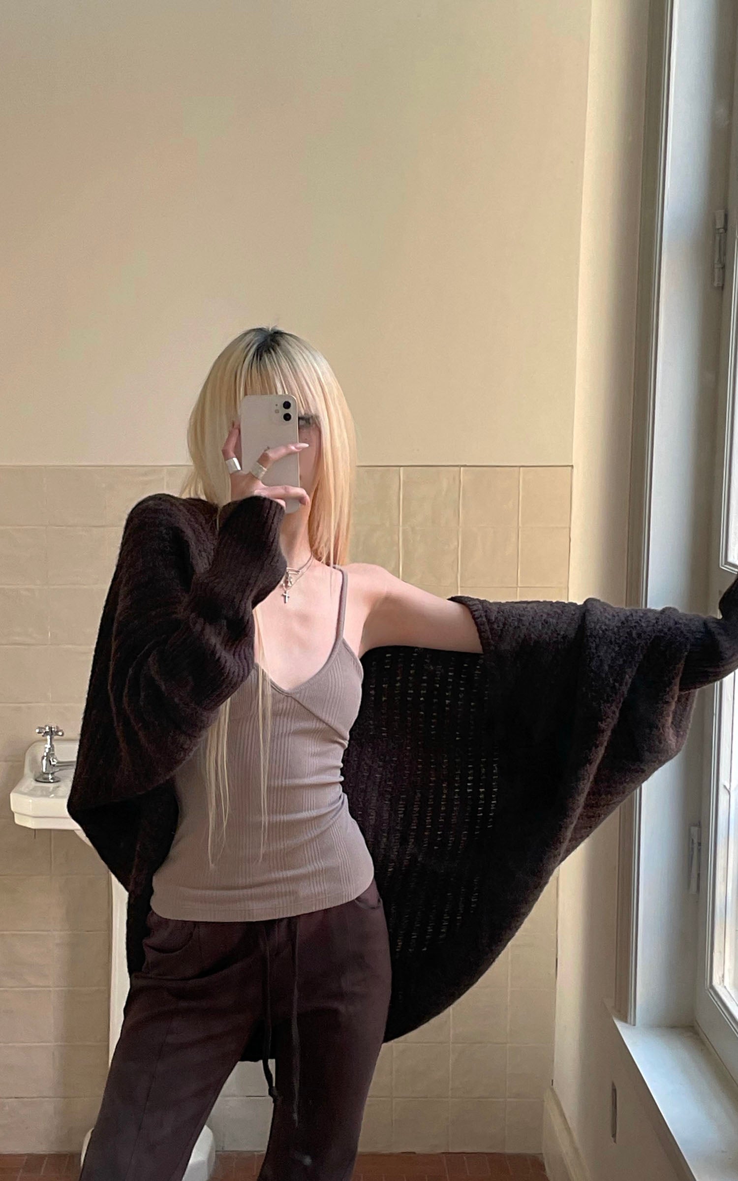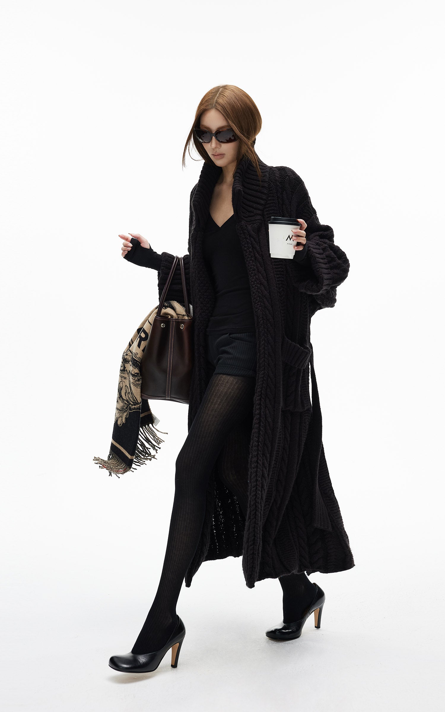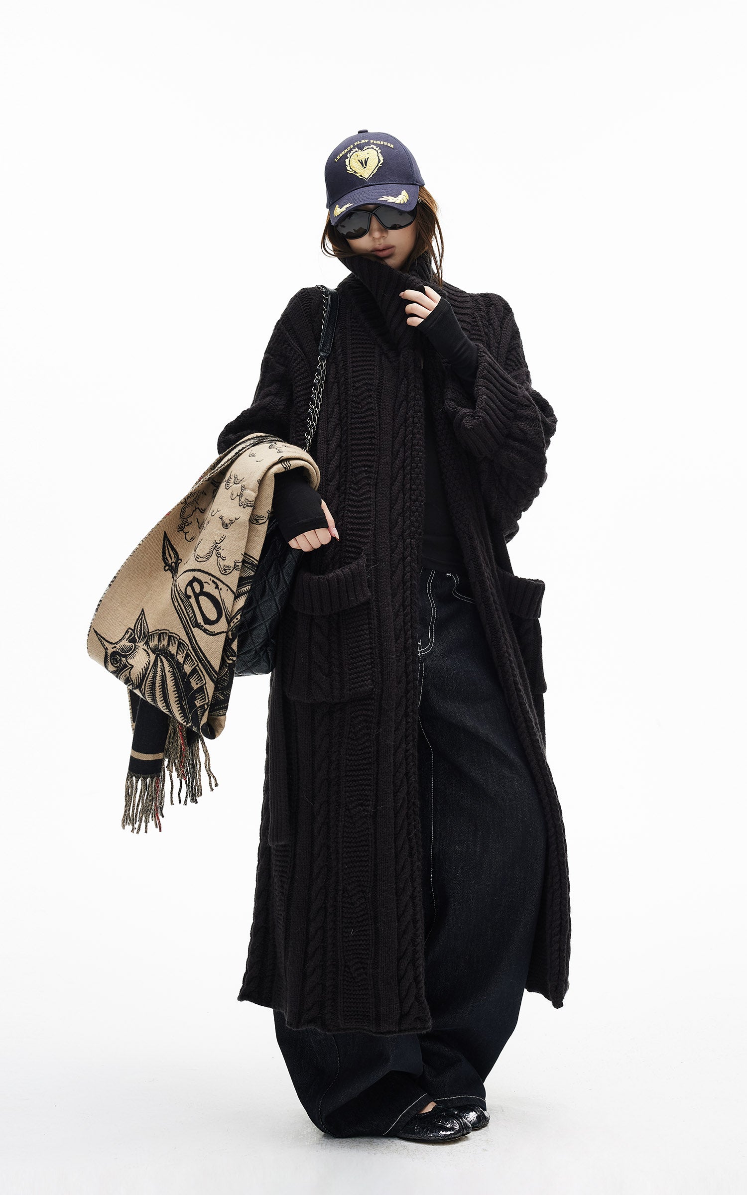 IAMXIAA ベルト付きのチャンキー ニット マキシ カーディガンとオーバーサイズ フィット