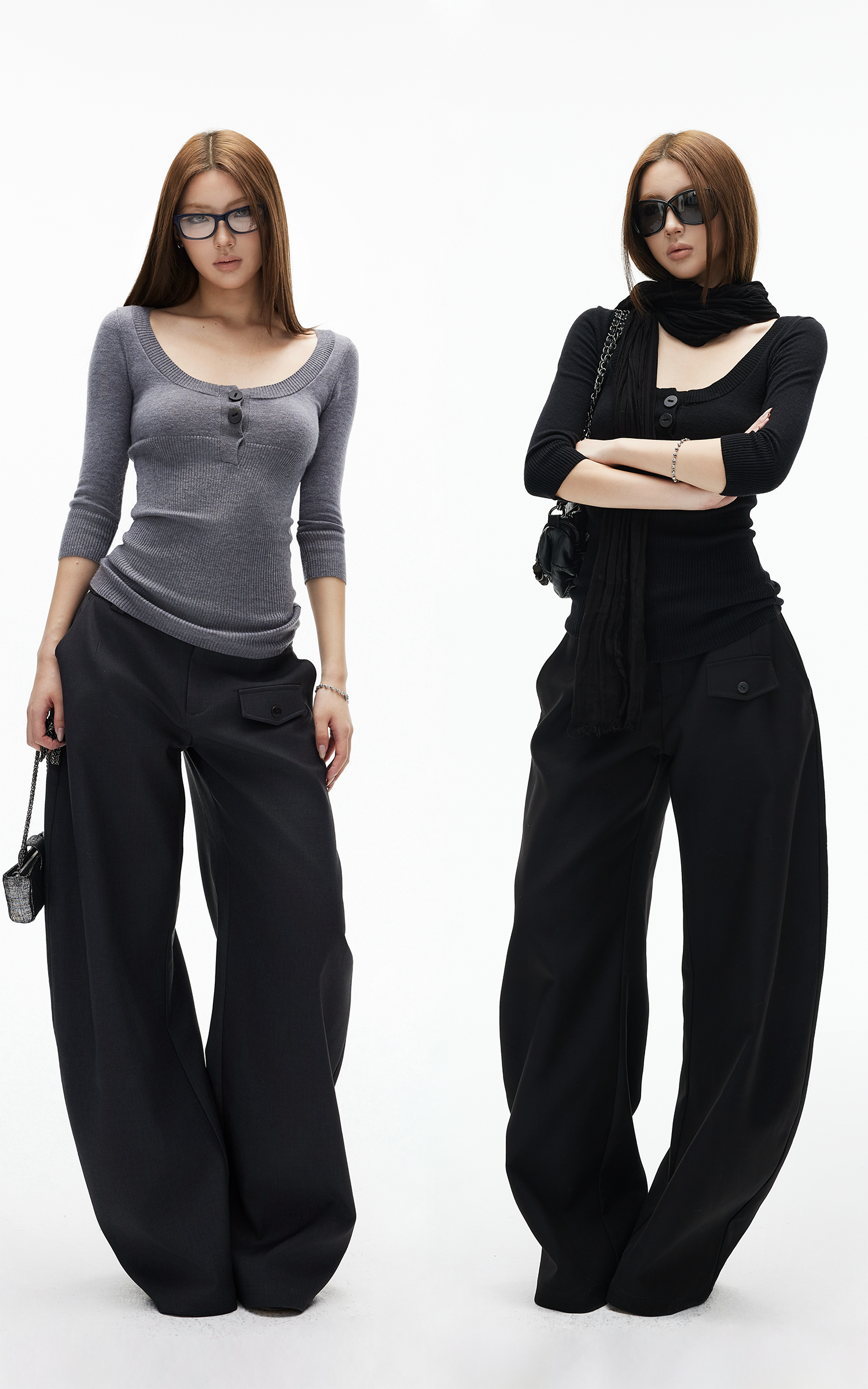 IAMXIAA VネックTシャツ & フレアパンツセット