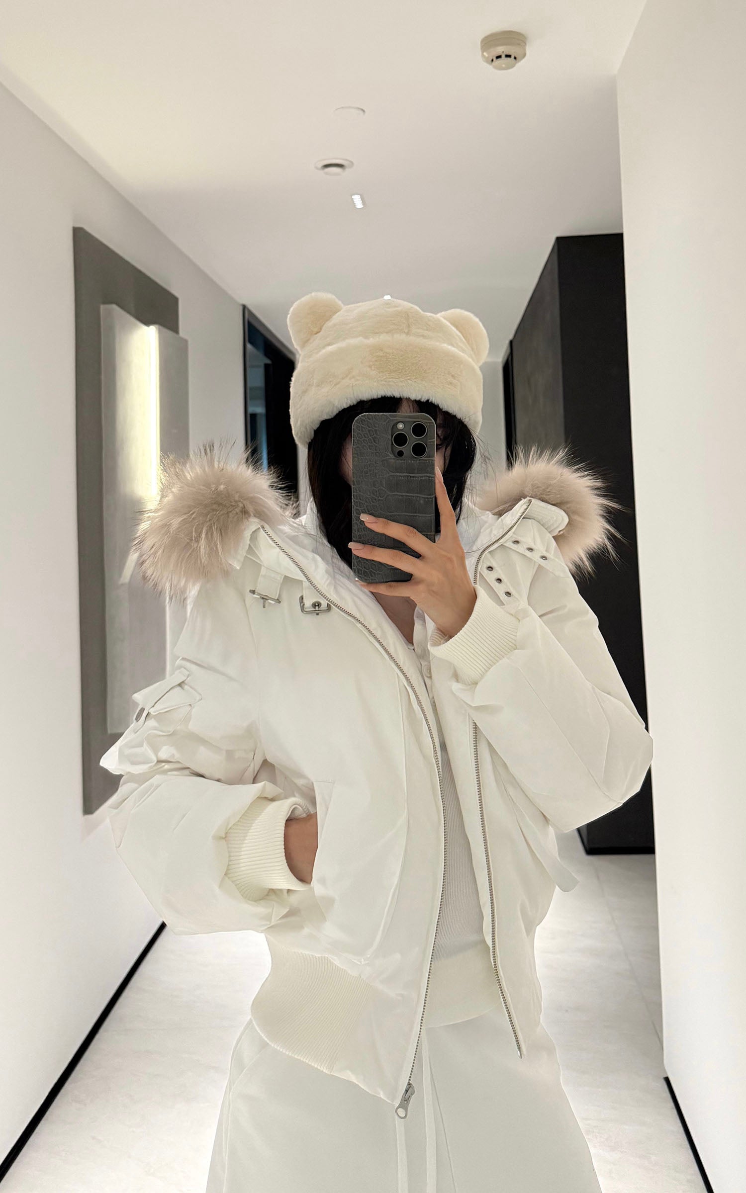 WARDEN EDGE 取り外し可能なフェイクファー付きクロップドパファージャケット