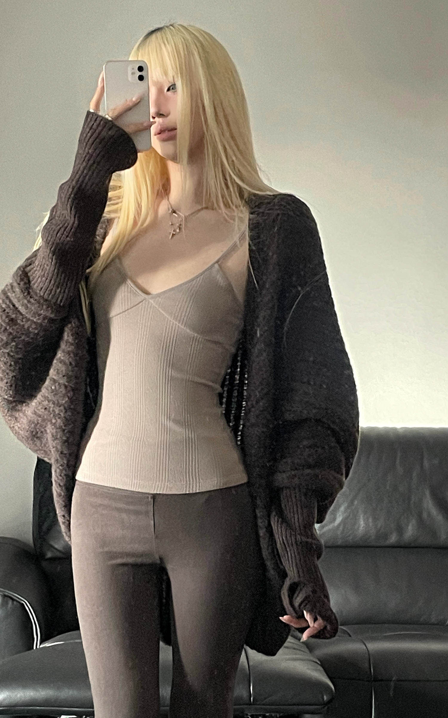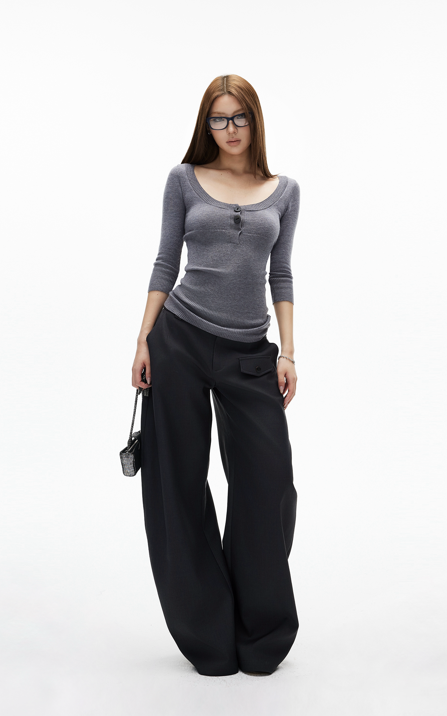 Rase le sol グレー ニット シアー 長袖トップス&ミニマリストブラ レイヤードセット