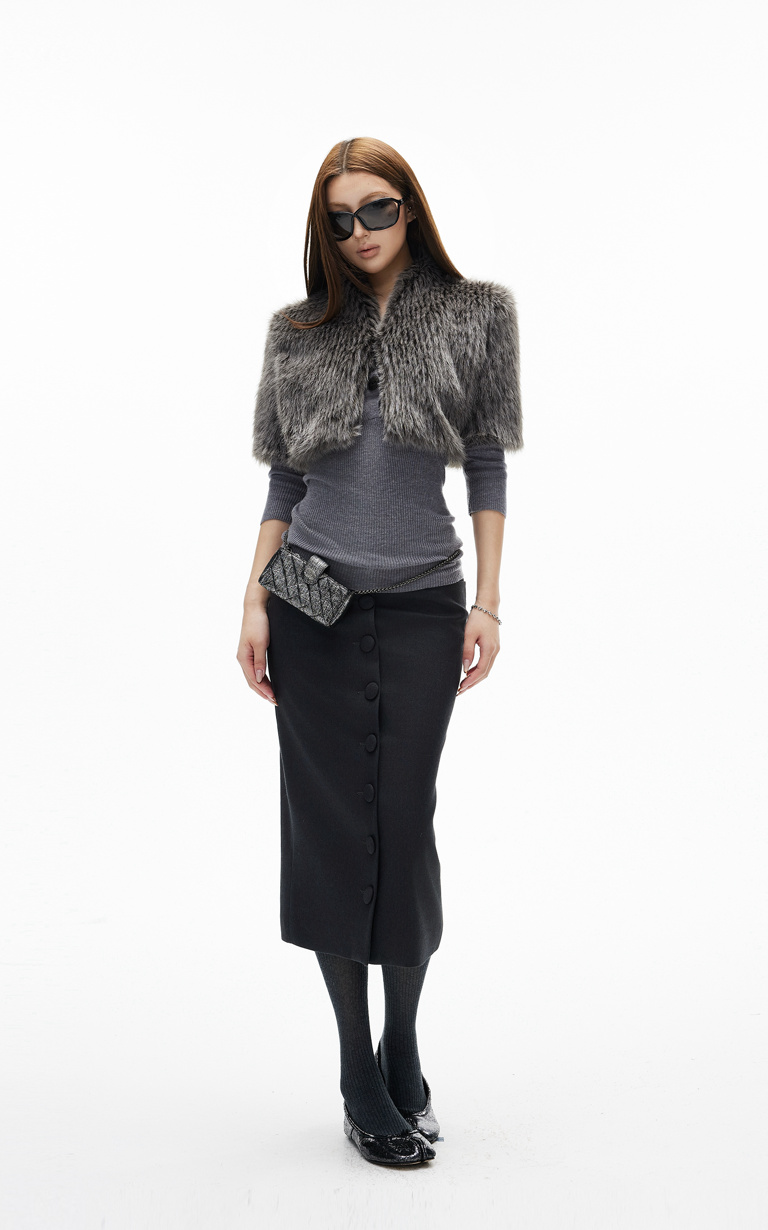 IAMXIAA ボタンフロントミディペンシルスカート、テーラードシルエット付き