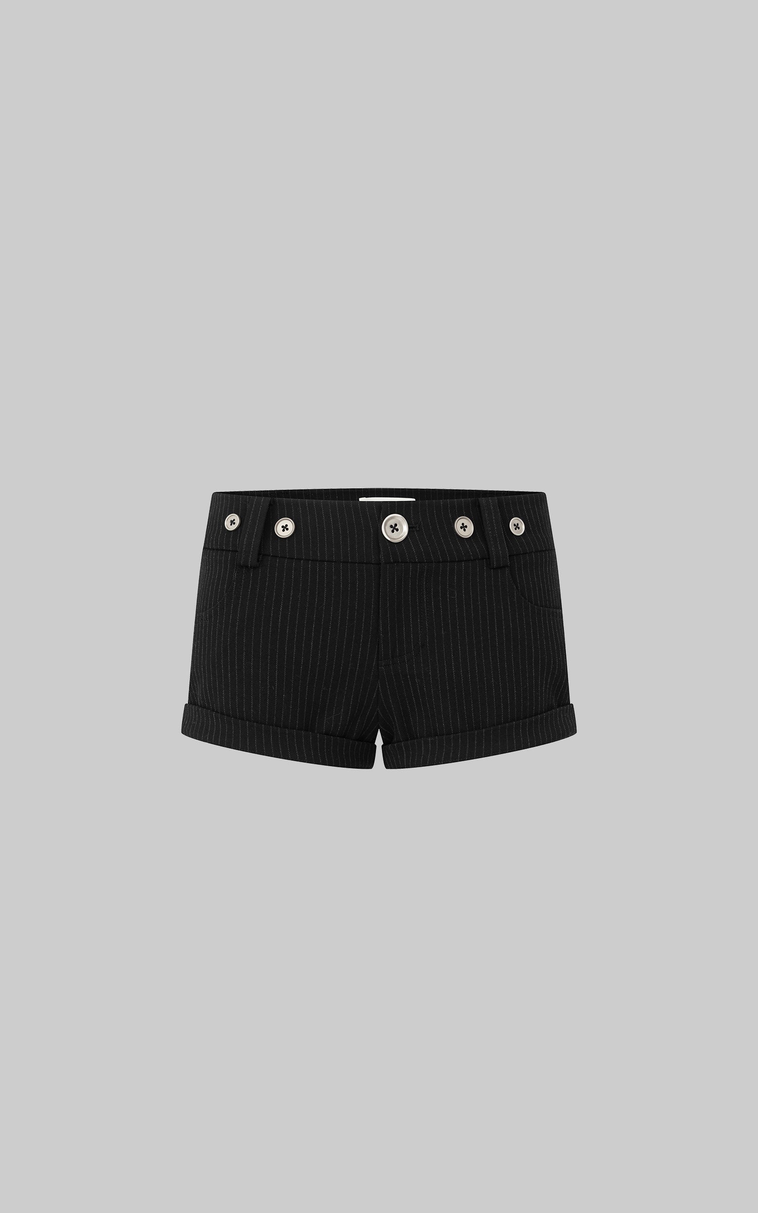 IAMXIAA ピンストライプボタンディテールミニショーツ(ロールヘム付き)