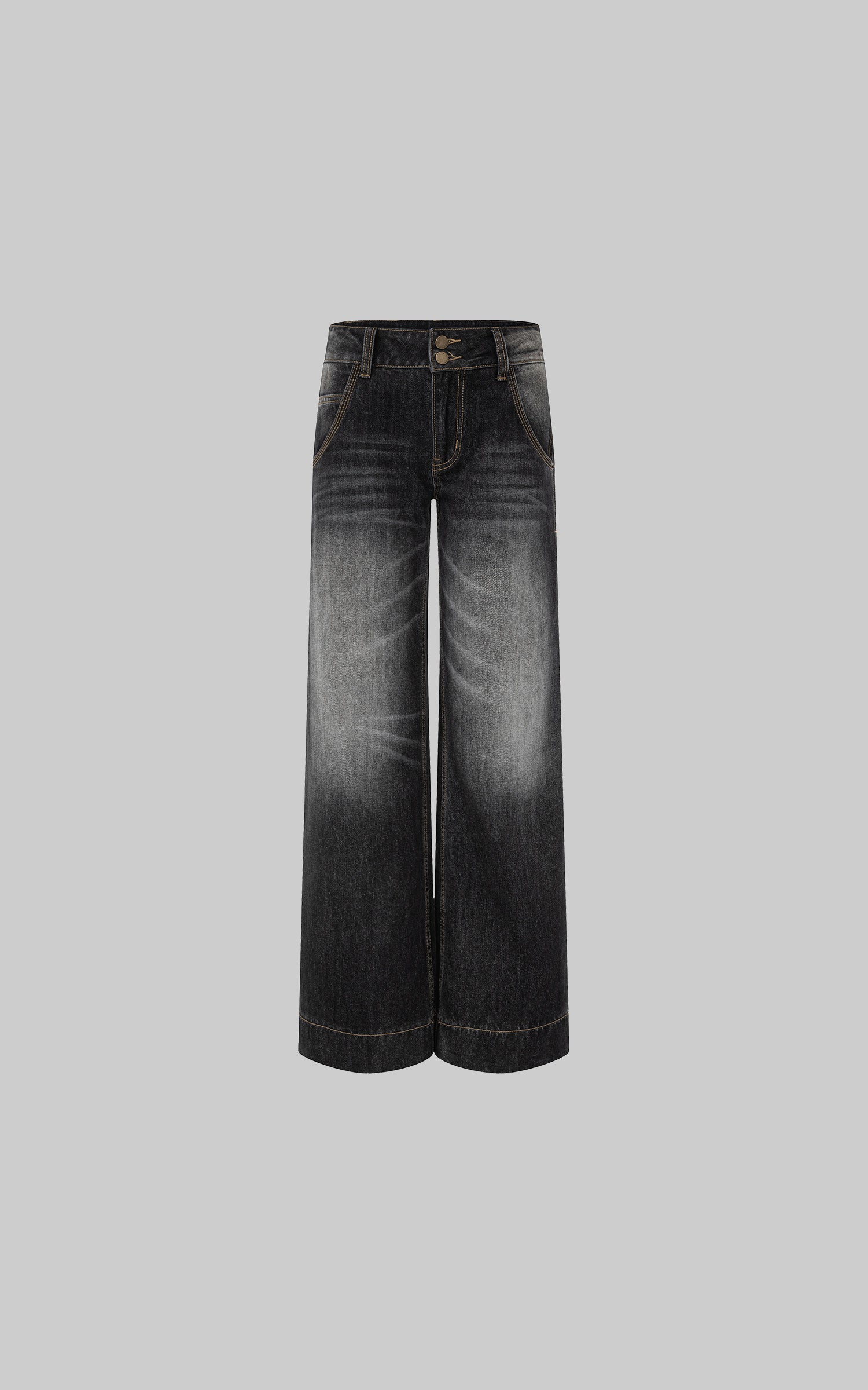IAMXIAA ヴィンテージウォッシュのワイドレッグジーンズ ダブルボタンウエスト付き