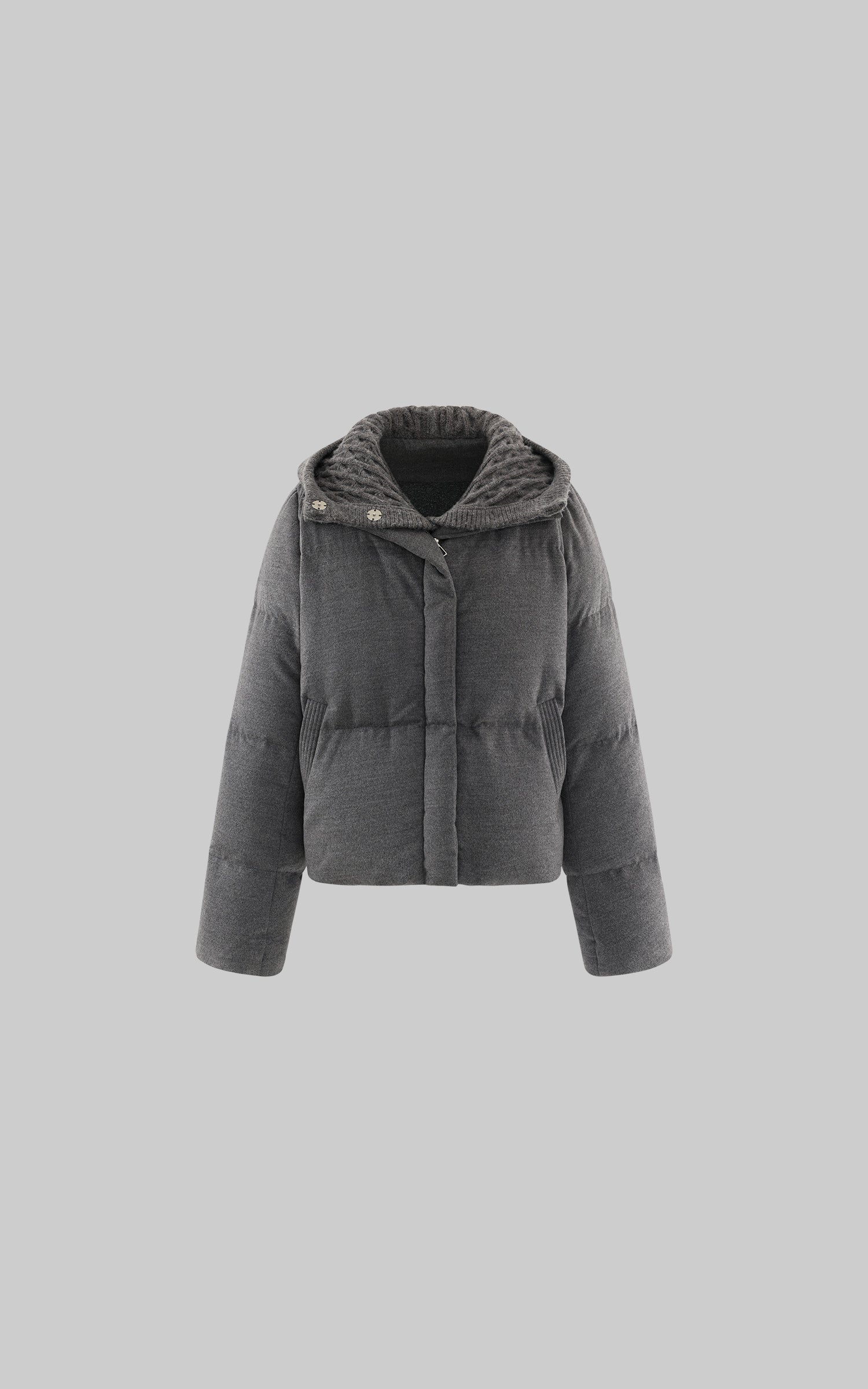 WARDEN EDGE ニットフードパネル付きウール風ダウンジャケット