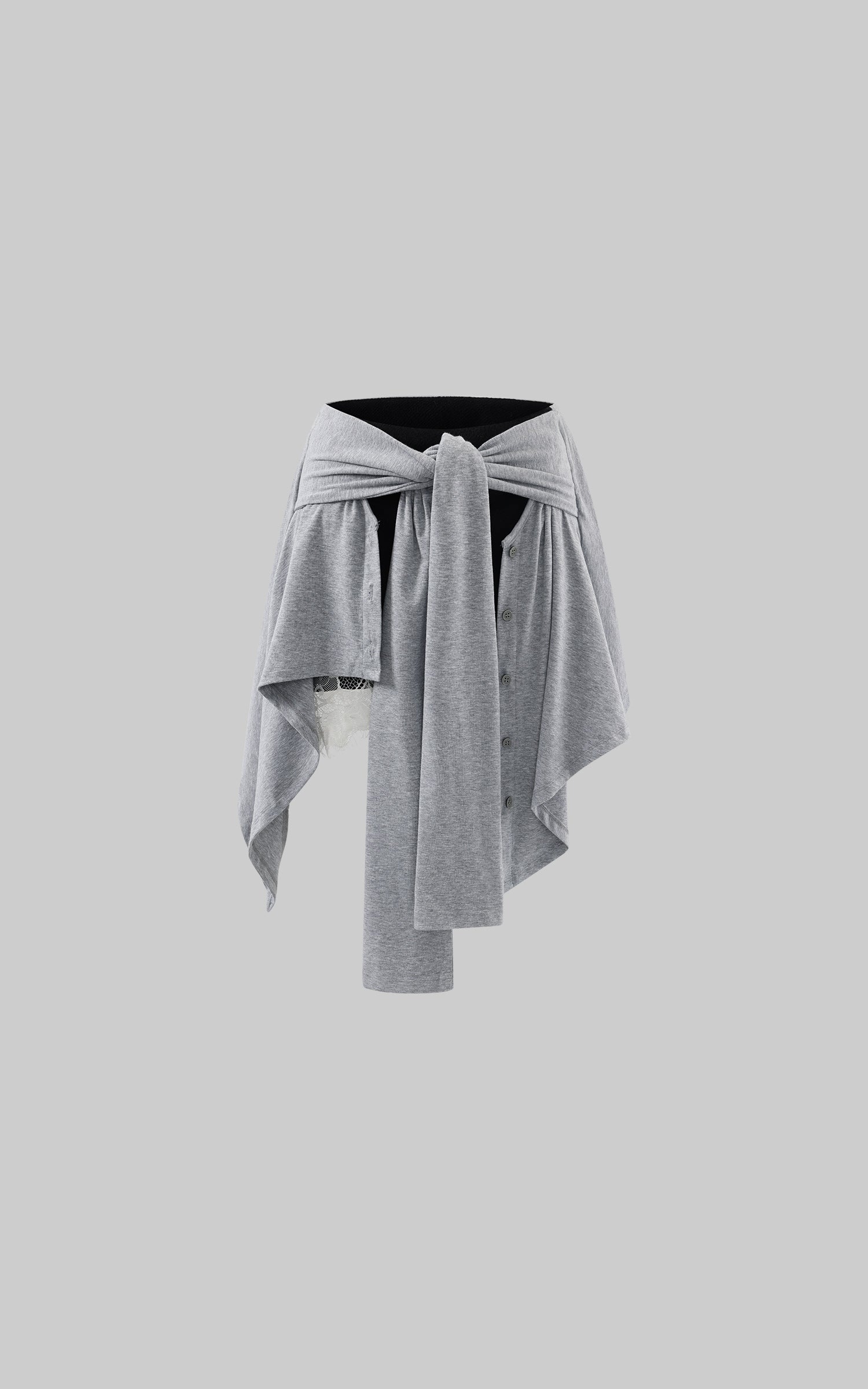 WARDEN EDGE レースパネルとタイディテール付きグレーアシンメトリースカート