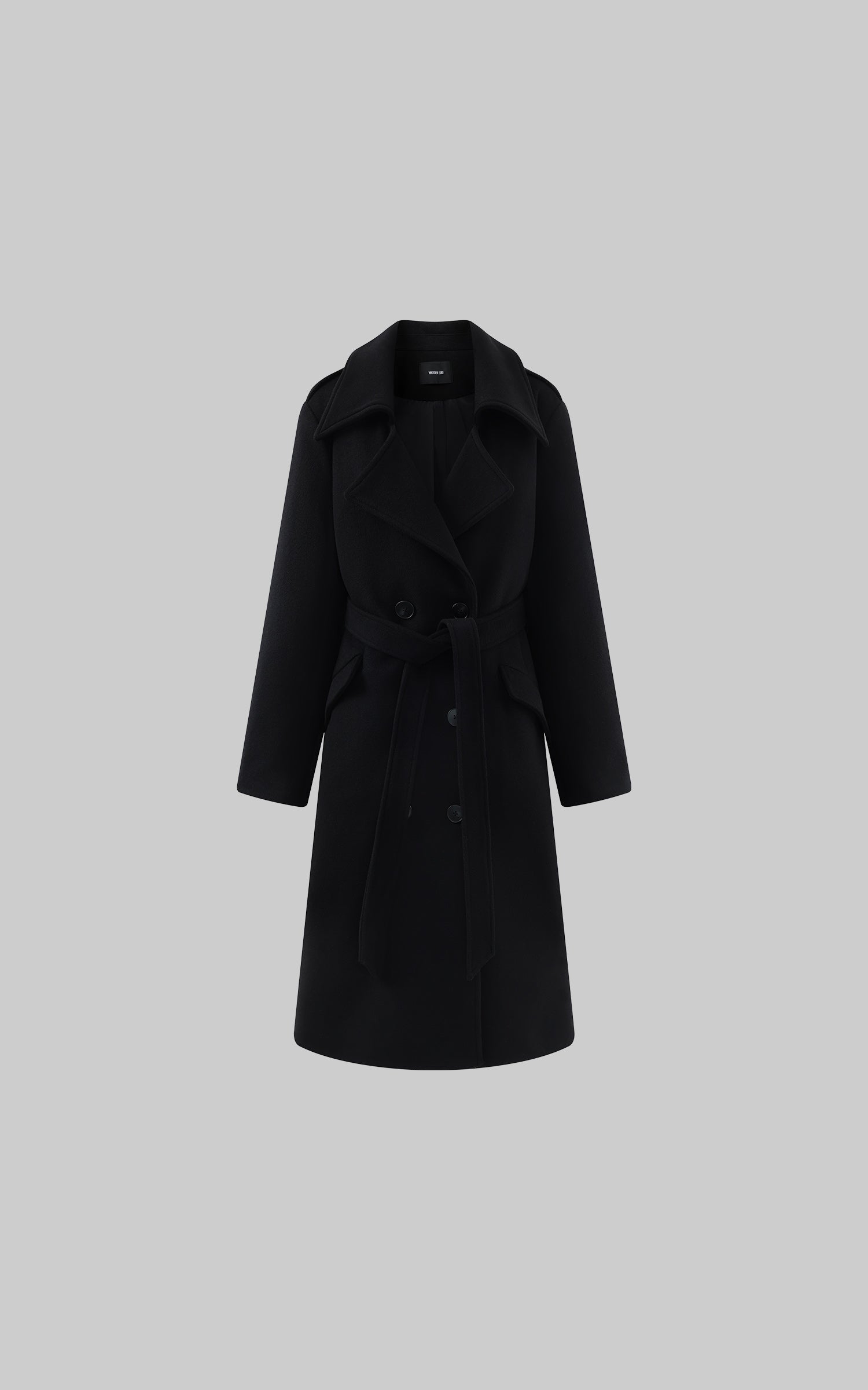 WARDEN EDGE 벨트가 있는 더블 브레스트 울 코트