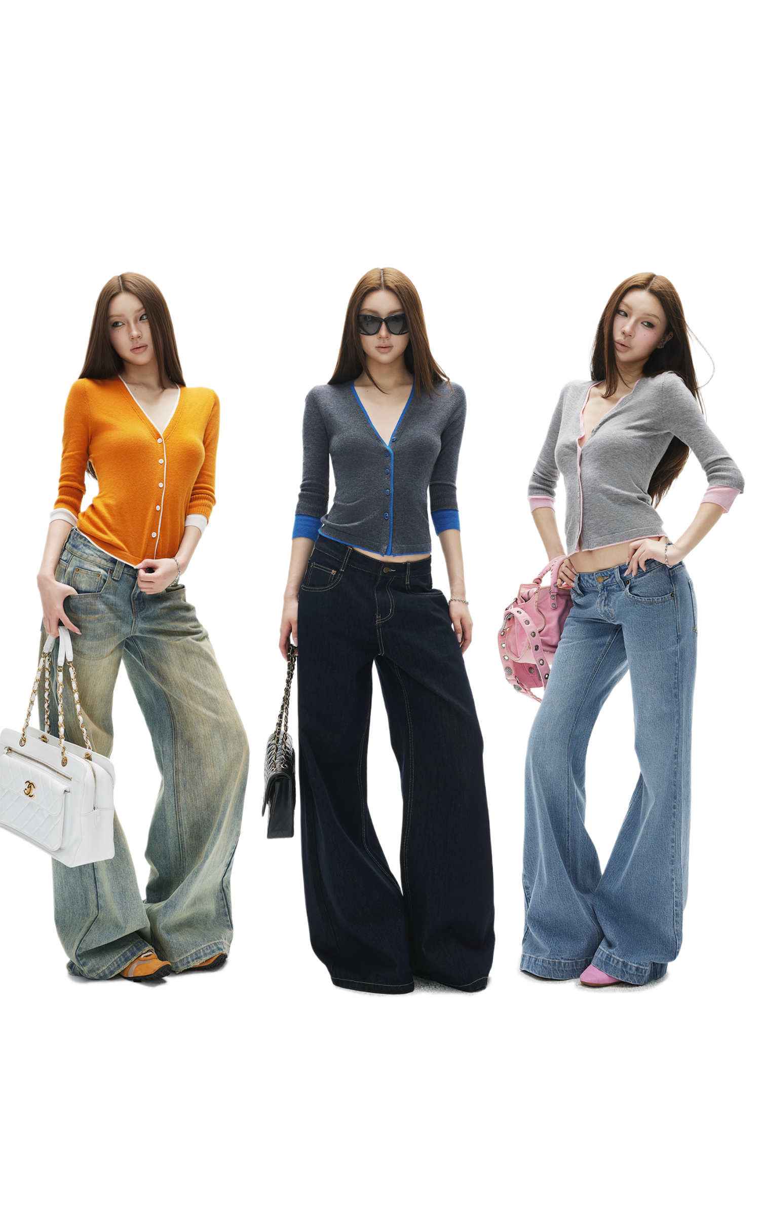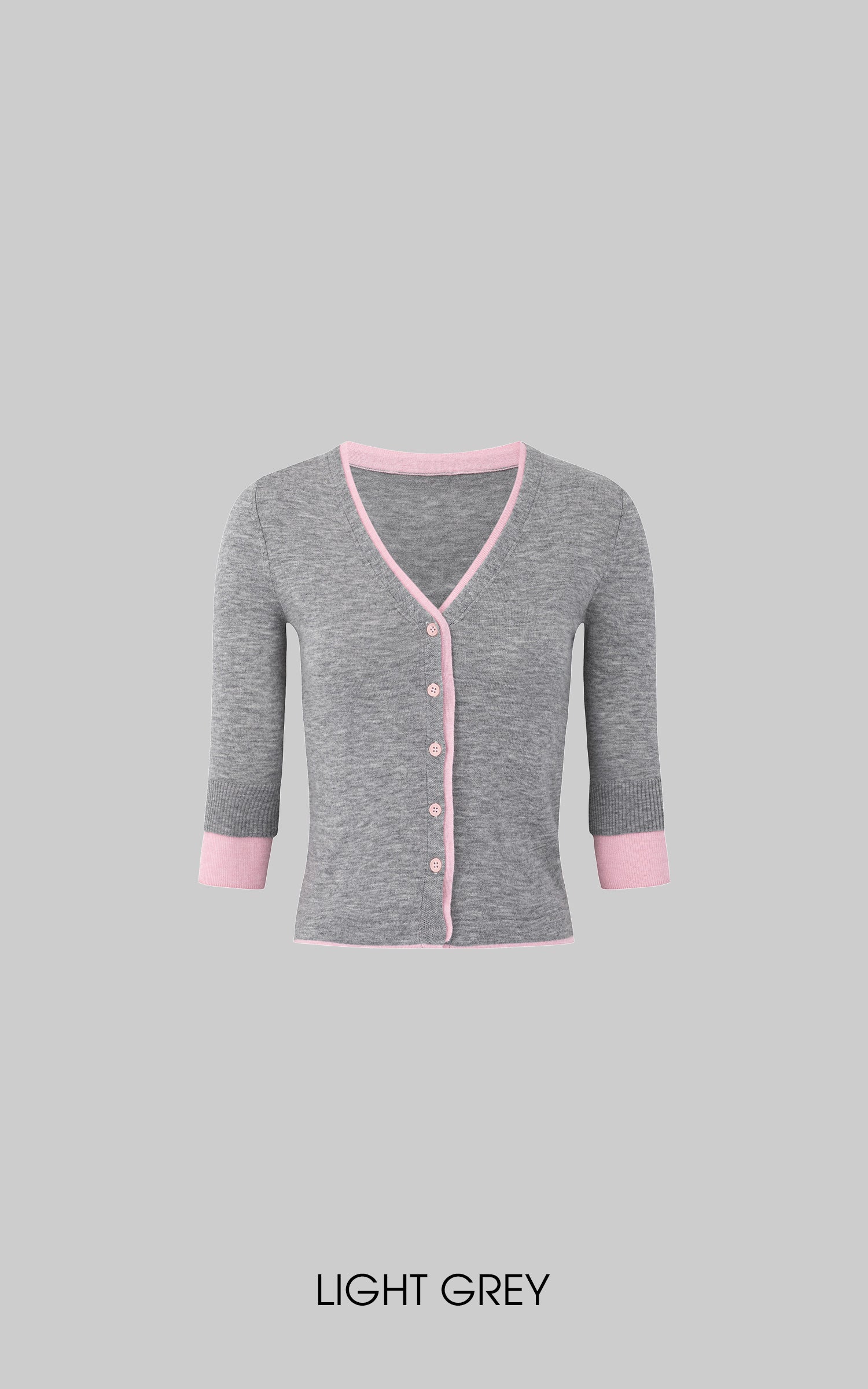IAMXIAA 배색 트림 V넥 슬림 니트 가디건