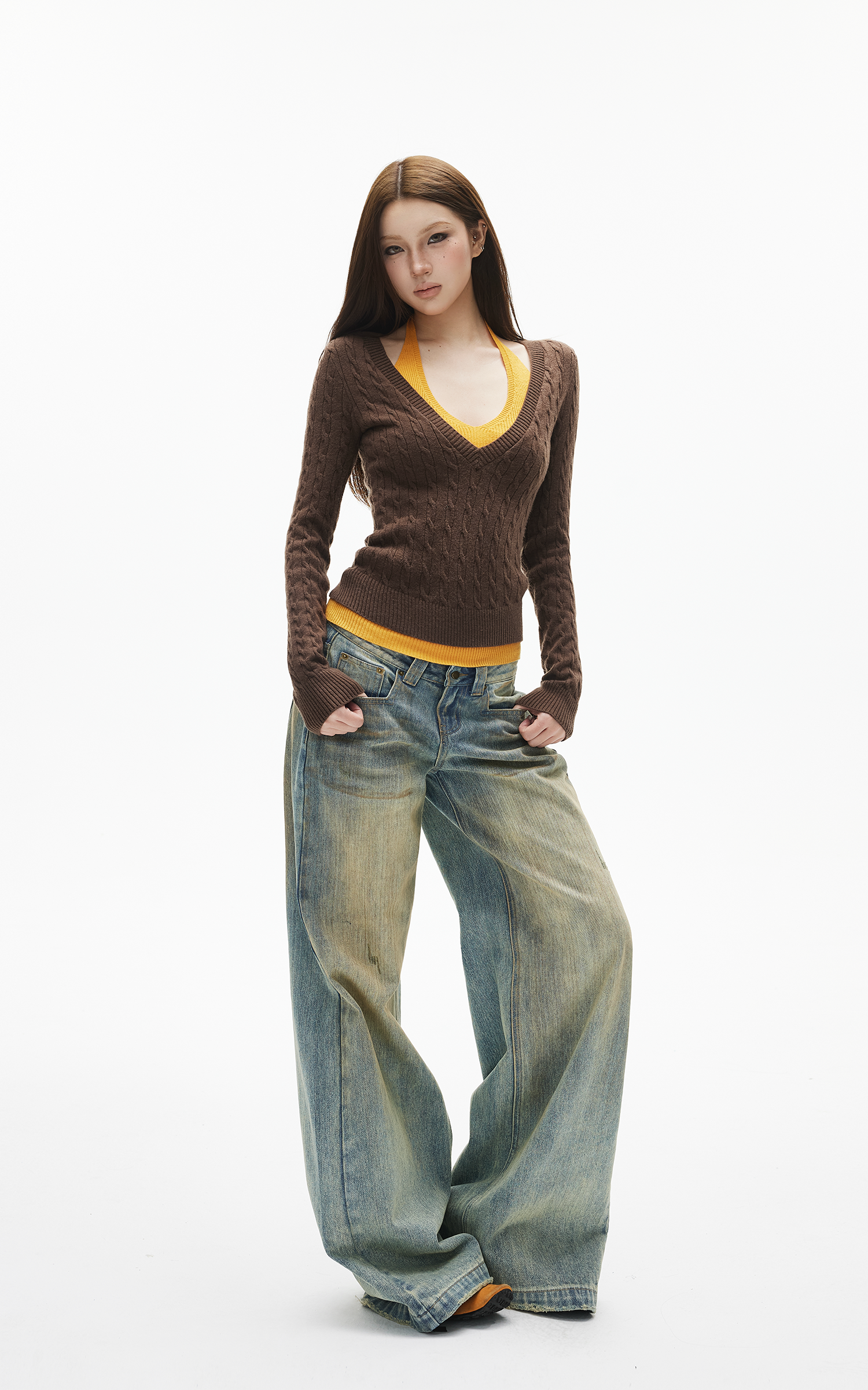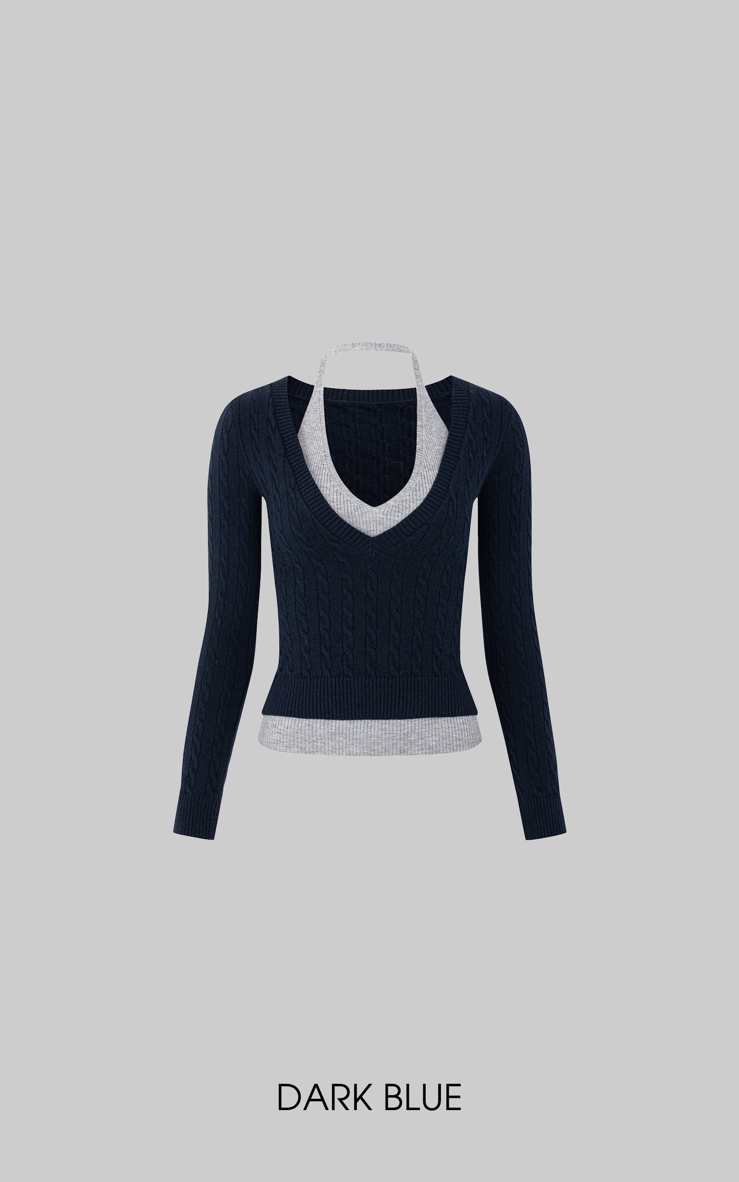 IAMXIAA 레이어드 홀터 브이넥 슬림 니트 스웨터