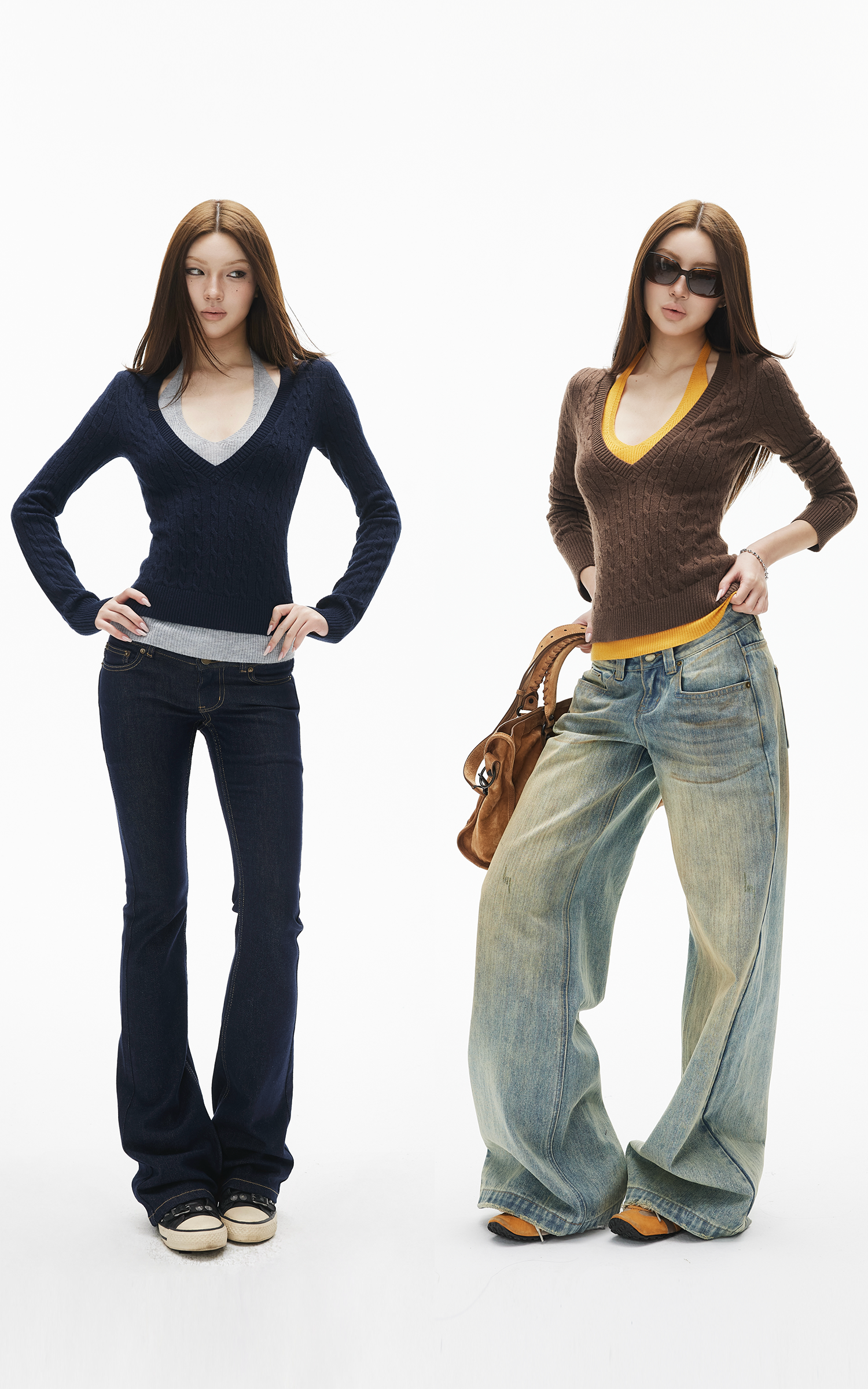 IAMXIAA 릴랙스드 V넥 니트 스웨터