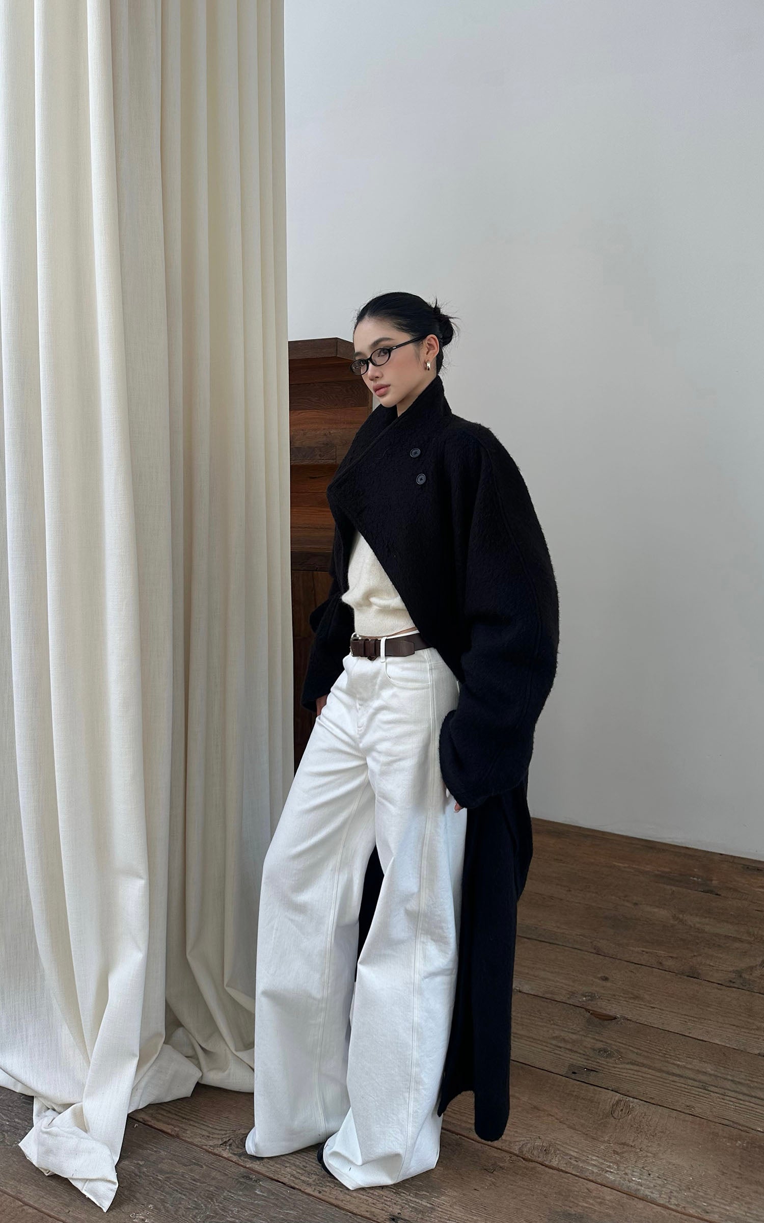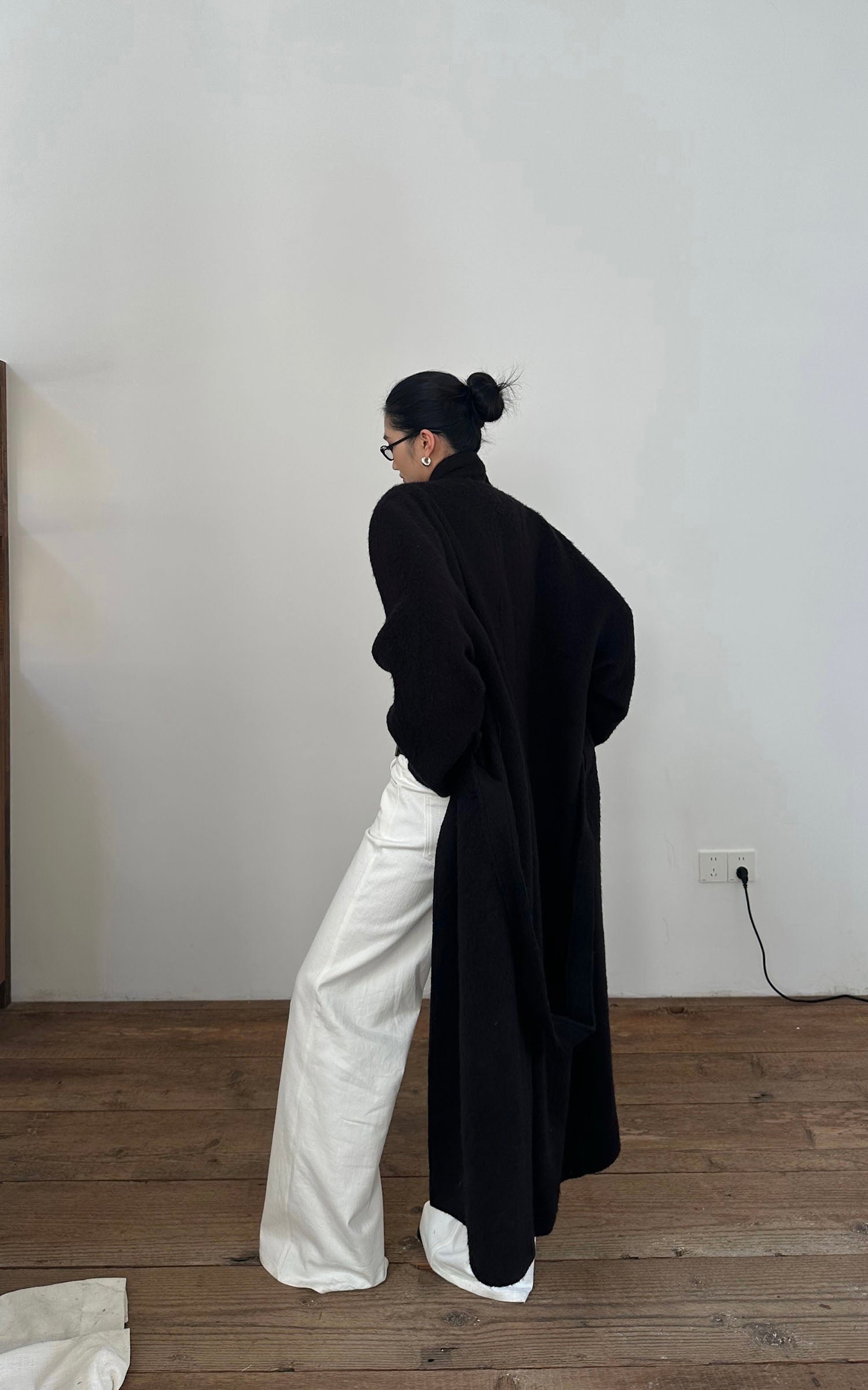 ROVENTE 오버사이즈 숄 벨티드 울 코트 세트