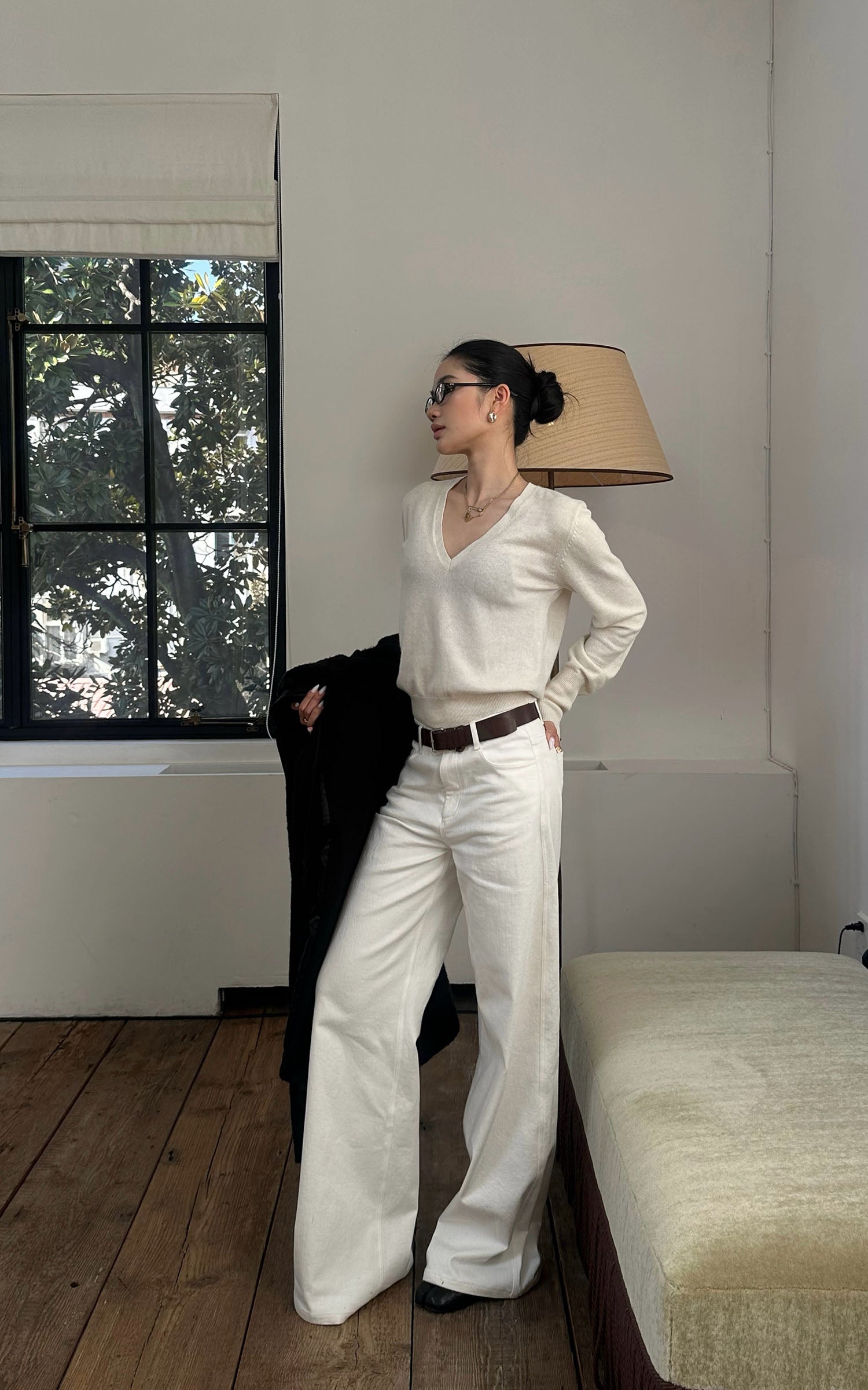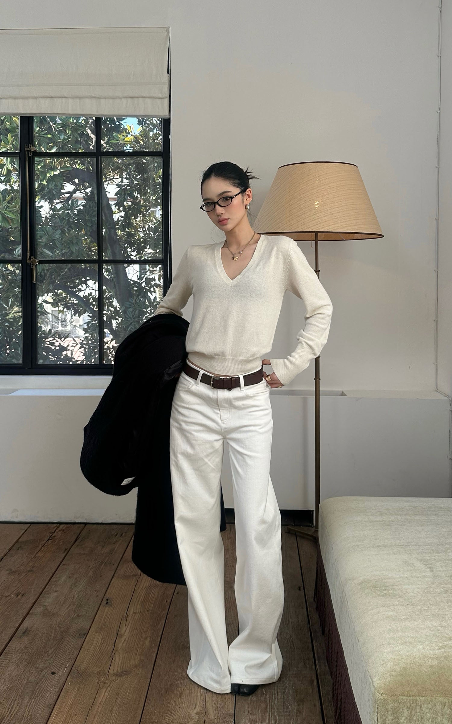 ROVENTE 브이넥 미니멀 소프트 니트 스웨터