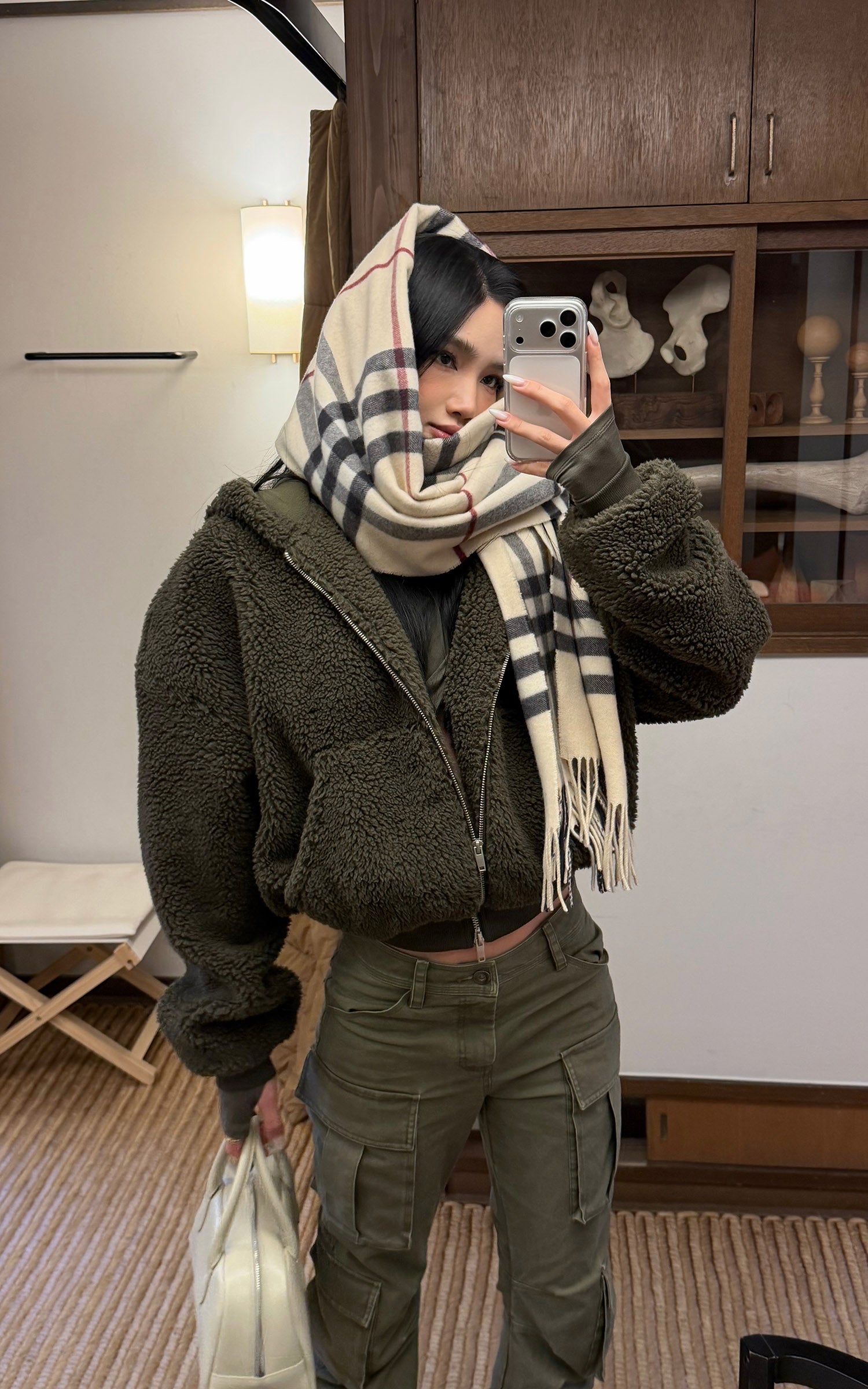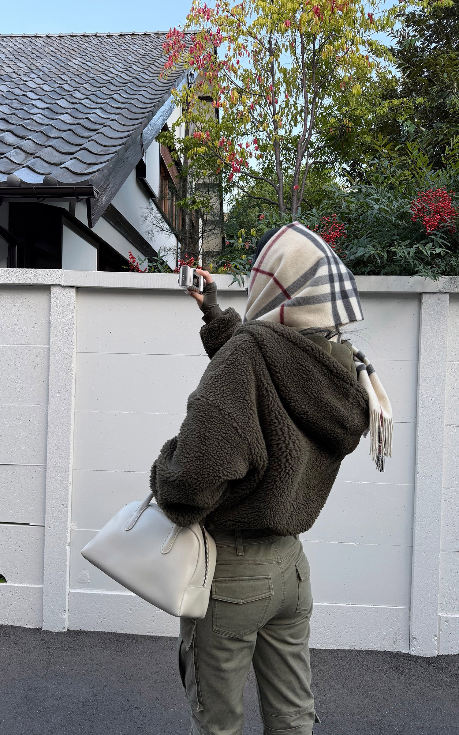 ROVENTE 스카프 디테일이 돋보이는 페이크 퍼 자켓