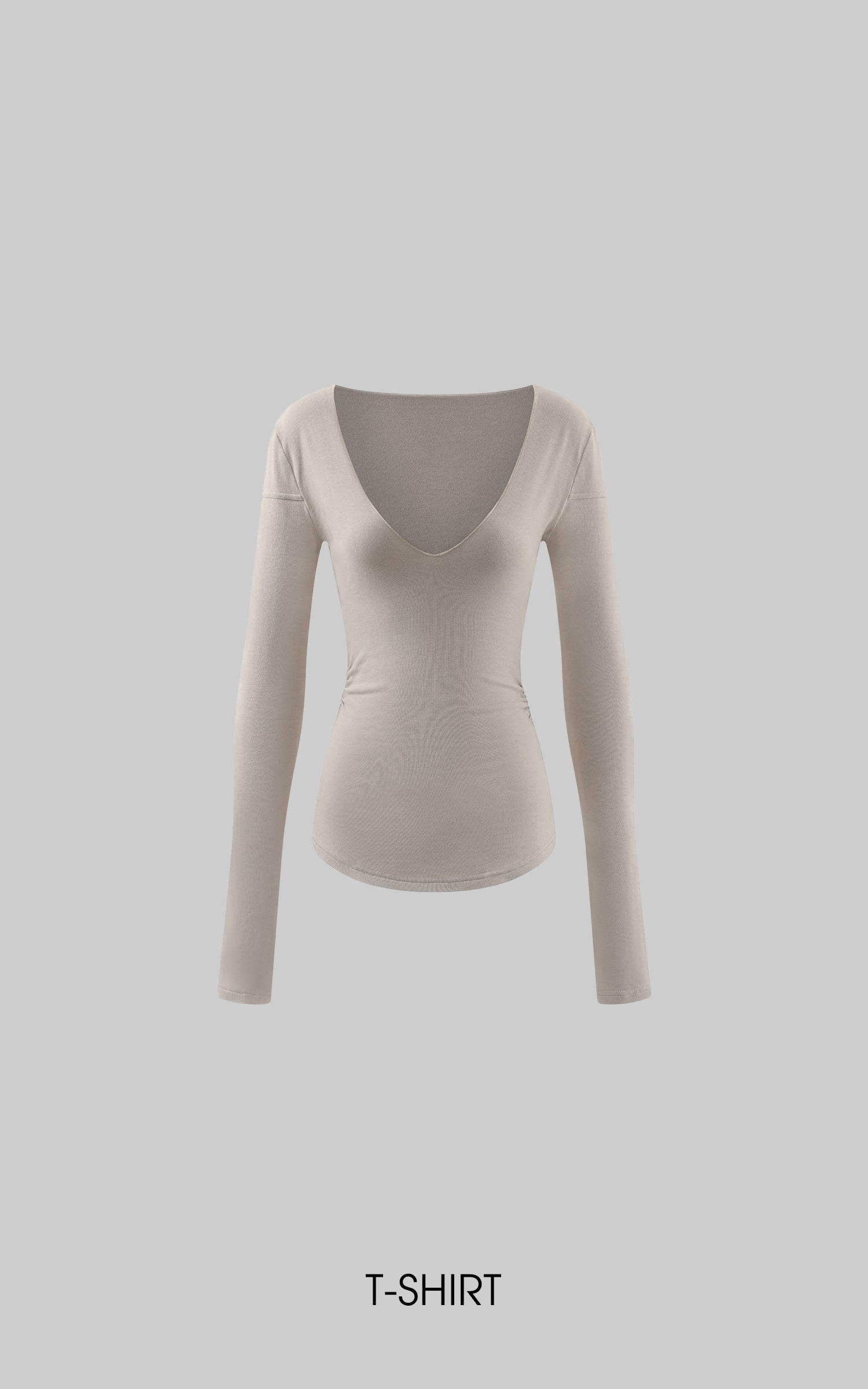 Rase le sol 드레이프 넥 슬림핏 롱슬리브 티셔츠